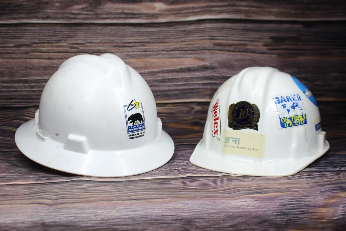 Vintage Pair of Adjustable Construction Hard Hats Poly Cap II Fiberglass Hat & MSA California Conservation Hat