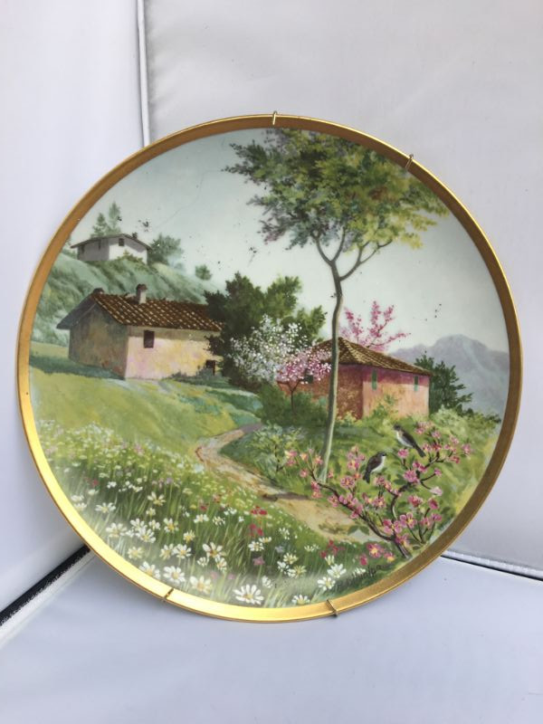 Vintage Pair of Bavarian Hand Painted Plates Wall Plaques