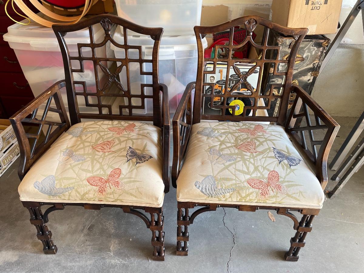 #400 Vintage Pair of Beautiful Ornate Wood Butterfly Armchairs CENTURY Chair Co USA