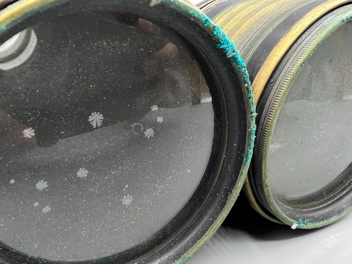 There is wear to the binoculars and the carrying case, but there is no significant damage to the glass or the body and is in overall fair collectible condition. Check pictures for more details and for sizing.