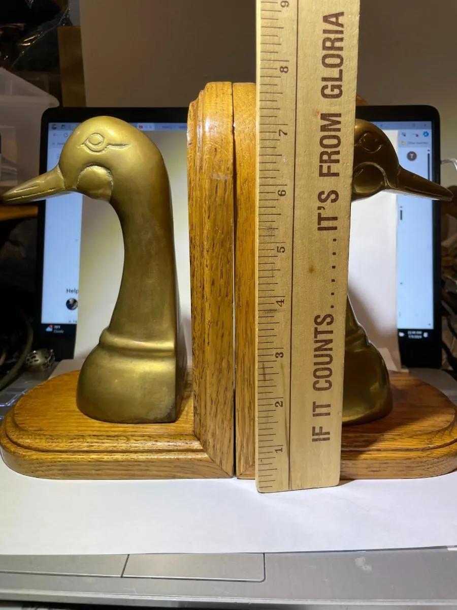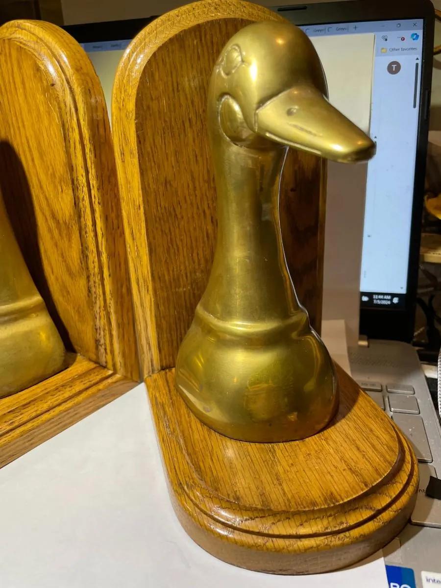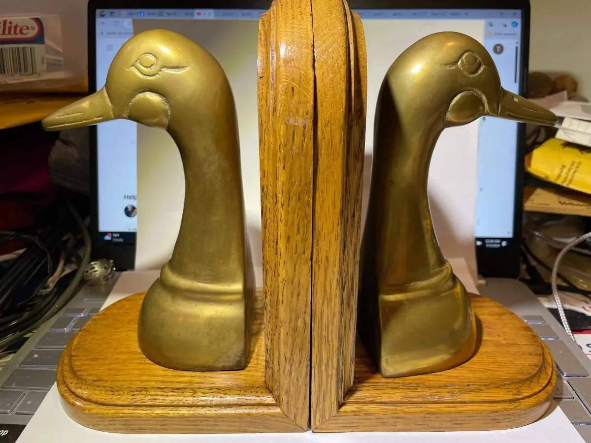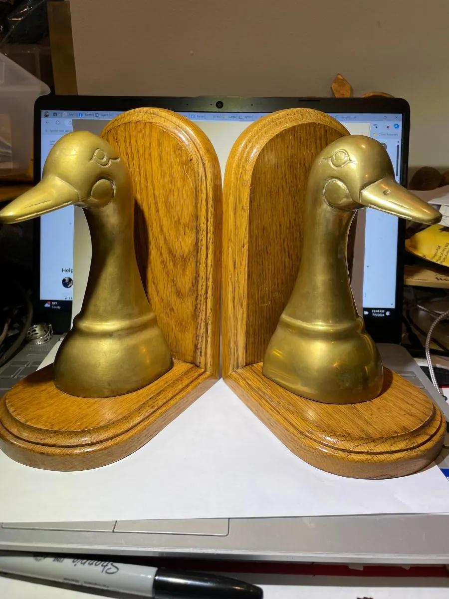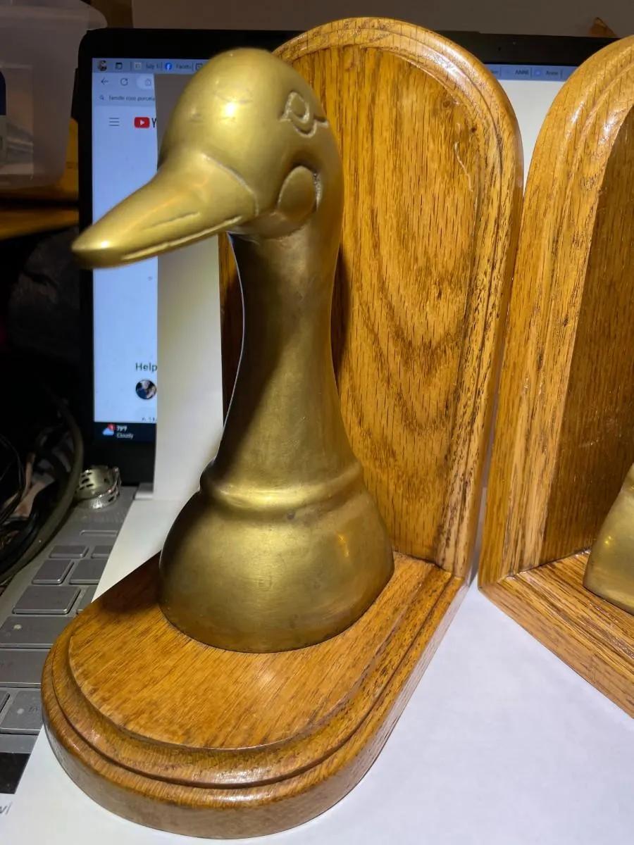 Vintage Pair of Brass Decor Ducks Sculpture Bookends in Good Preowned Condition as Pictured. $15 Domestic Shipping.