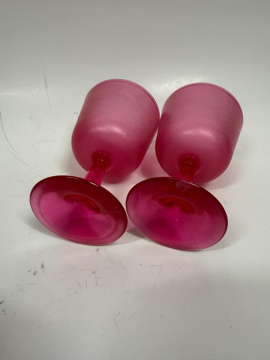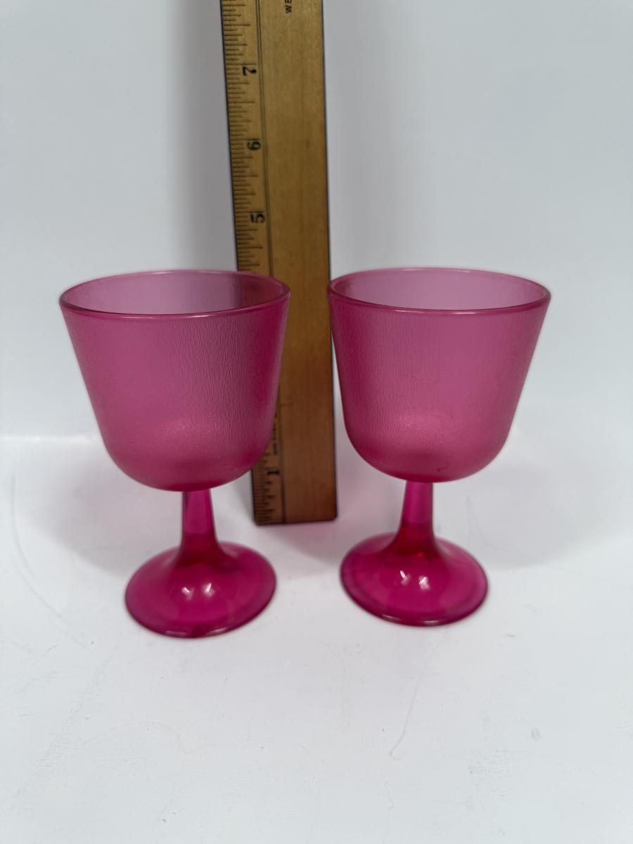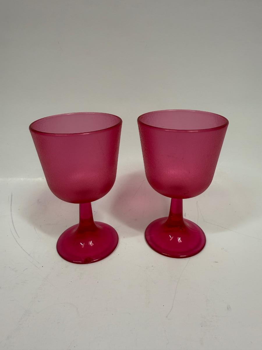 Retro hot pink Pair of Brookpark Plastic Cranberry Wine Glasses