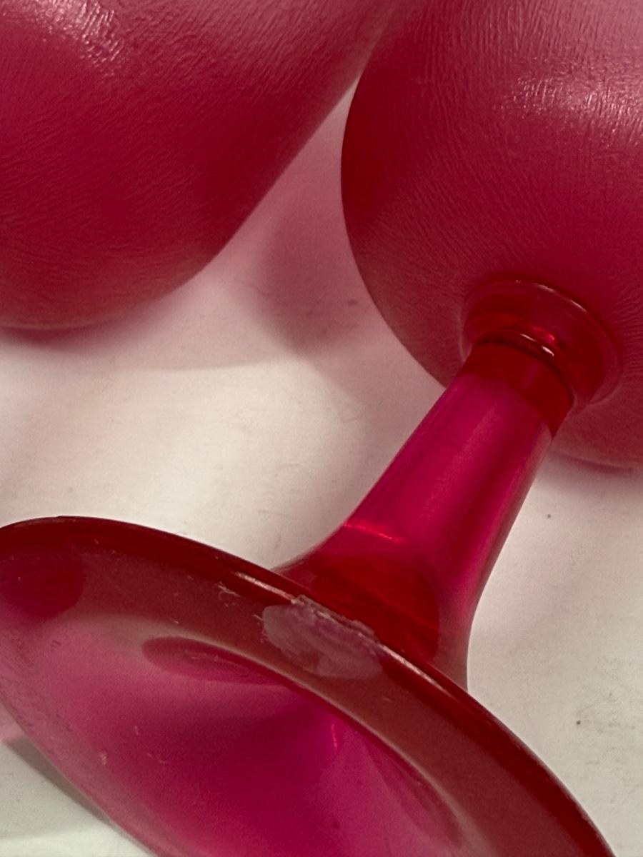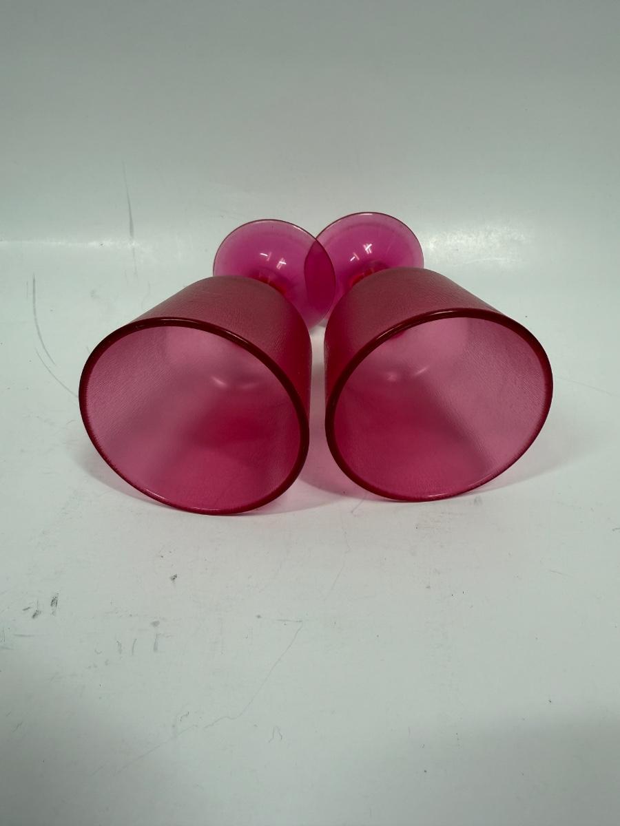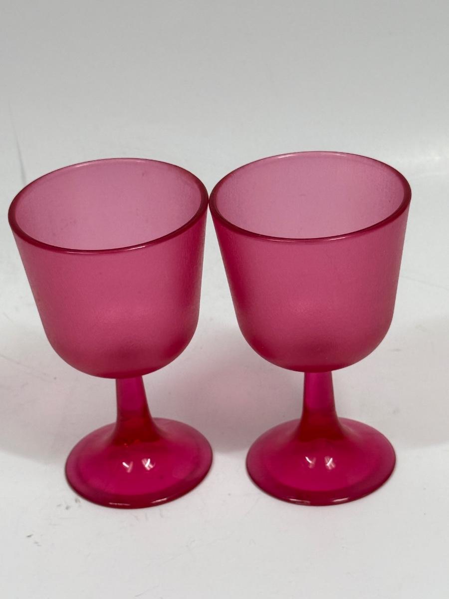 Retro hot pink Pair of Brookpark Plastic Cranberry Wine Glasses