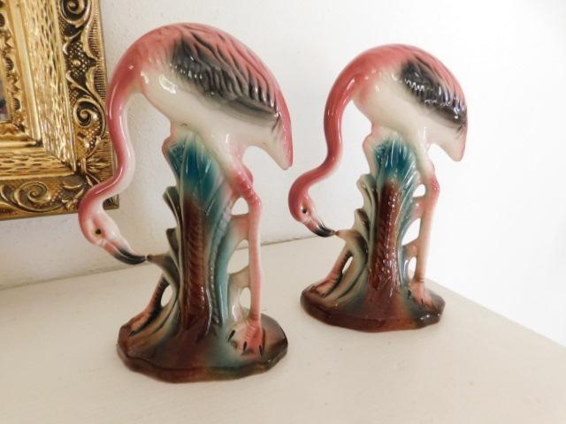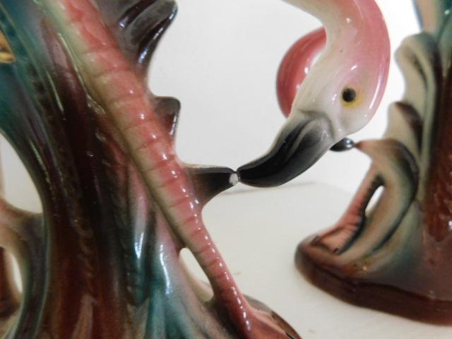 Vintage Pair of Ceramic Flamingo Statuettes one flamingo has some small chips as shown