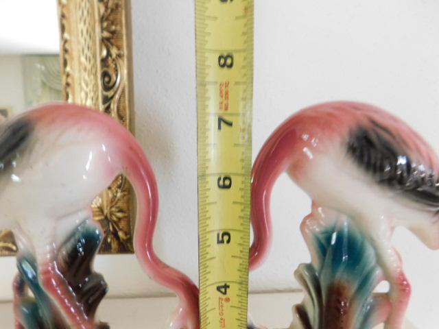 Vintage Pair of Ceramic Flamingo Statuettes 7"