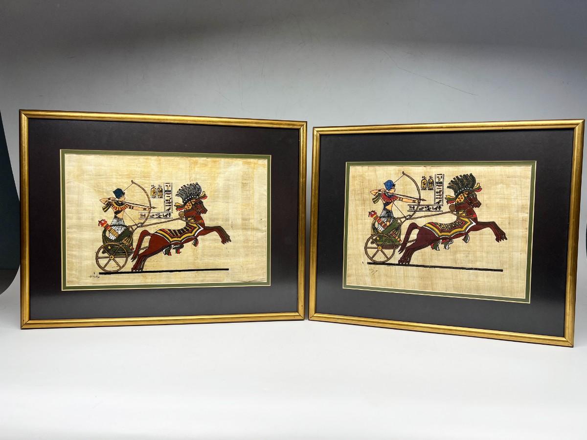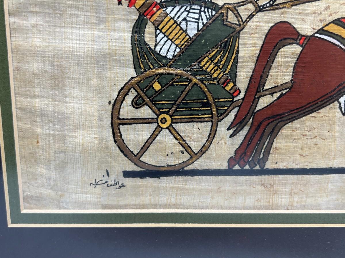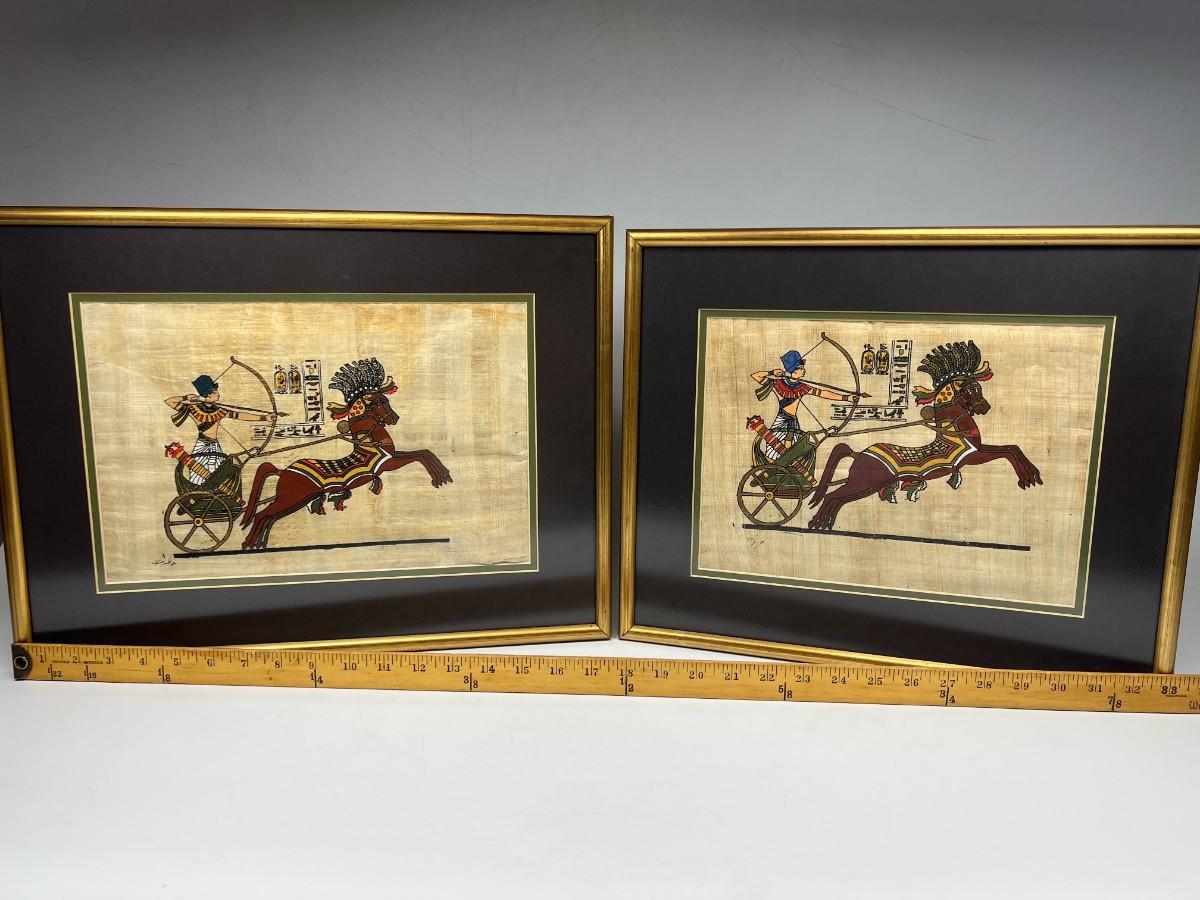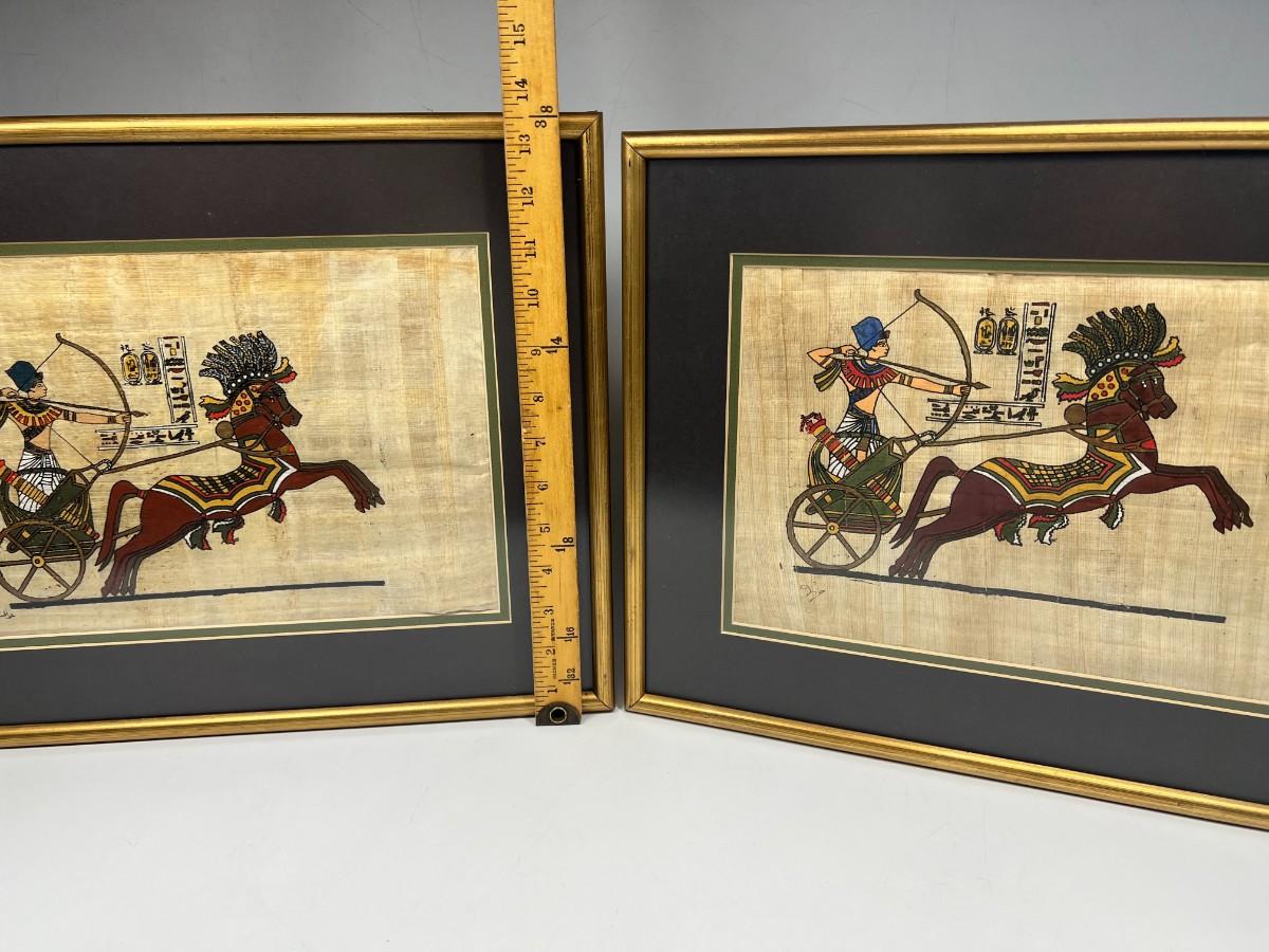 Vintage Pair of Collectible Egyptian Chariot Archer Hand Painted Papyrus Paper Art Decor