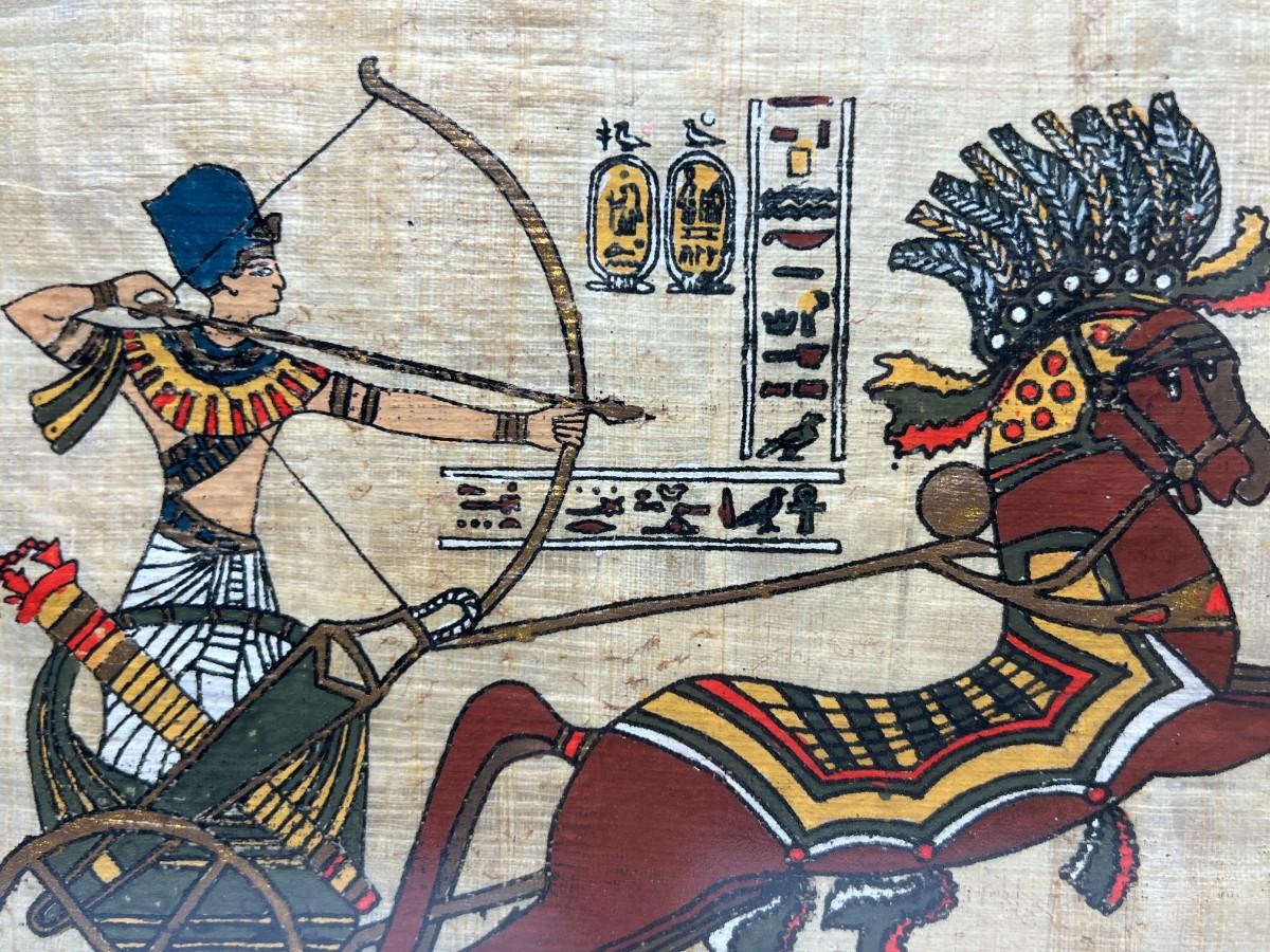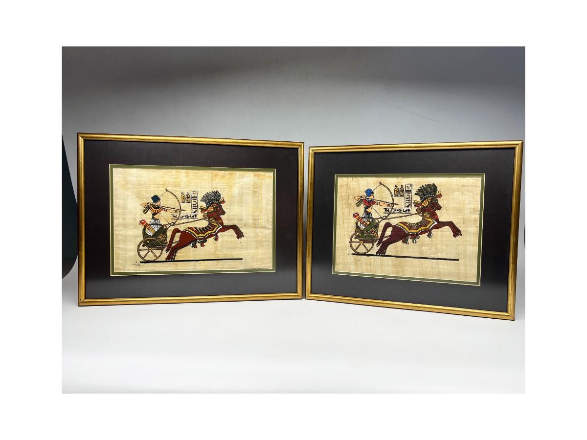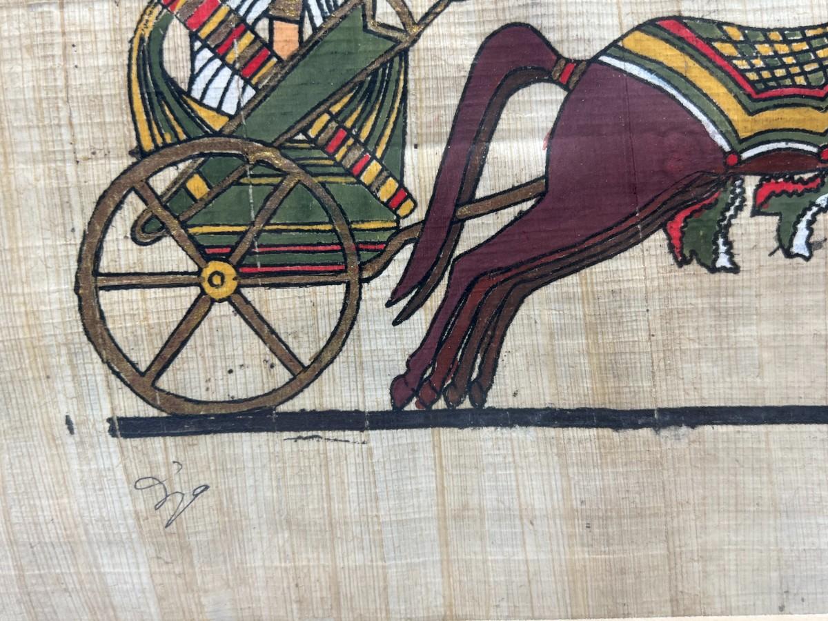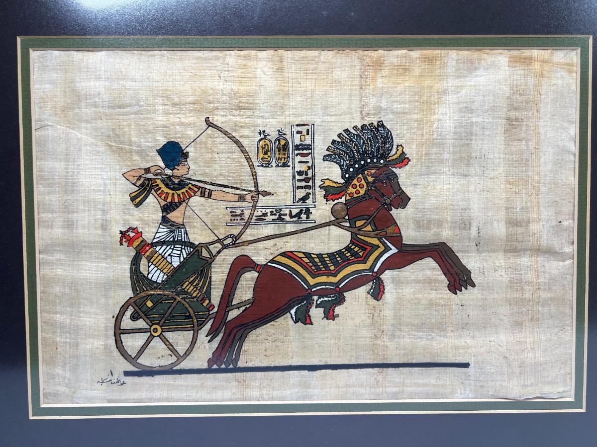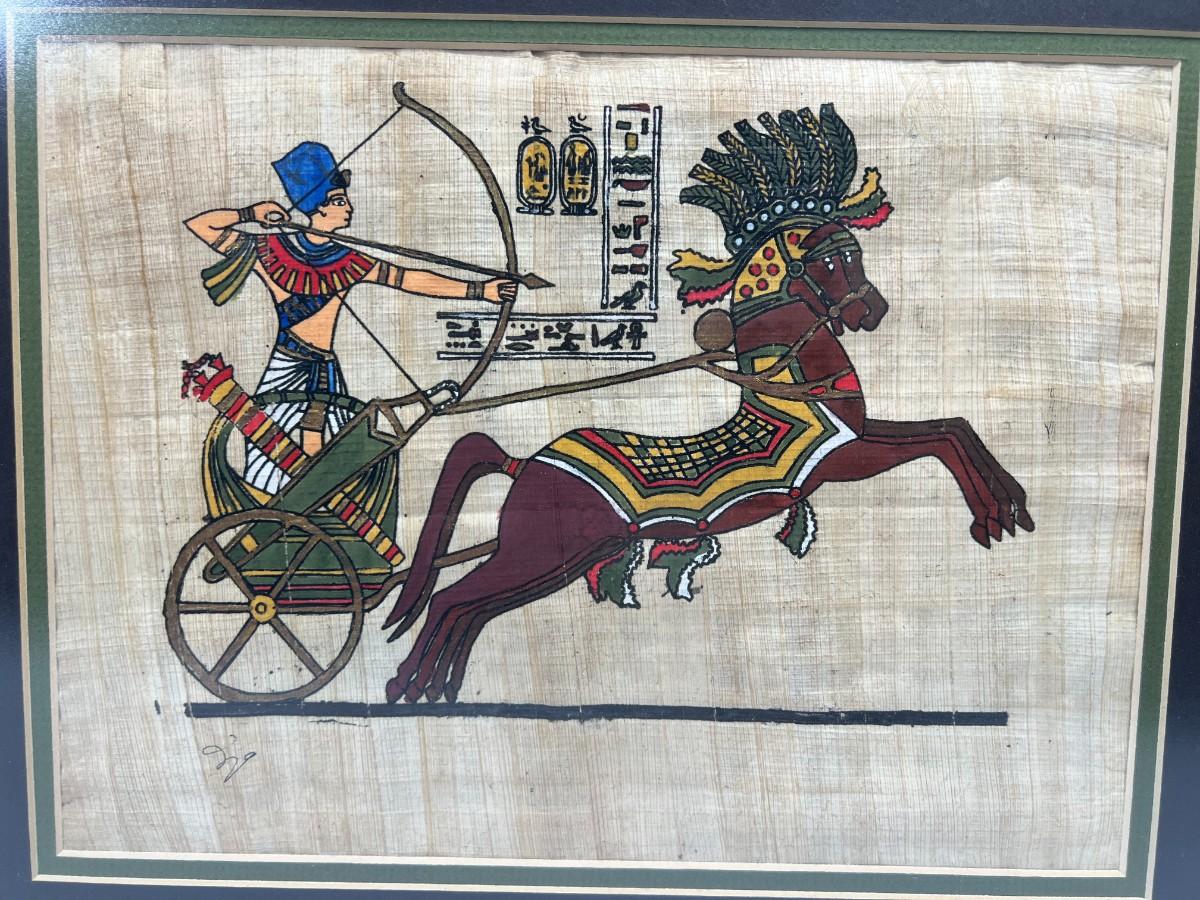 Vintage Pair of Collectible Egyptian Chariot Archer Hand Painted Papyrus Paper Art Decor