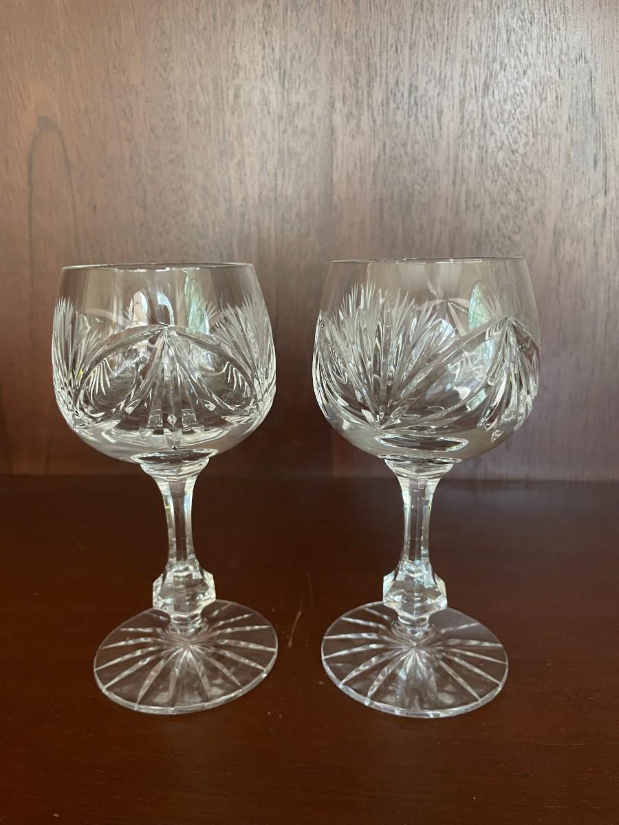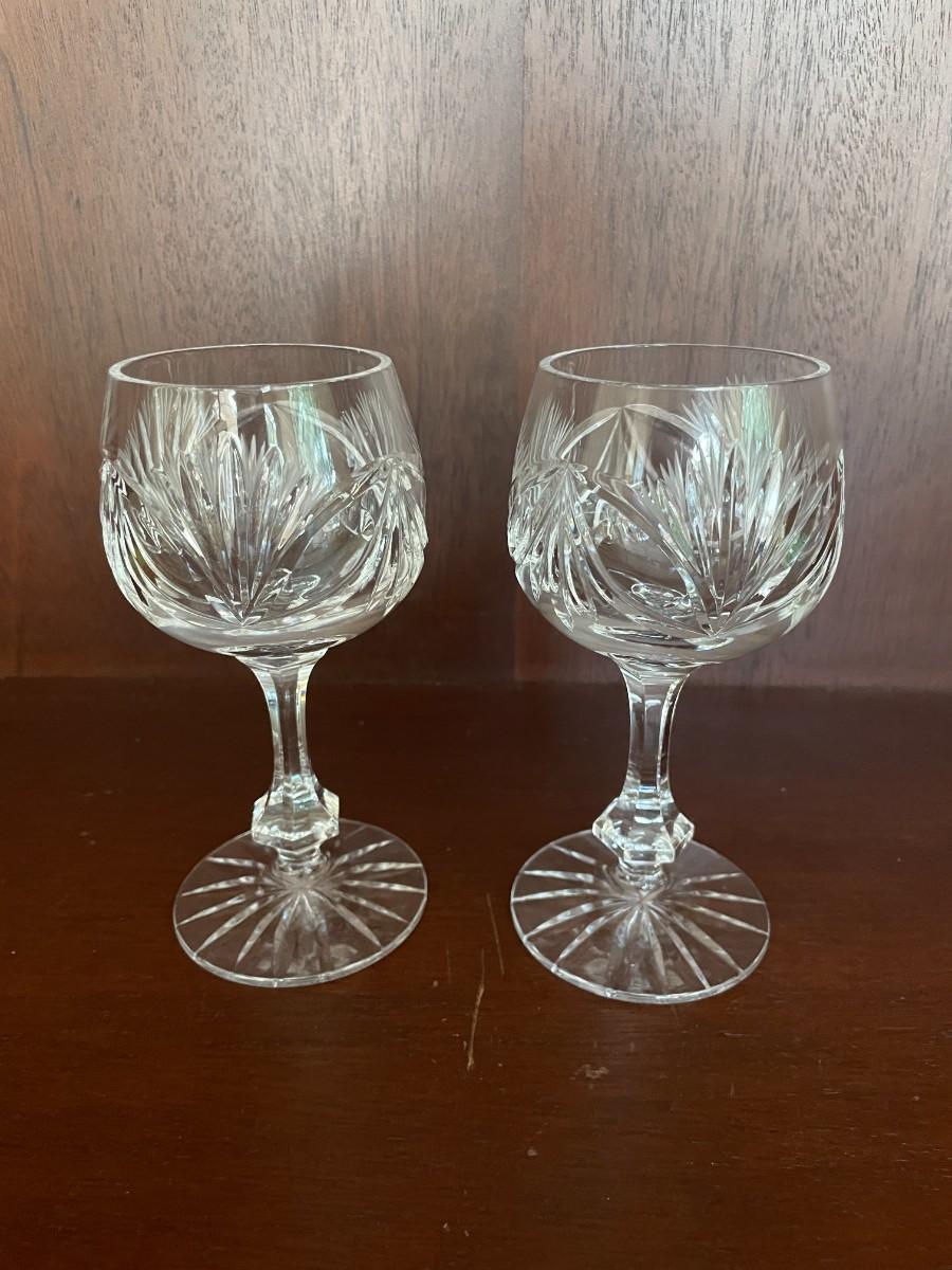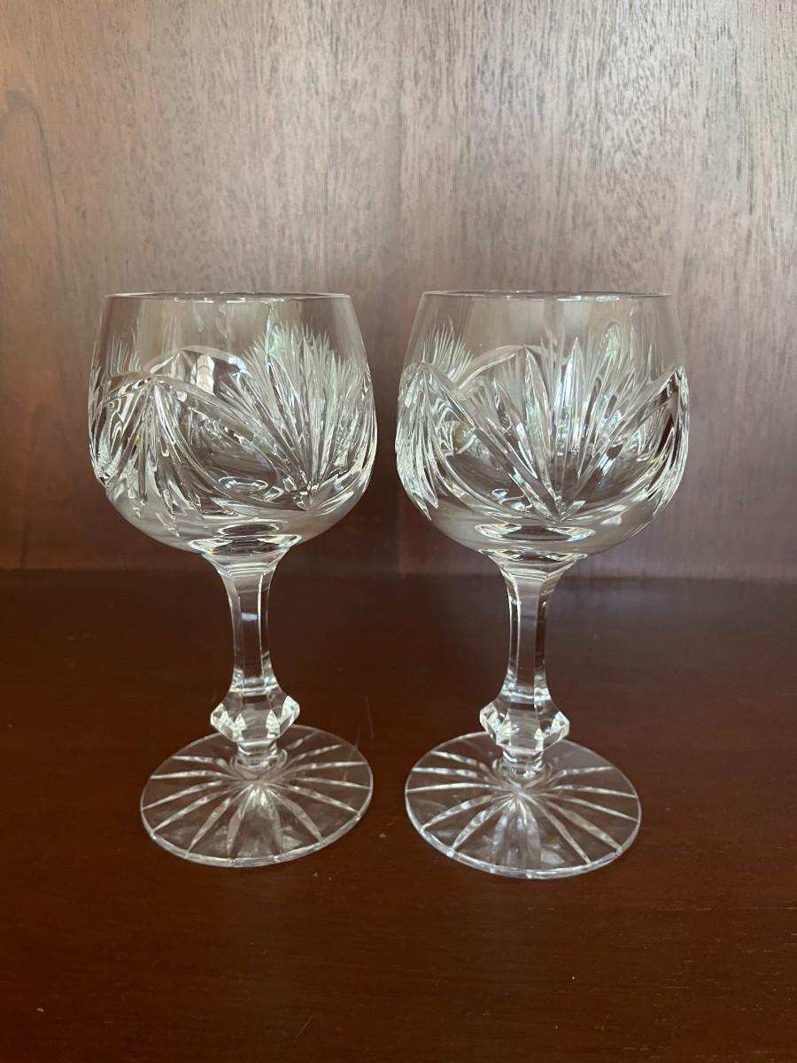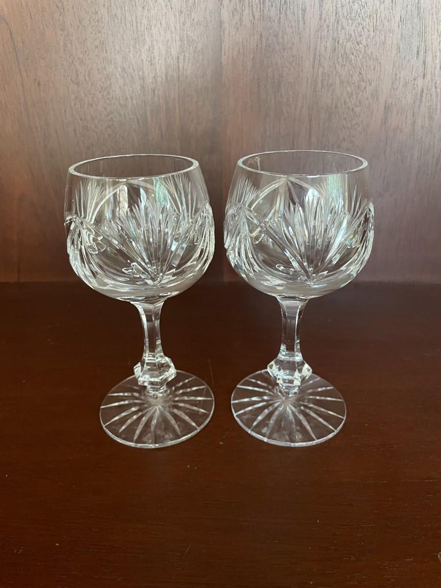 Vintage Pair of Cut Glass Wine Goblets