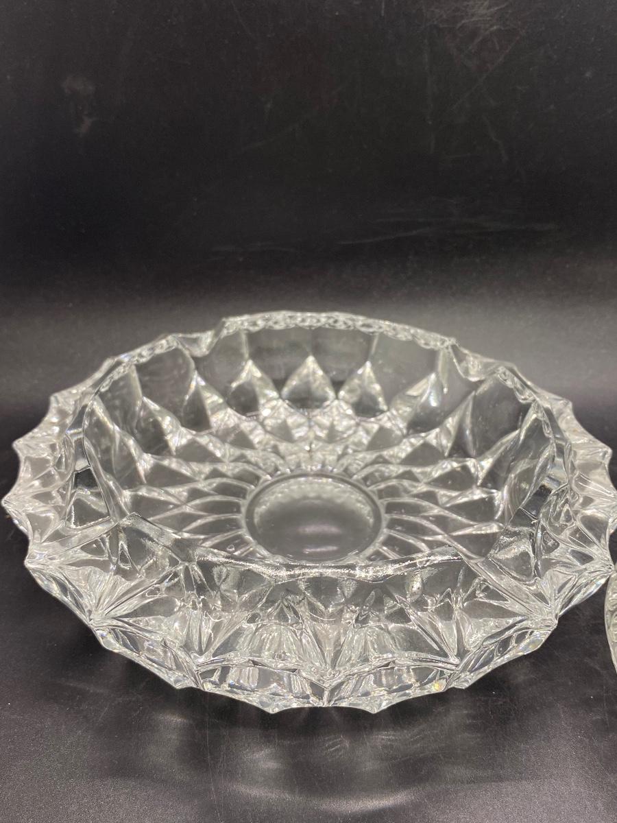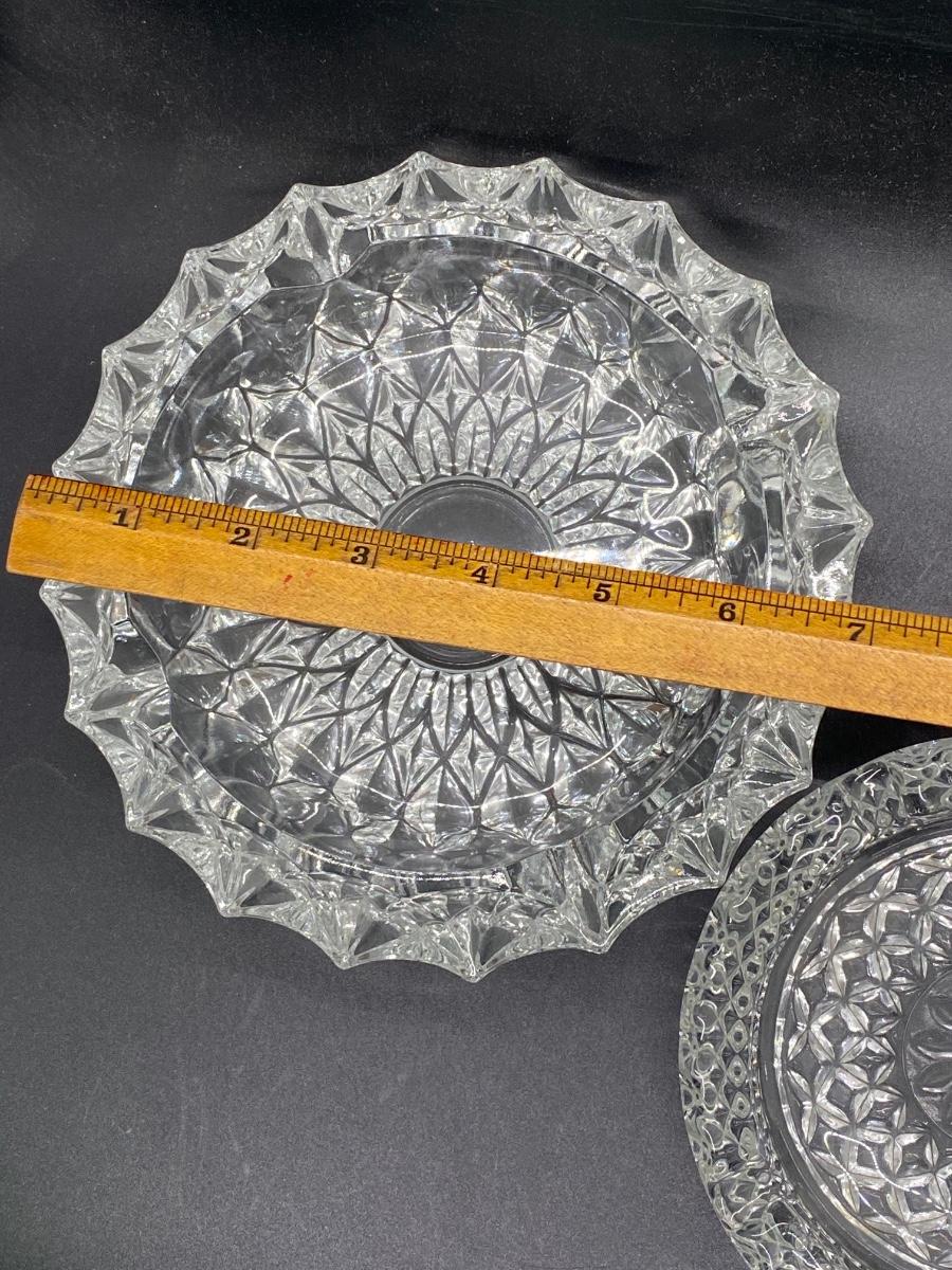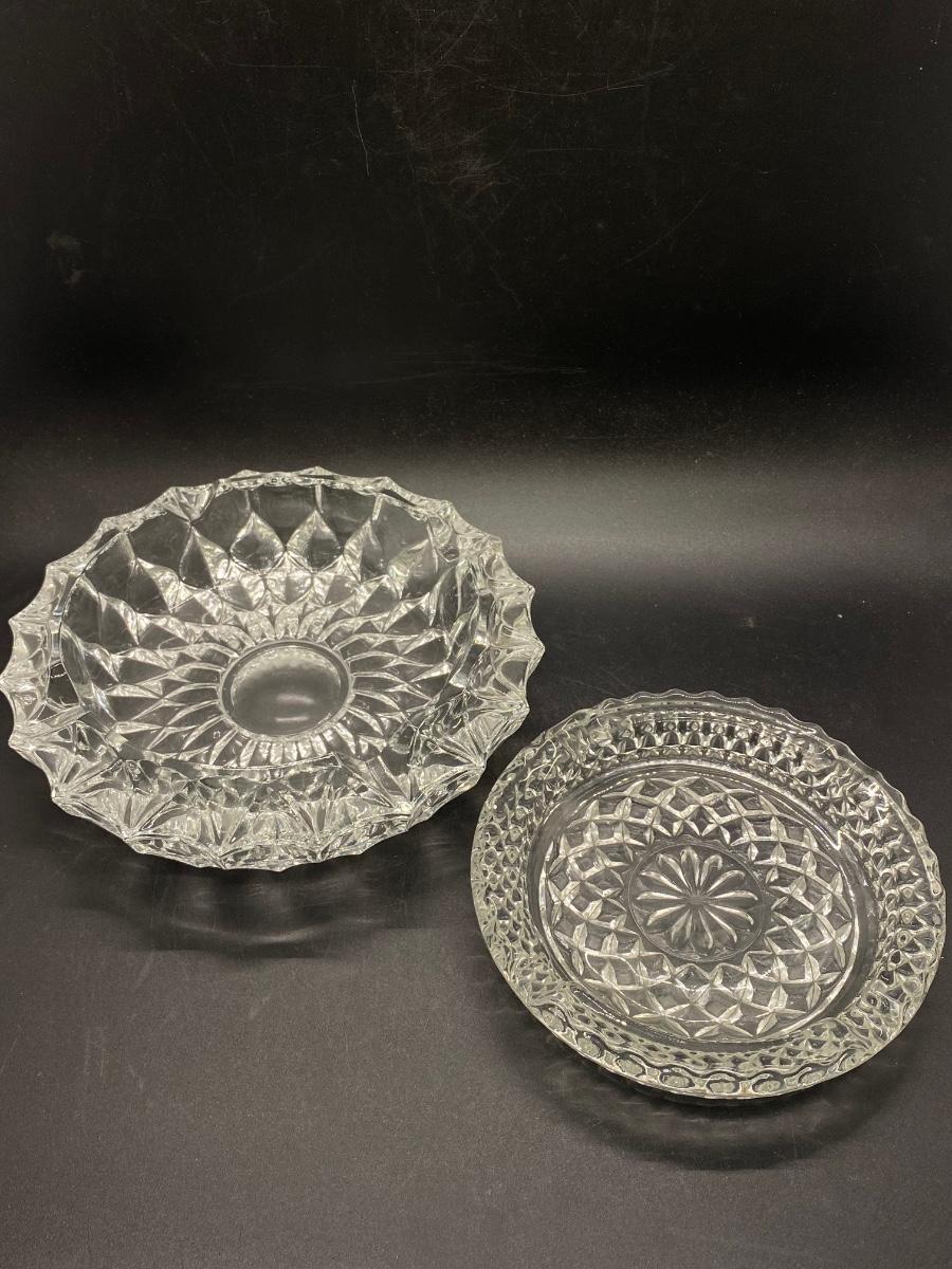 Vintage Pair of Decorative Crystal Art Glass Dishes, there are no significant chips or cracks to the glass and is in good vintage condition. Check pictures for more details and for sizing.