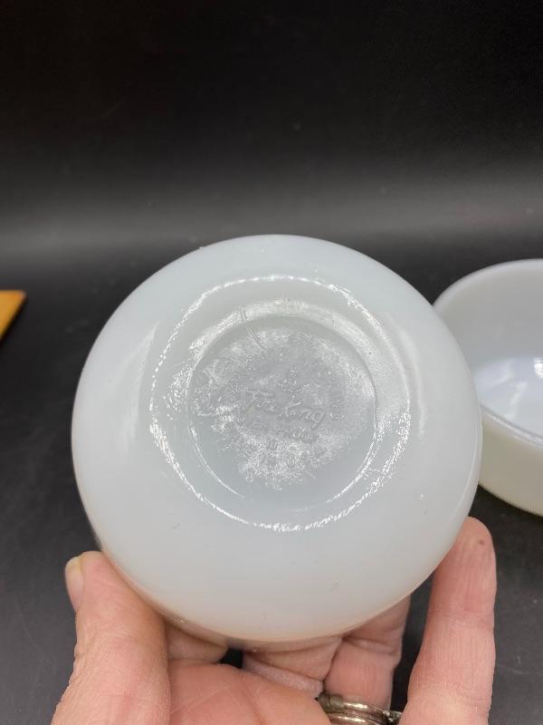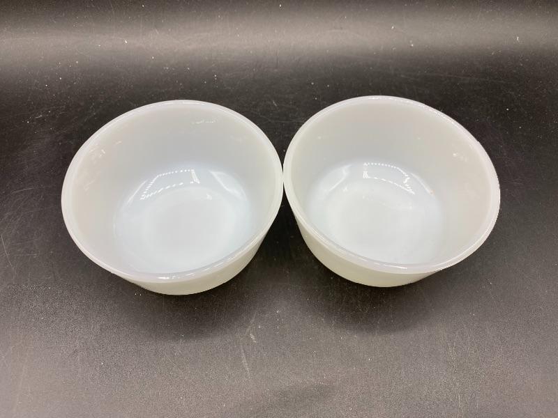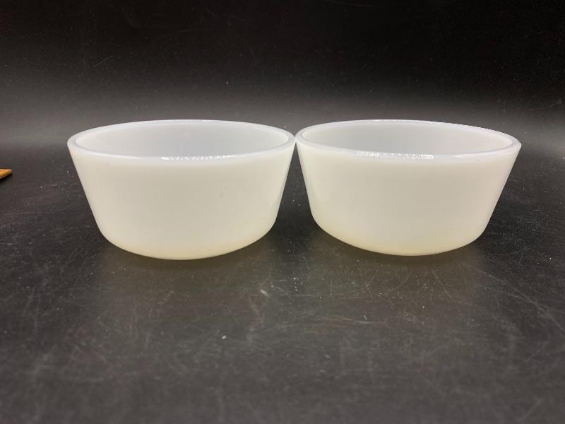 Vintage pair of white Fire King ramekin bowls. Good condition. No chips.