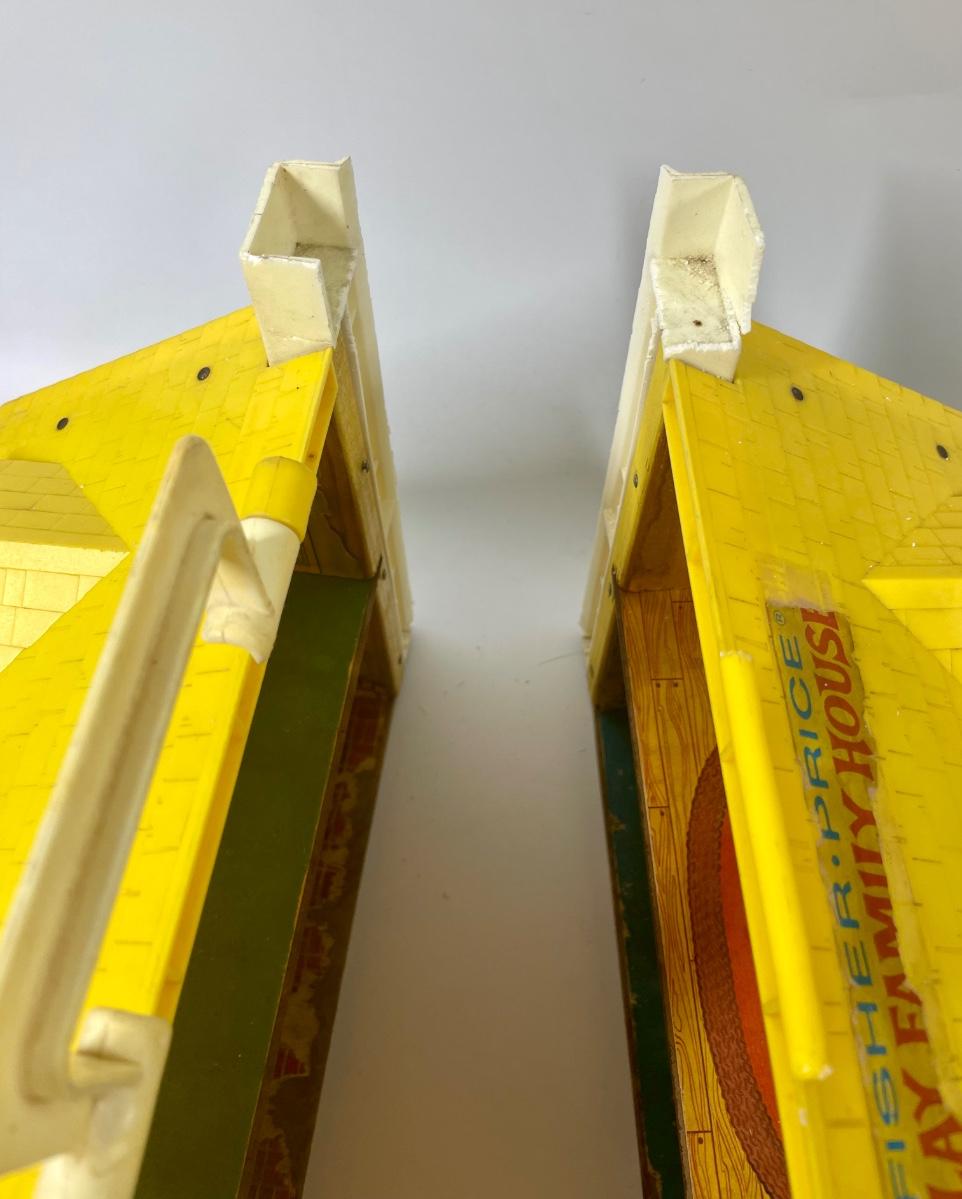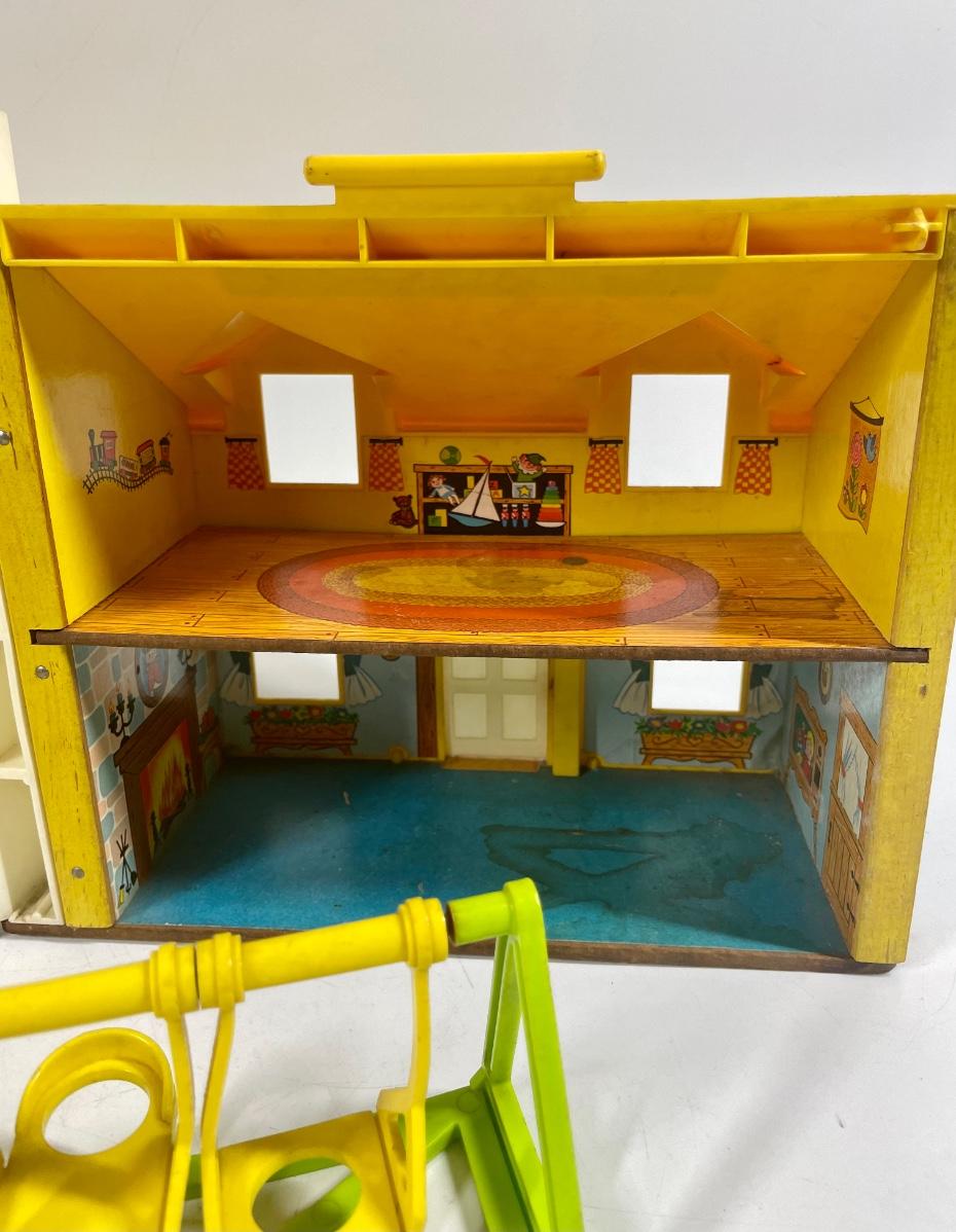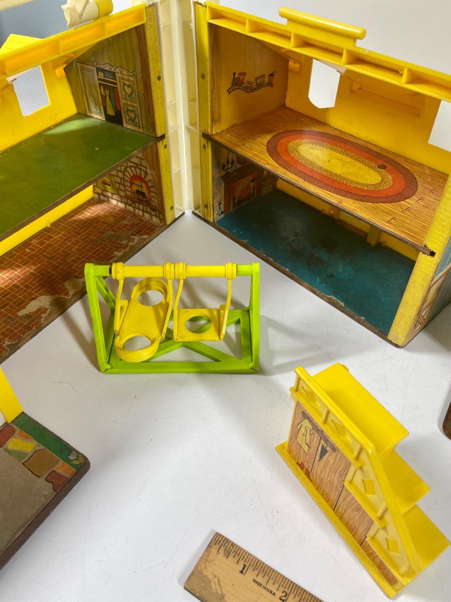 Vintage Pair of Fisher Price play Family Houses #952. Some accessories included, see photos. Well played with, some wear and 2 house is split along the chimney.