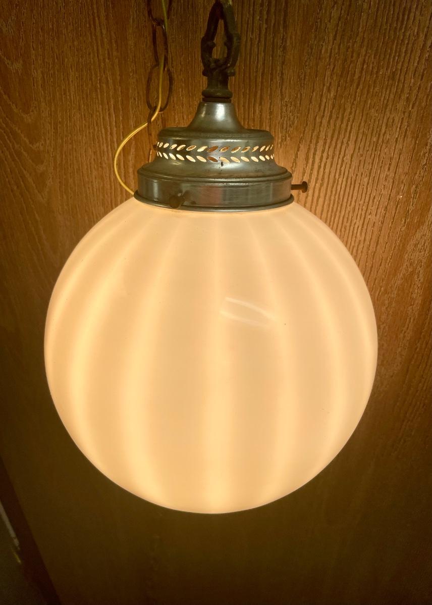 Beautiful hand blown glass globes, when lit they have a subtle vertical striped effect. Both are tested and work perfectly.