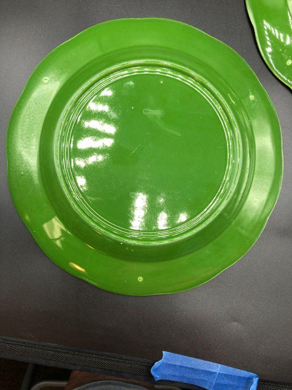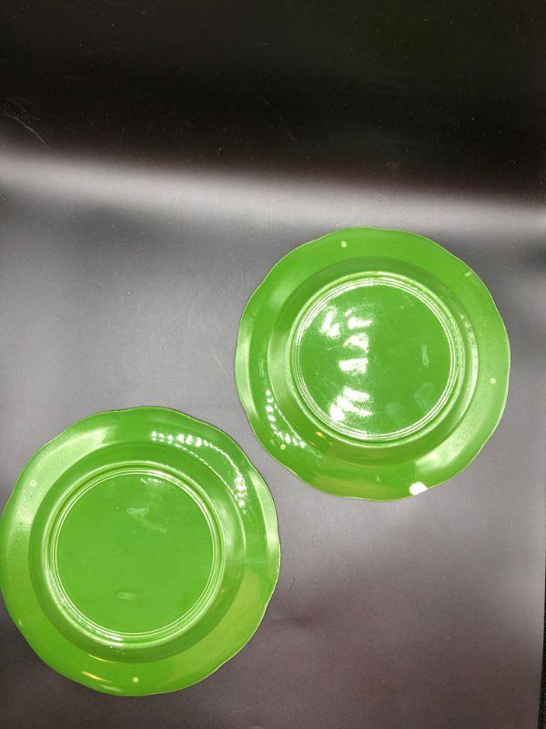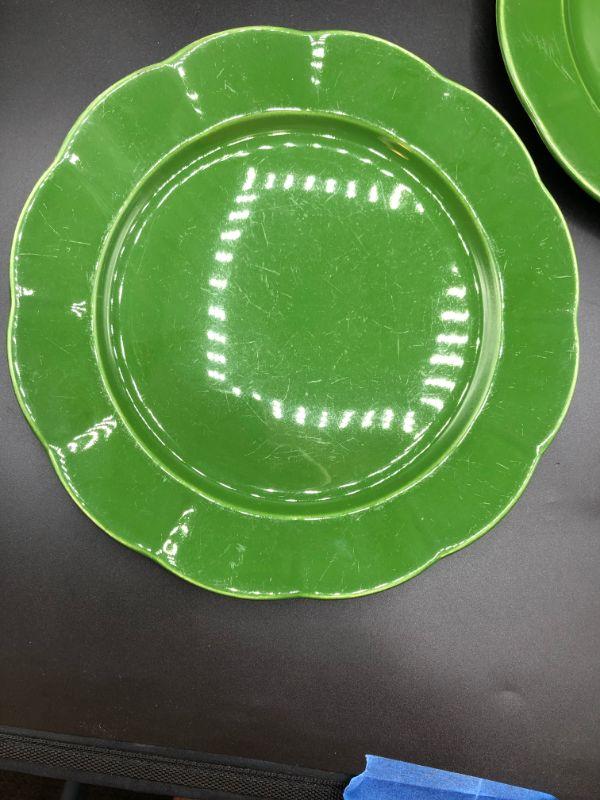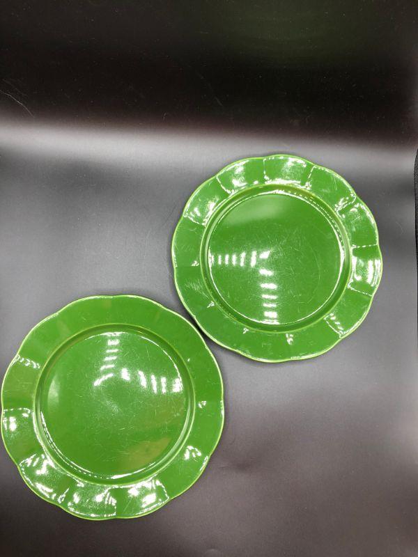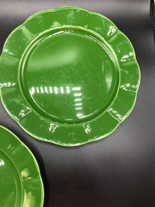 Vintage pair of W.S. George plates. Unmarked, scalloped edge. Signs of everyday use. Chip in the edge of one.