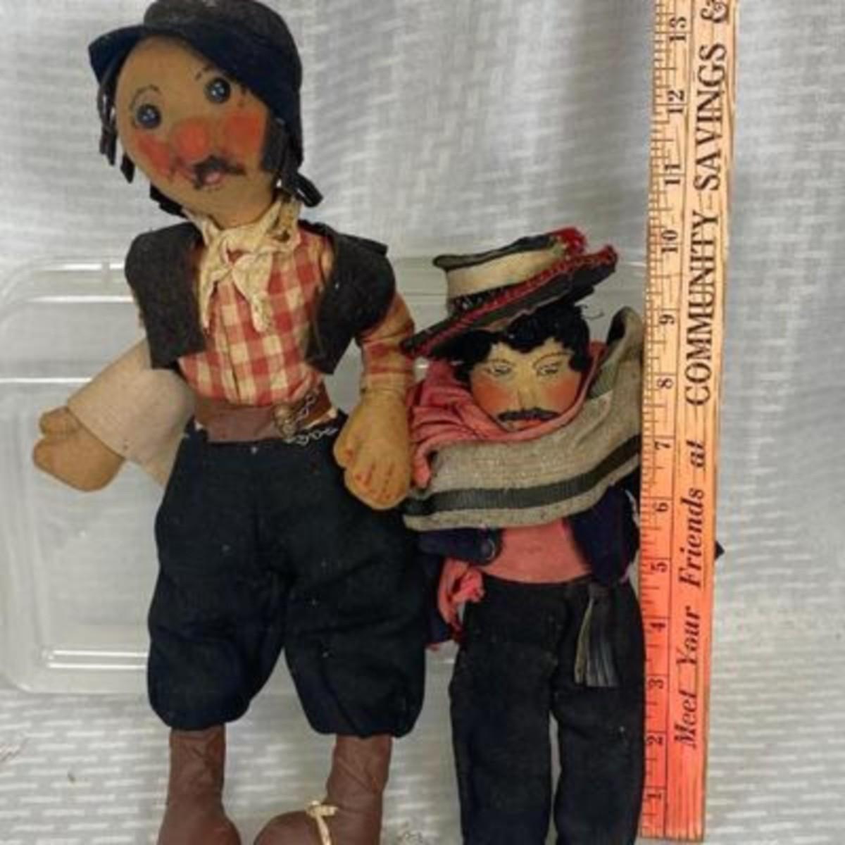 Vintage Pair of Handmade Poncho Wearing Ranchero Felt Dolls