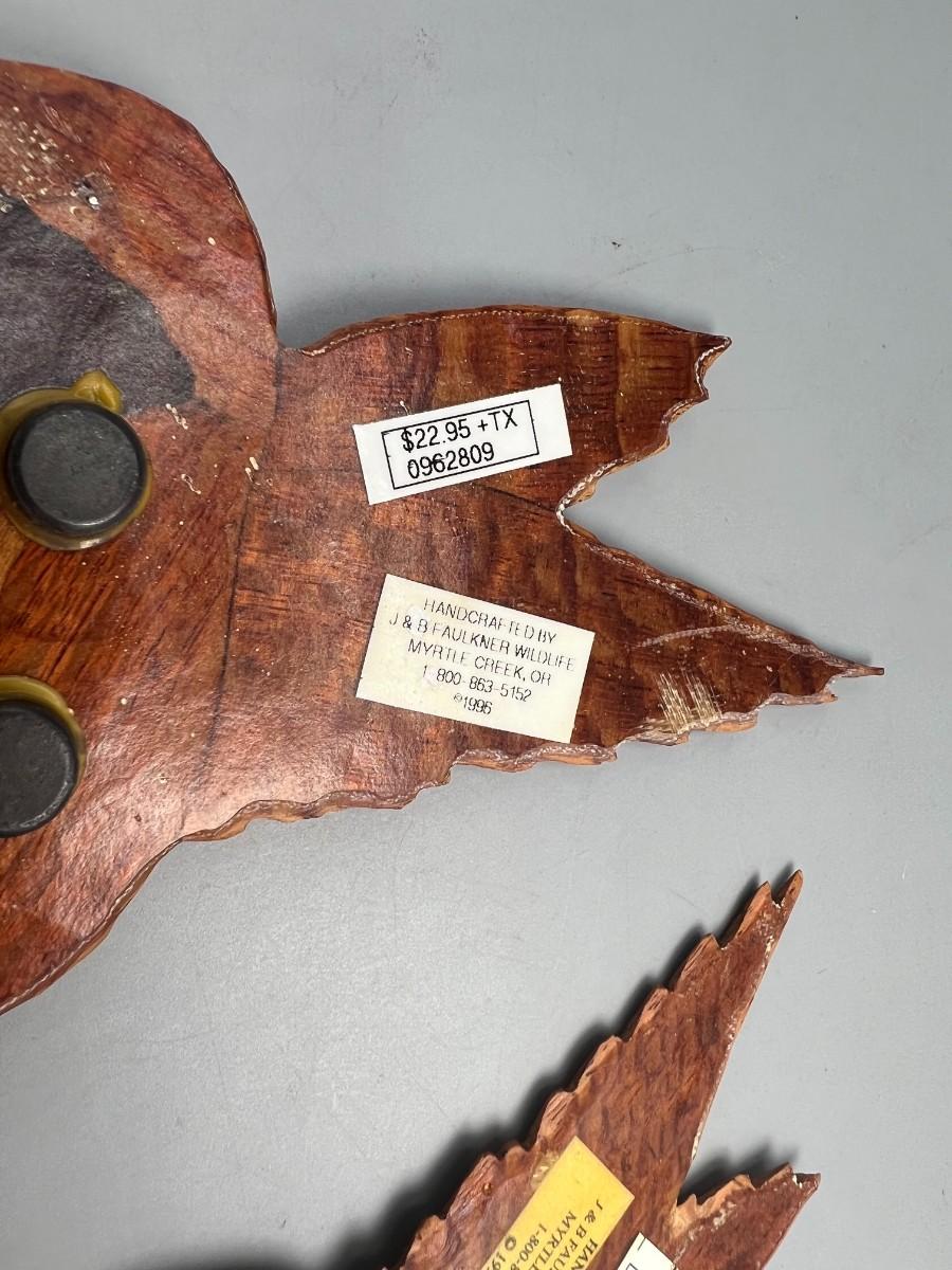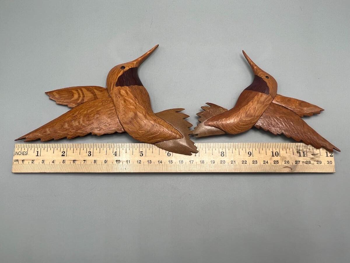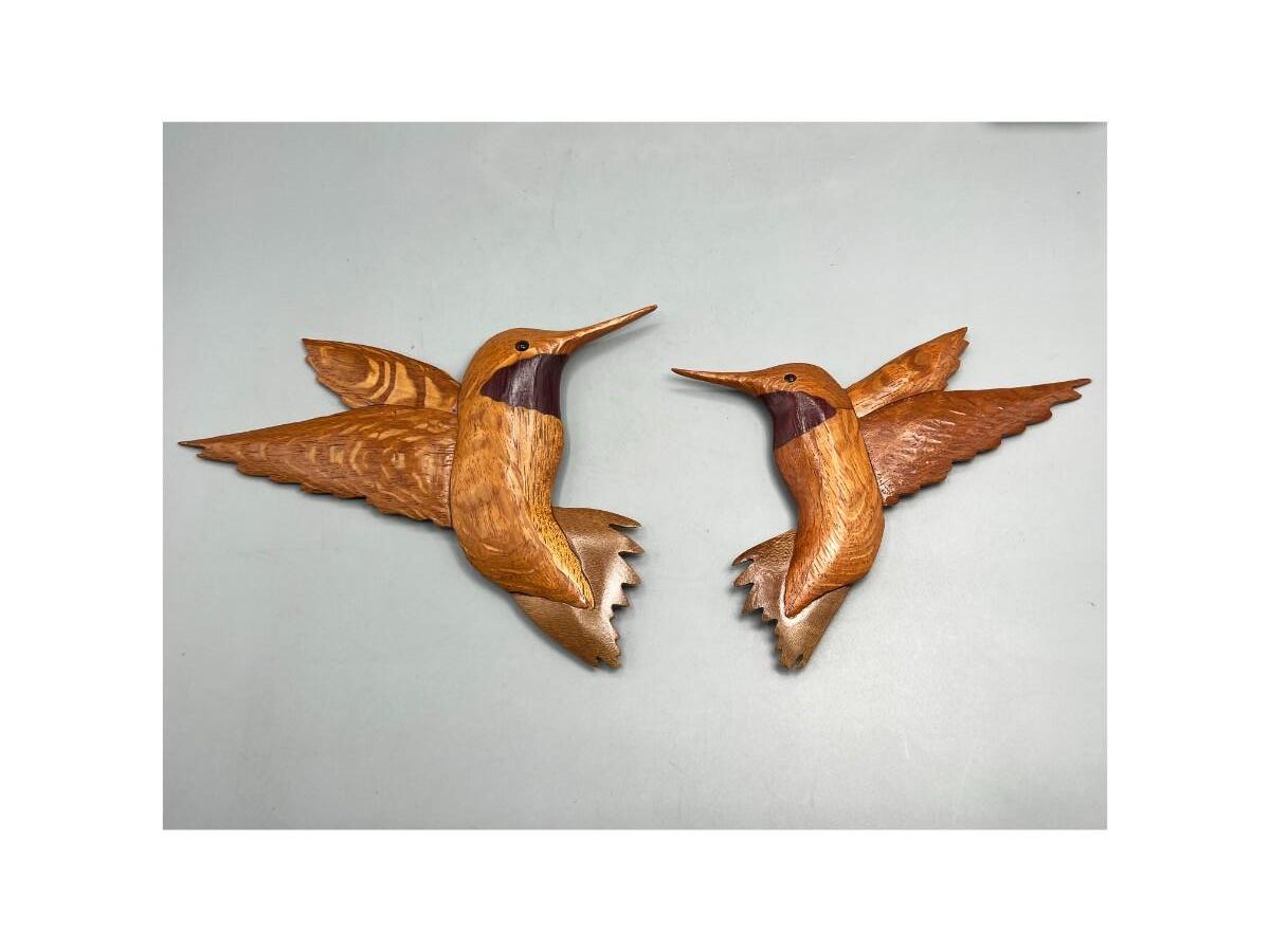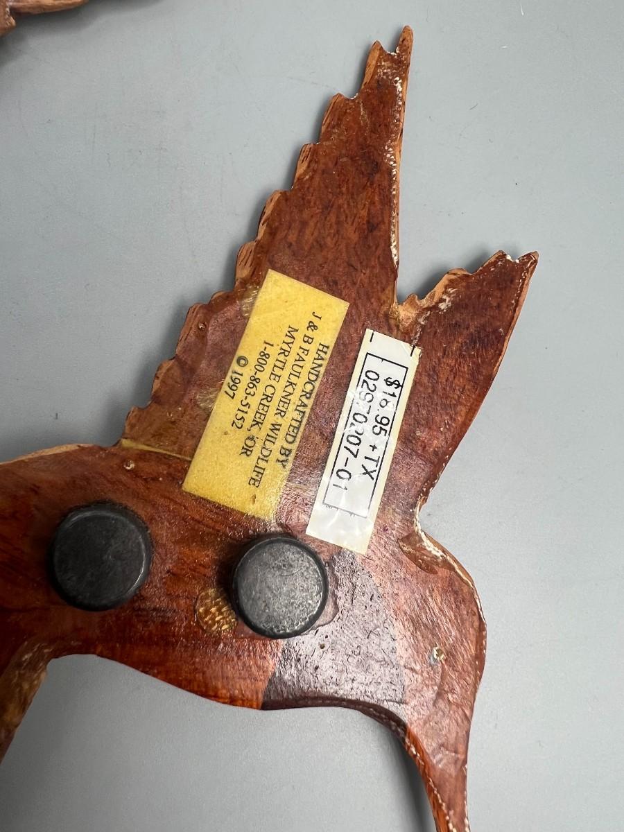 Vintage Pair of Handmade Wooden J & B Faulkner Wildlife Hummingbird Magnets, there is no signifncant cracks or chips to the wood and is in good displayable & vintage condition. Check pictures for more details and for sizing.