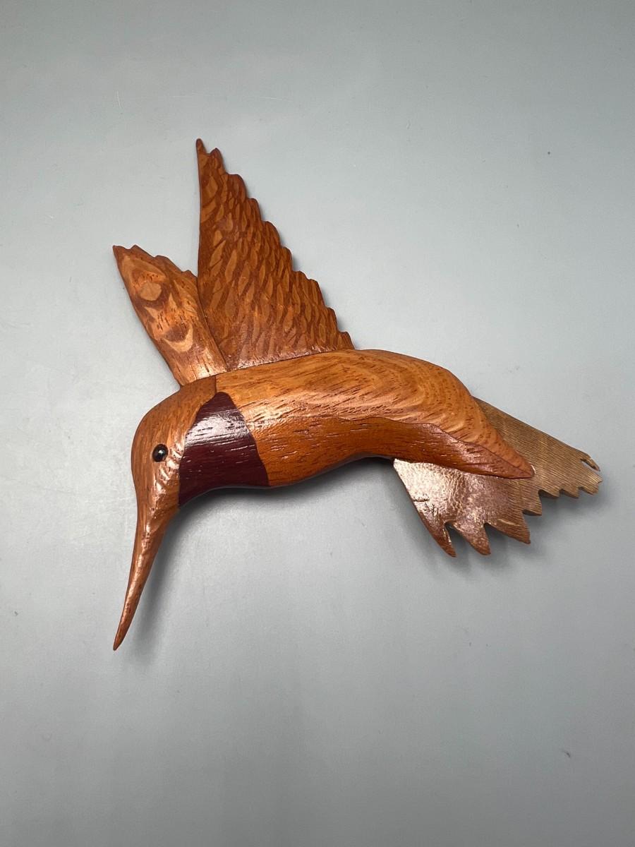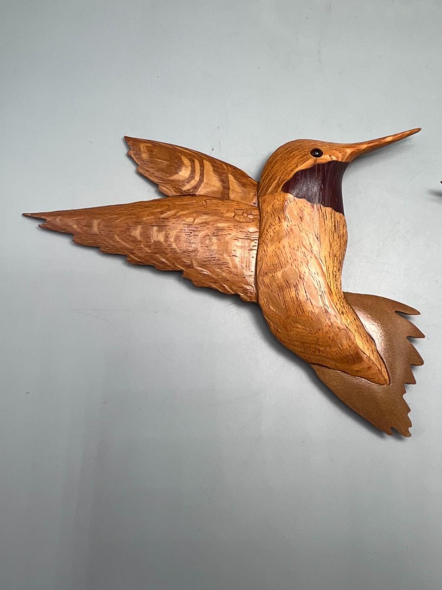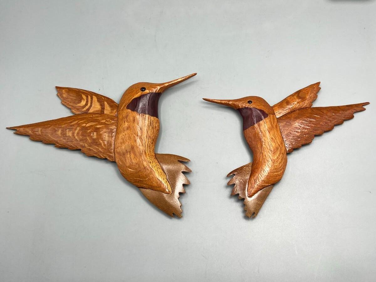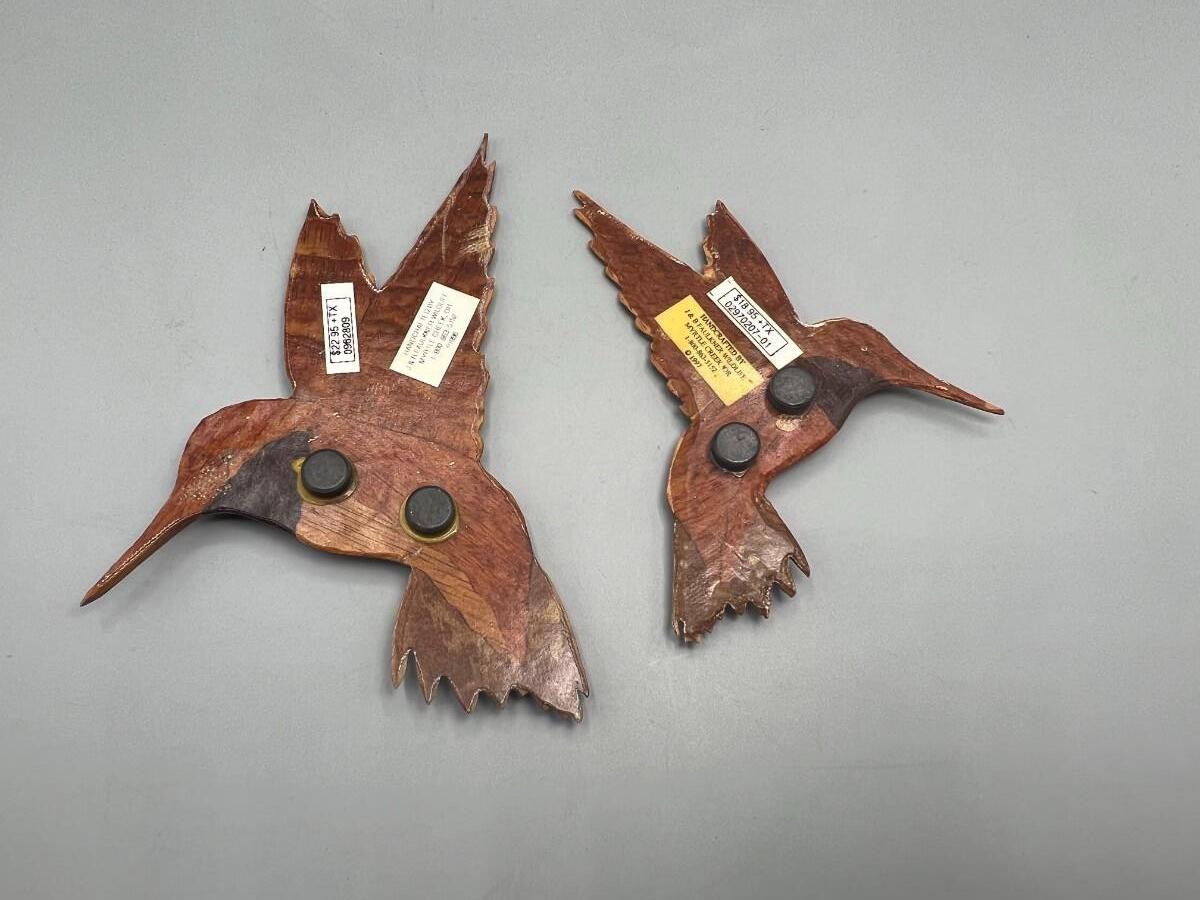 Vintage Pair of Handmade Wooden J & B Faulkner Wildlife Hummingbird Magnets