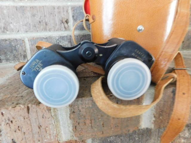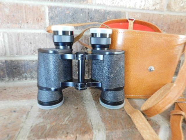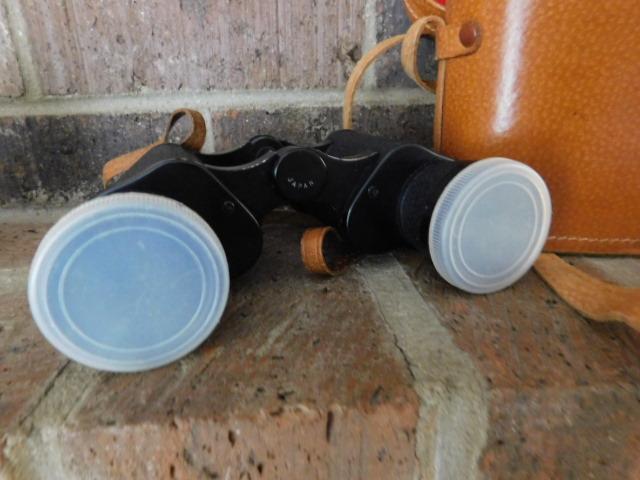 Vintage Pair of Japanese Tower Binoculars carry case is broken at latch.
