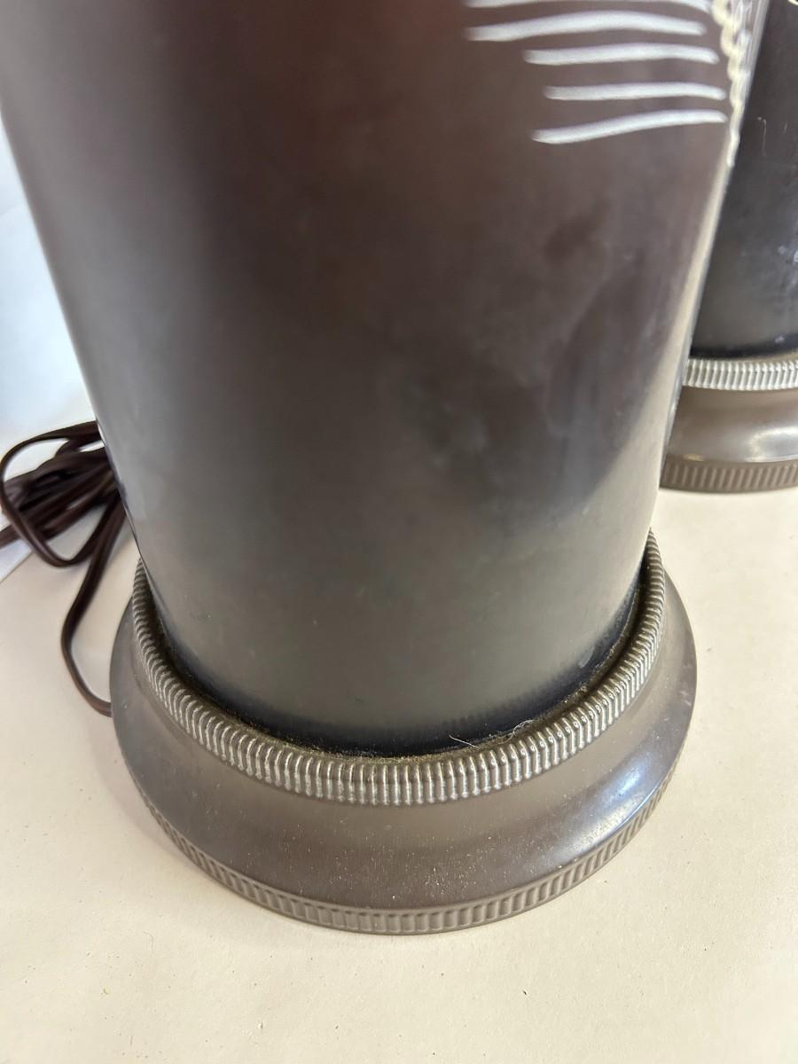 Disclosures: We tested the lamps, which need the electric wiring replaced before regular use. As with all vintage electrical items, we recommend professional evaluation. The cone has a few imperfections, hence the lower price. (See pictures for details.)