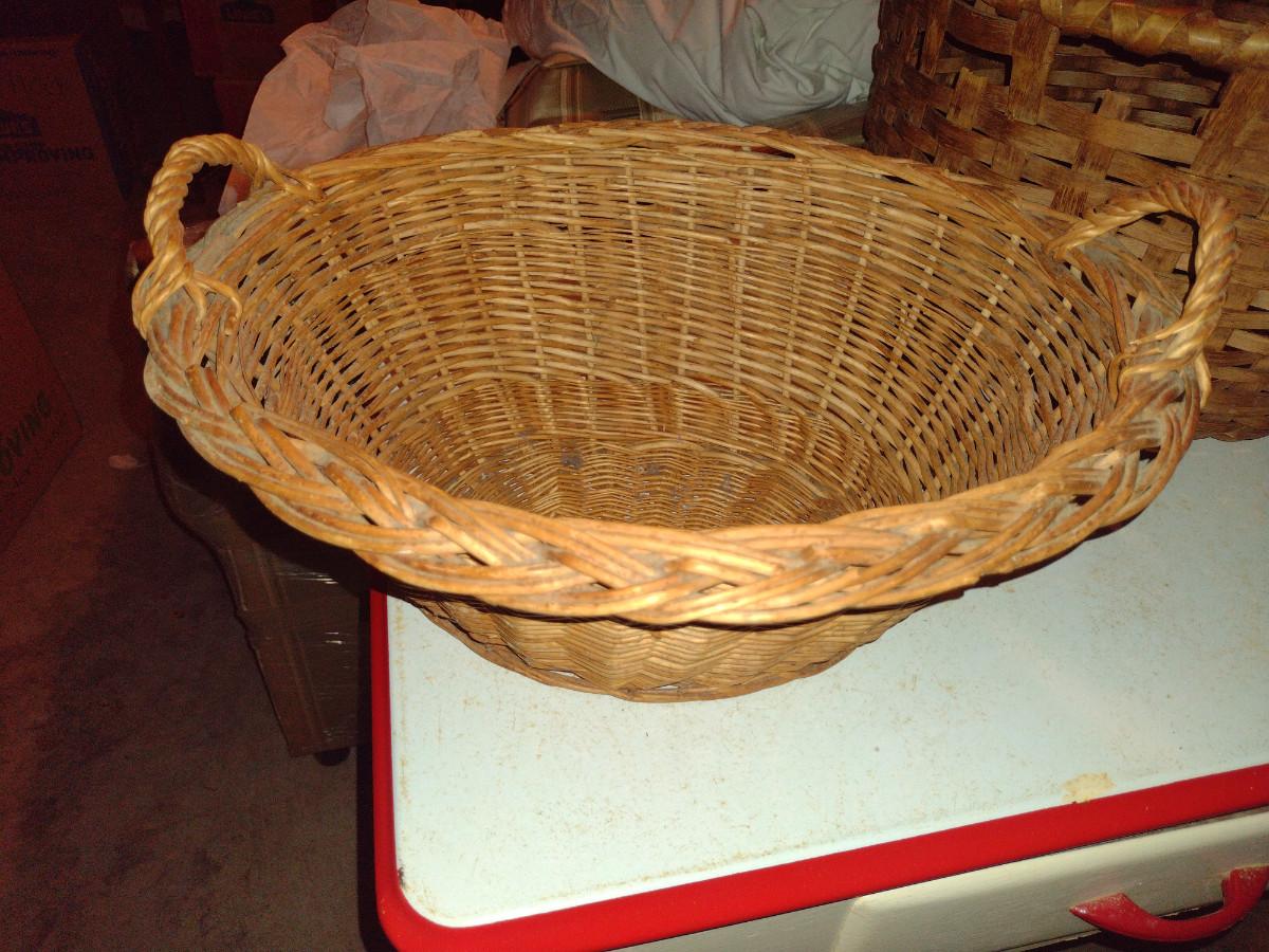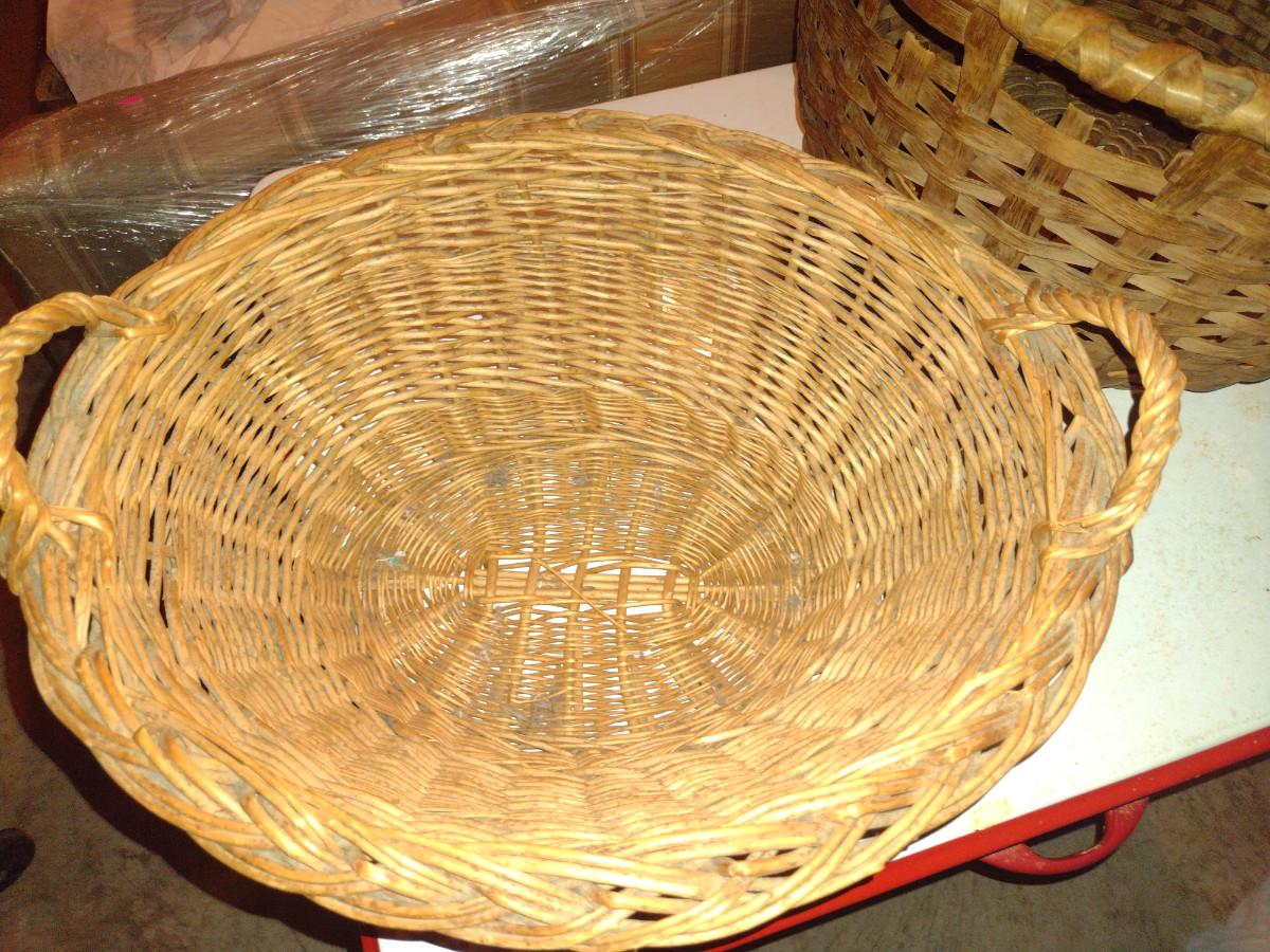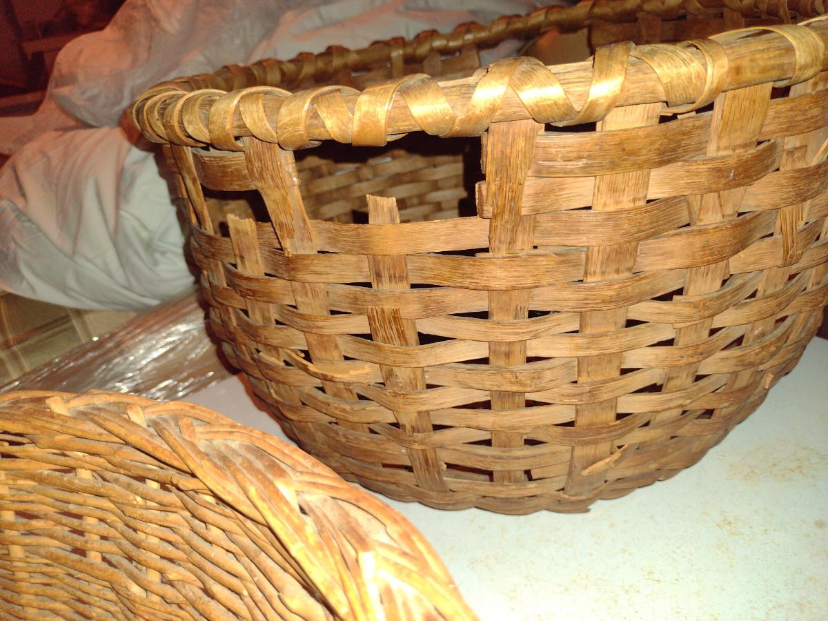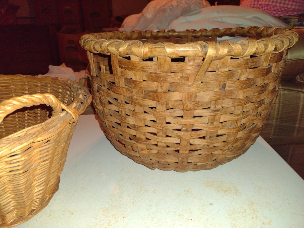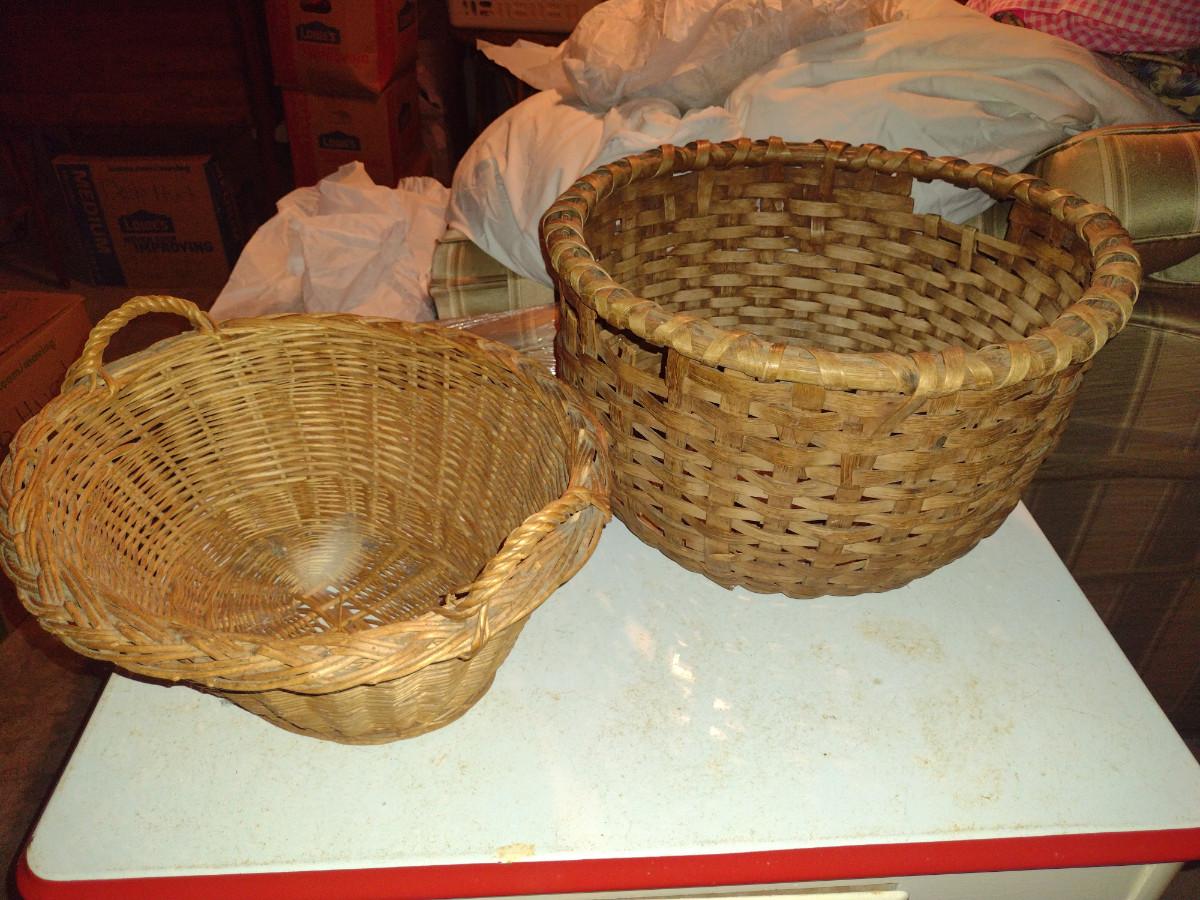 Vintage Pair of Large Woven Baskets- Wicker and Splint Wood