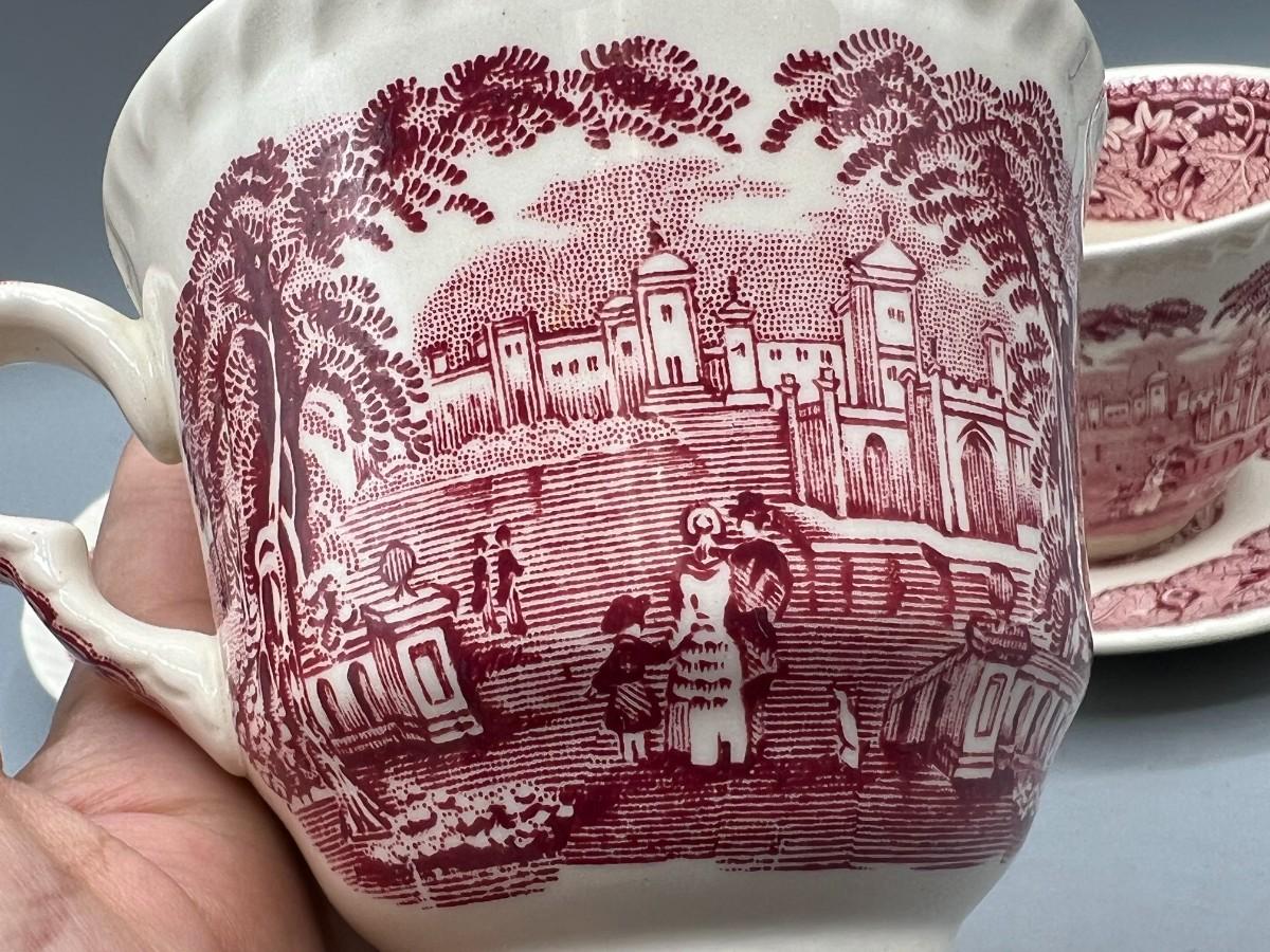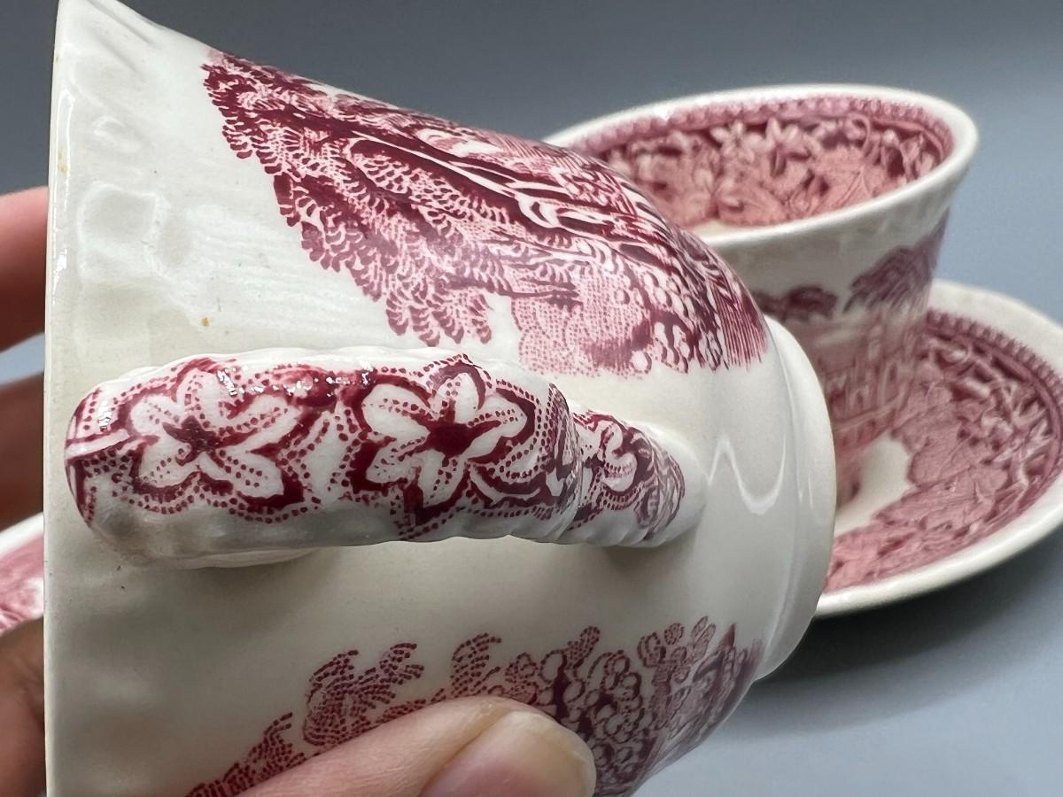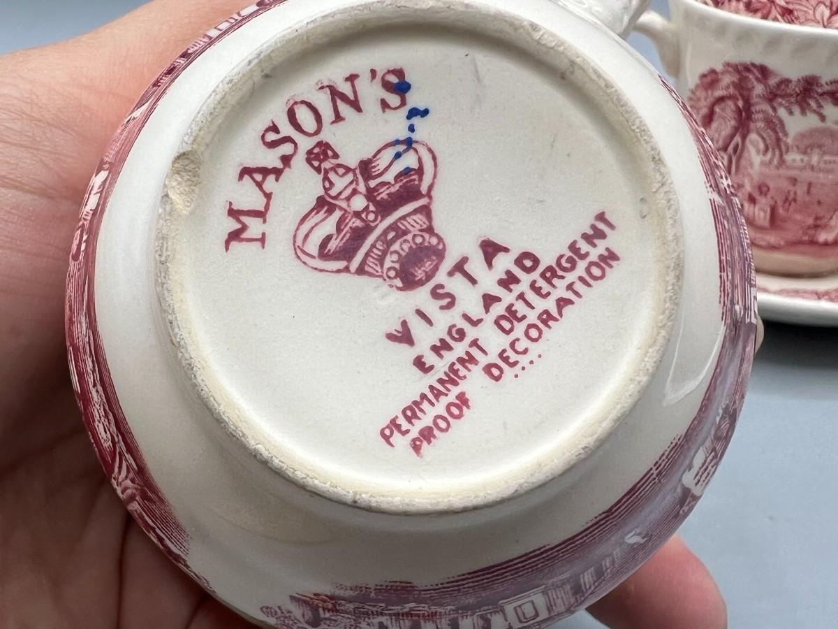 Vintage Pair of Mason's Red Transferware England Permanent Detergent Teacup & Saucer