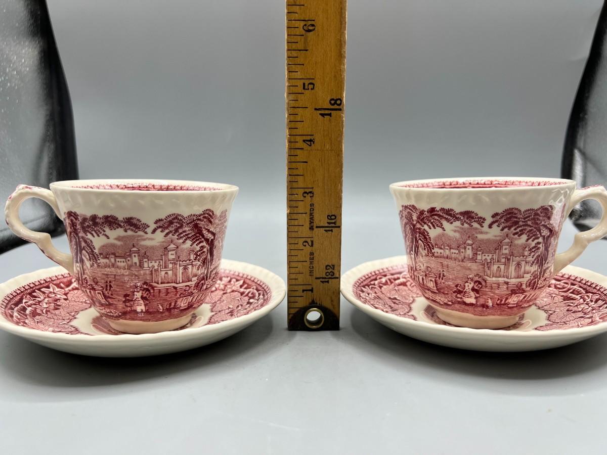 There are no significant cracks or chips to the teacups or saucers and is in overall good collectible or useable condition. Check pictures for more details and for sizing.
