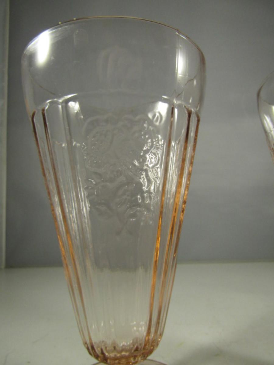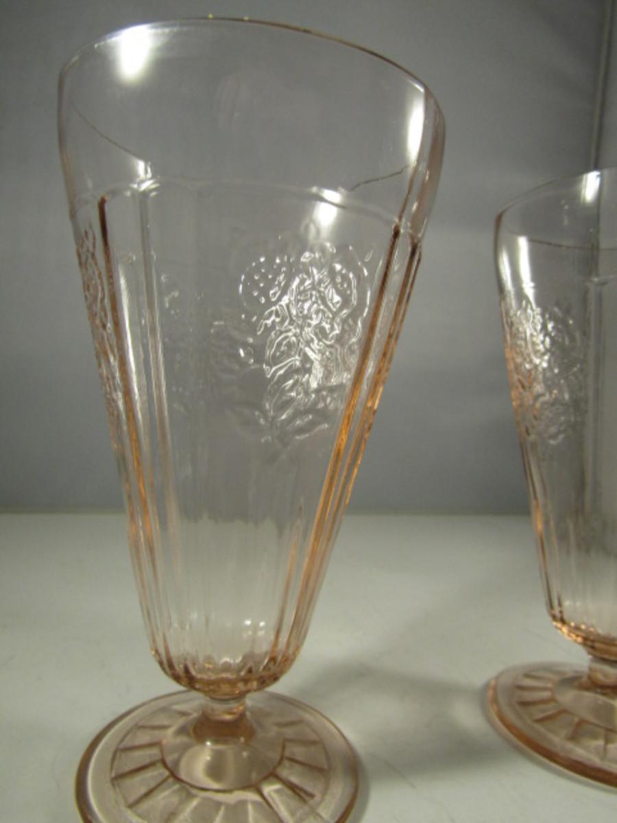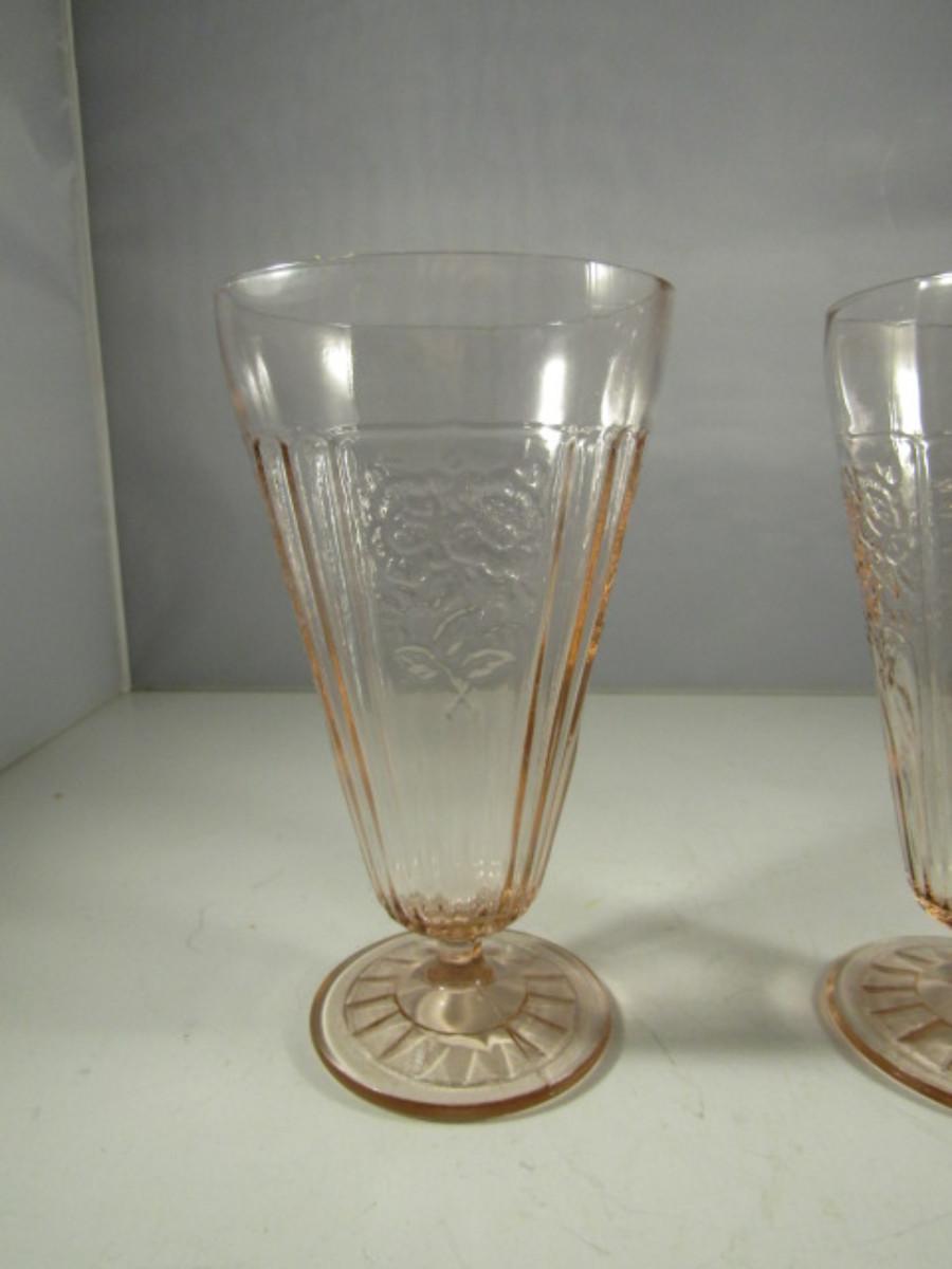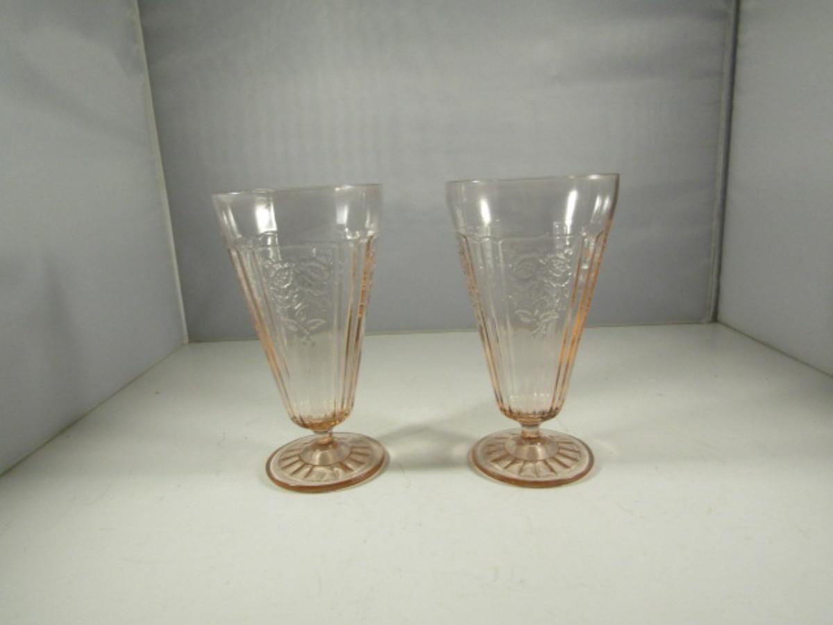 Vintage Pair of Mayfair Pink Depression Glass Footed Iced Tea Glasses- Open Roses Pattern