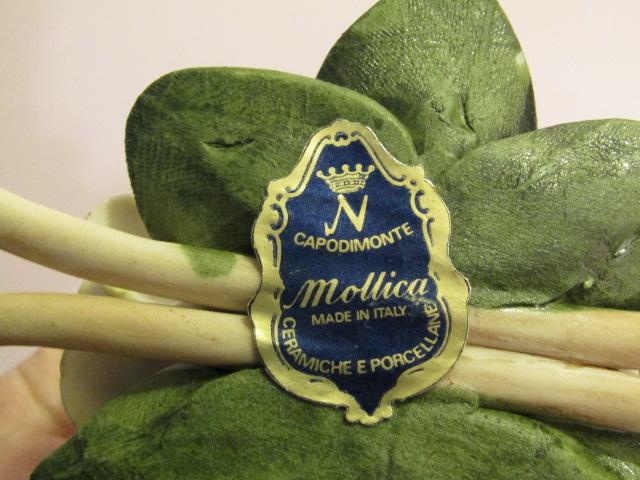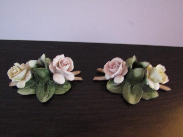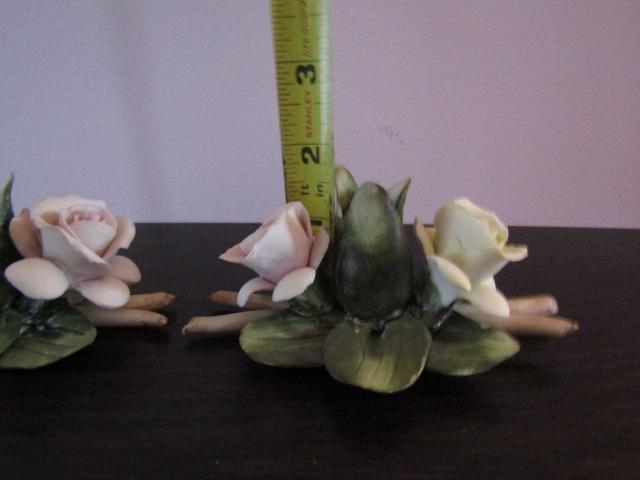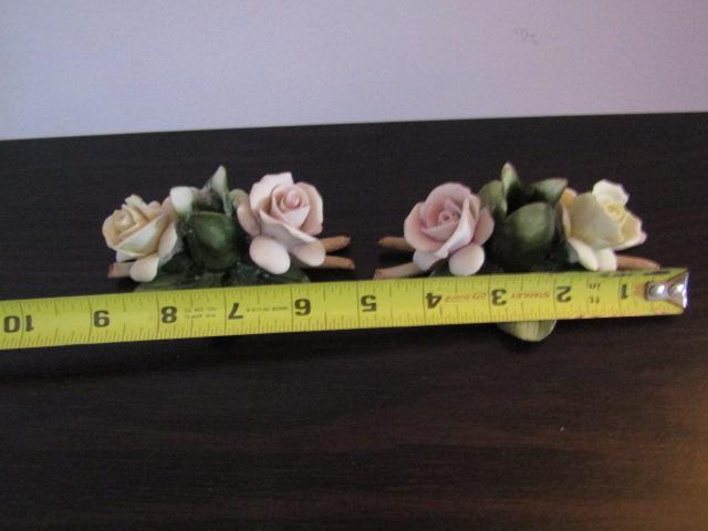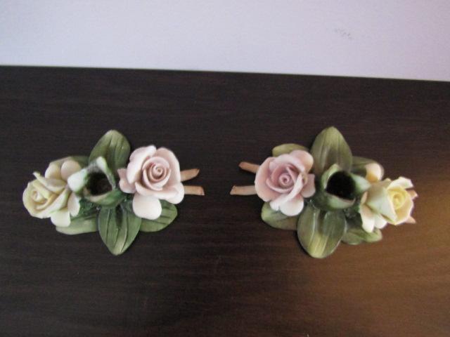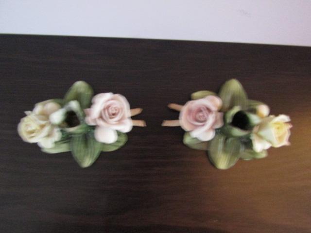 Vintage Pair of Mollica Capodimonte Porcelain Rose Candle Holders