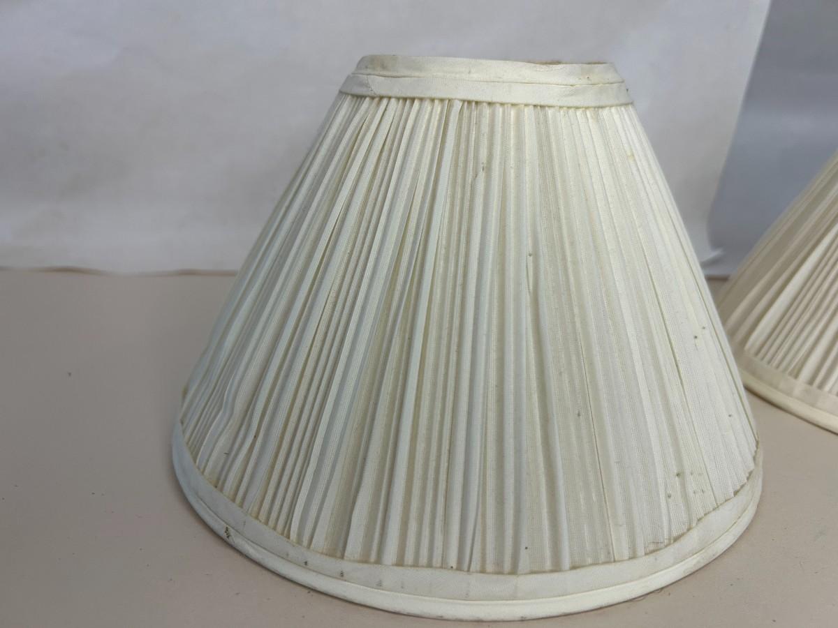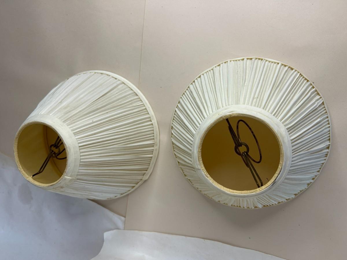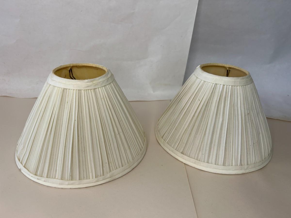 Vintage Pair of Mushroom Fabric Pleat Empire Clip Lamp Shades