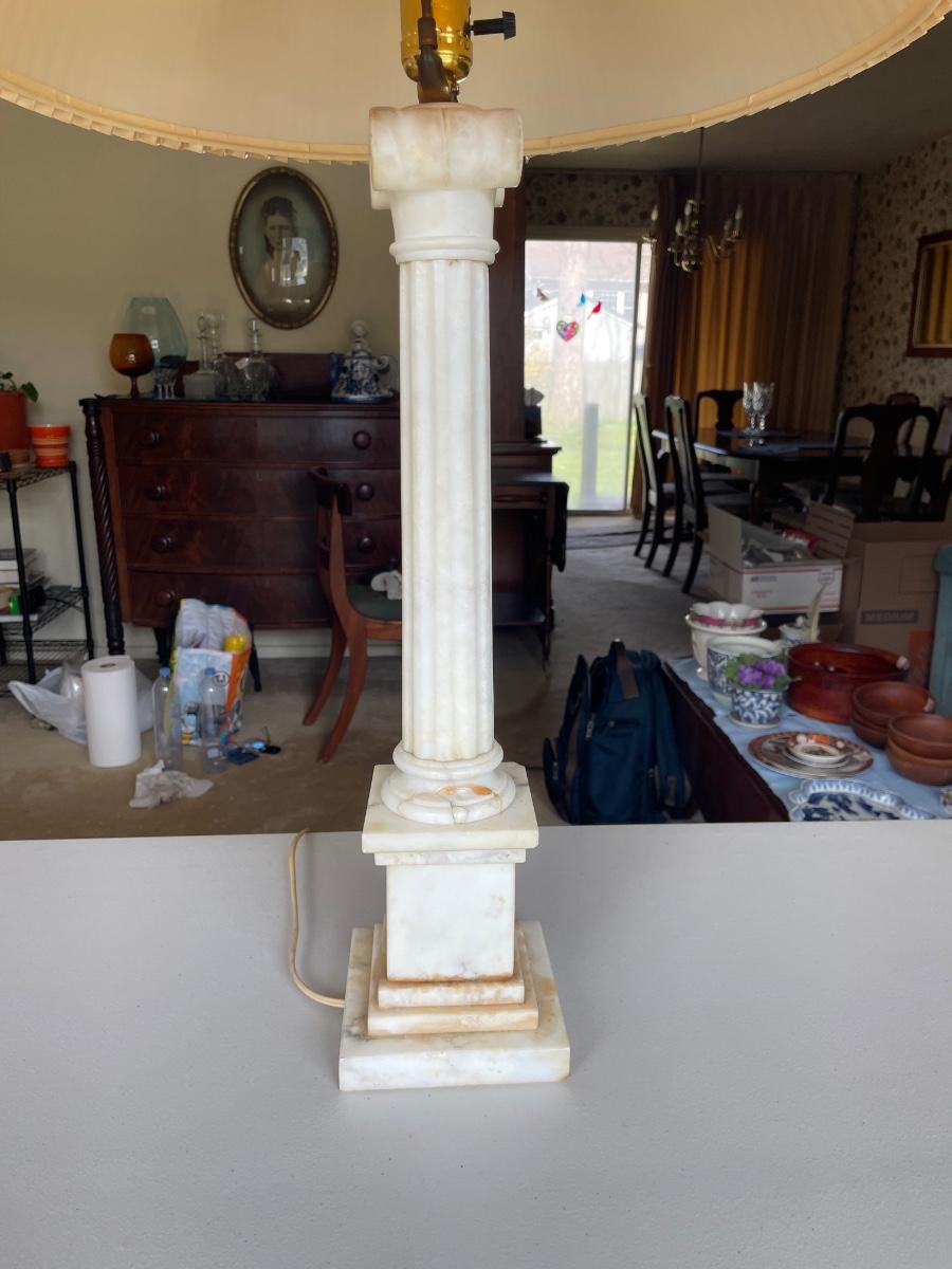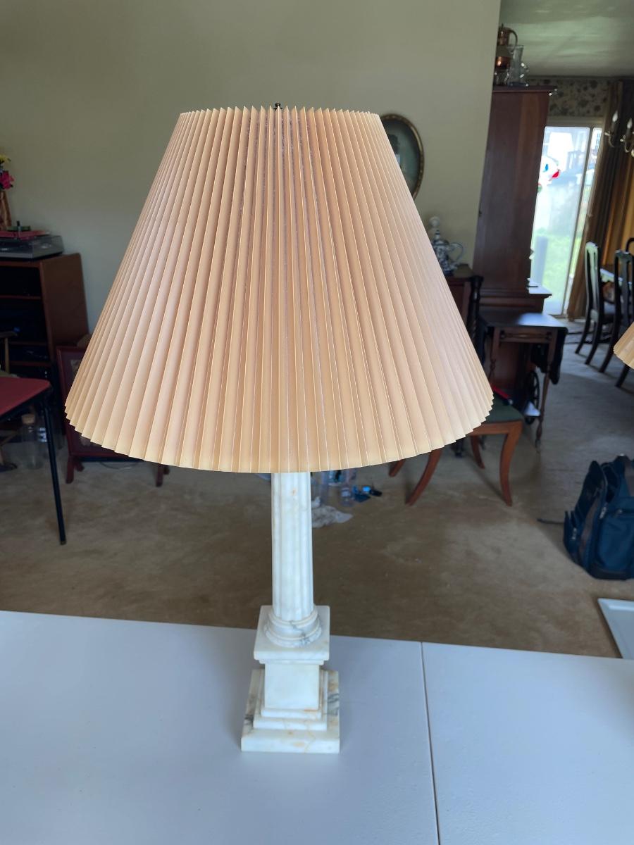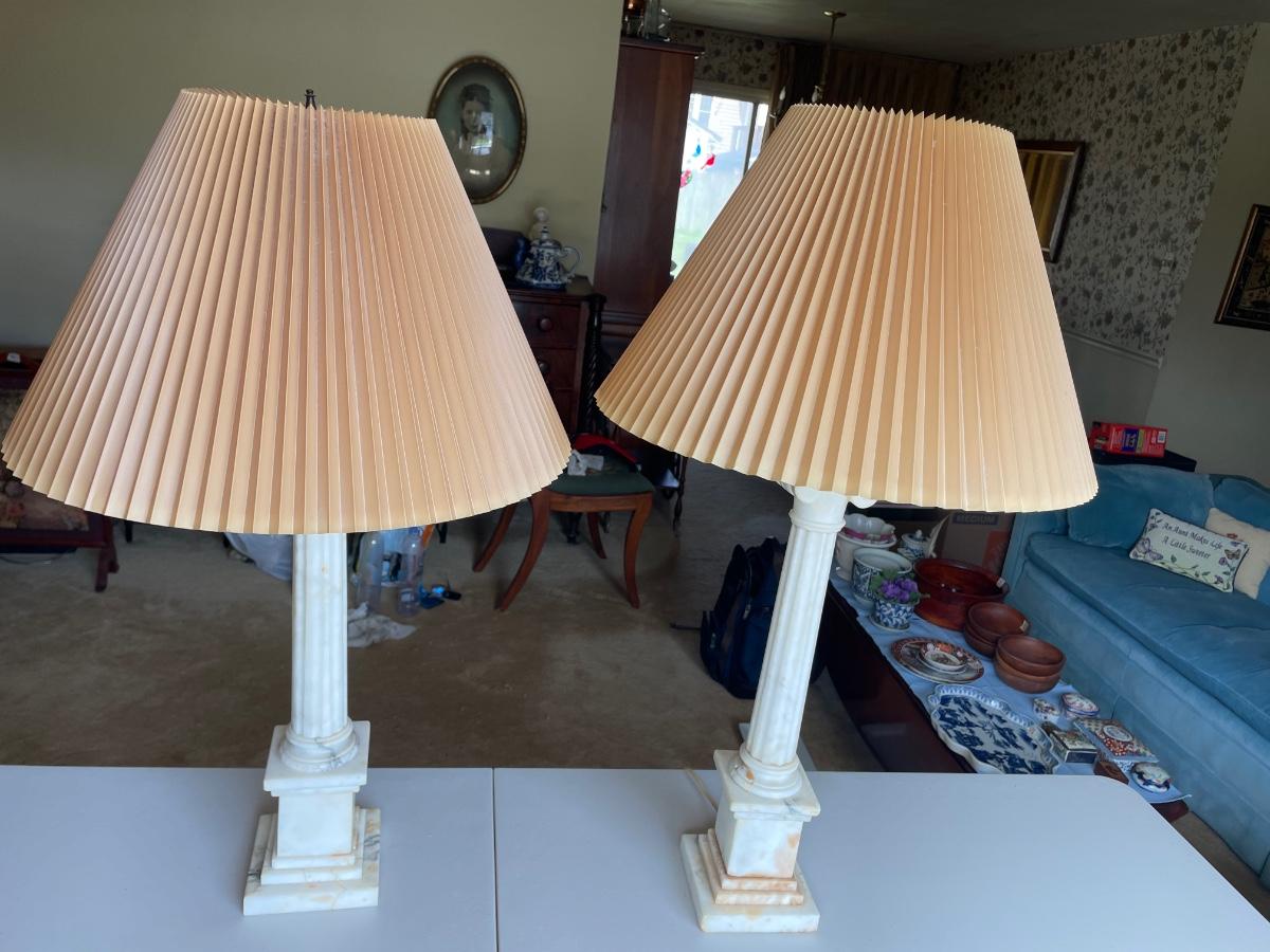 Heavy. One has a minor repair as seen in picture. Each lamp its self measures 5 x 5 x 20