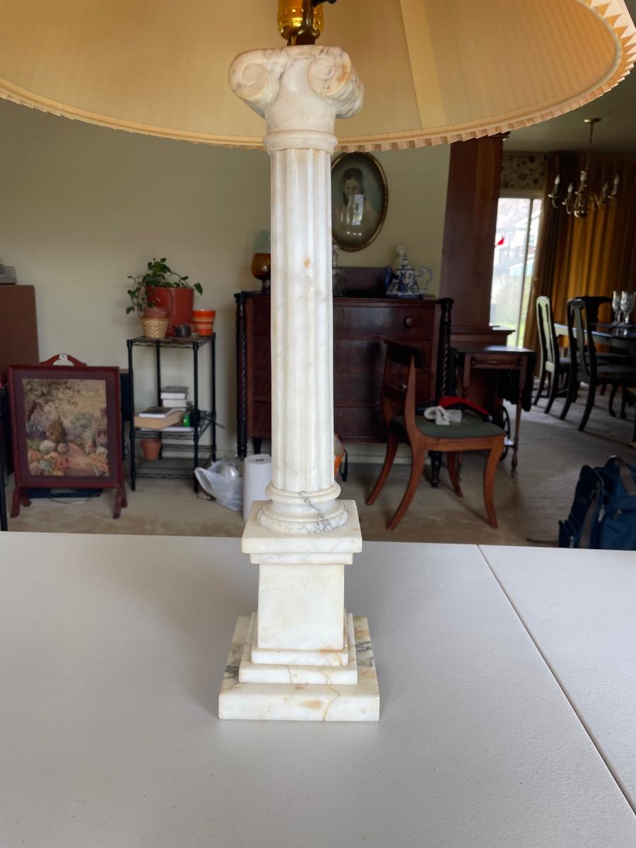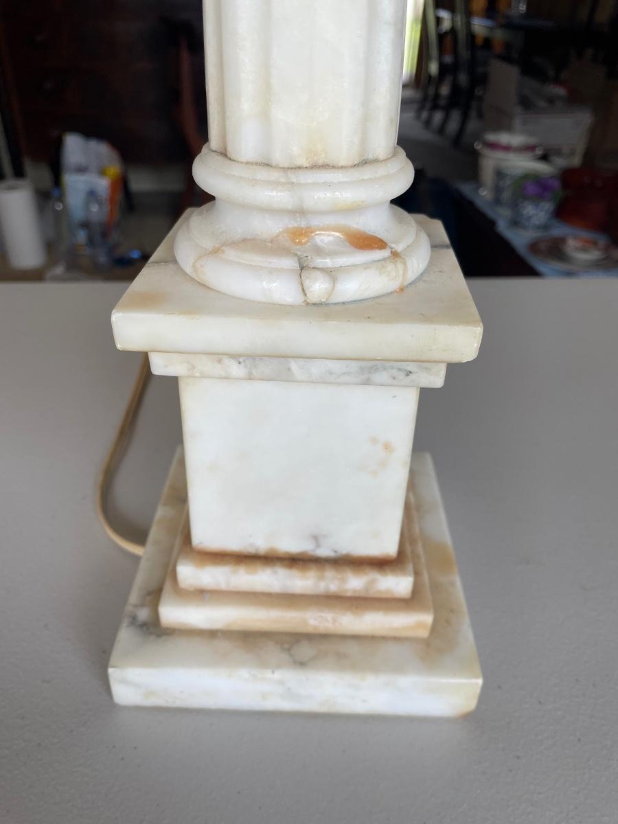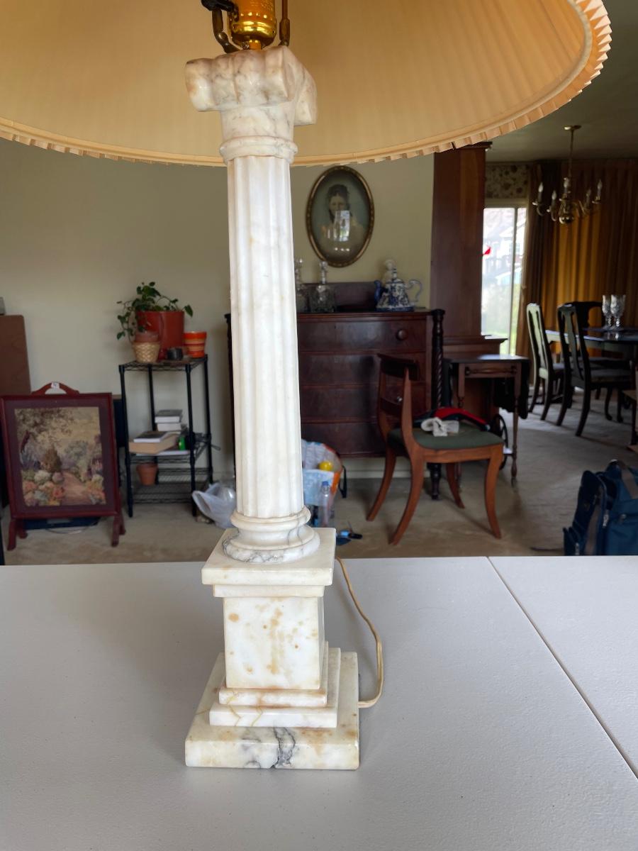 Heavy. One has a minor repair as seen in picture. Each lamp its self measures 5 x 5 x 20