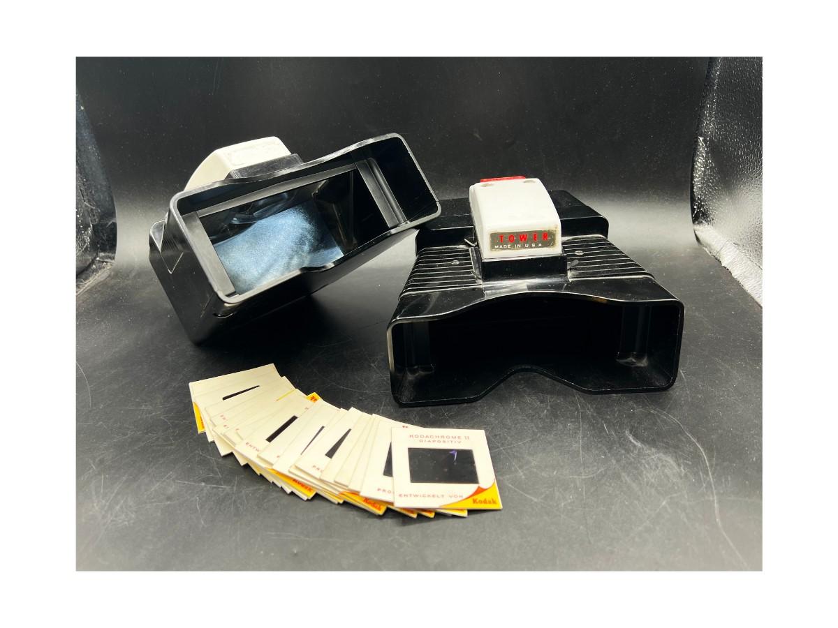 Vintage Pair of Pan Ram Tower Backlight 35mm Portable Photo Slide Viewer & Kodak 35mm Photo Slides