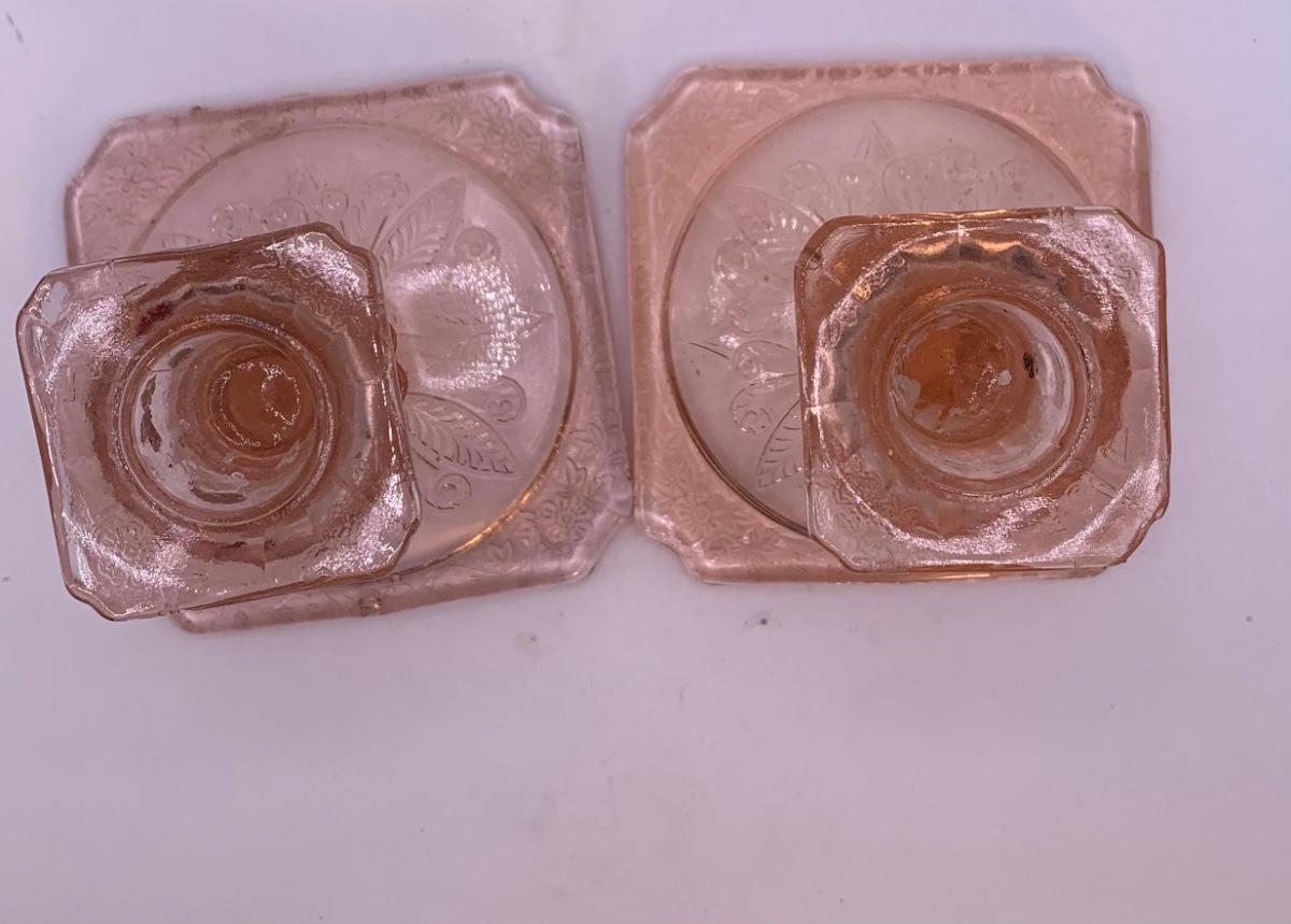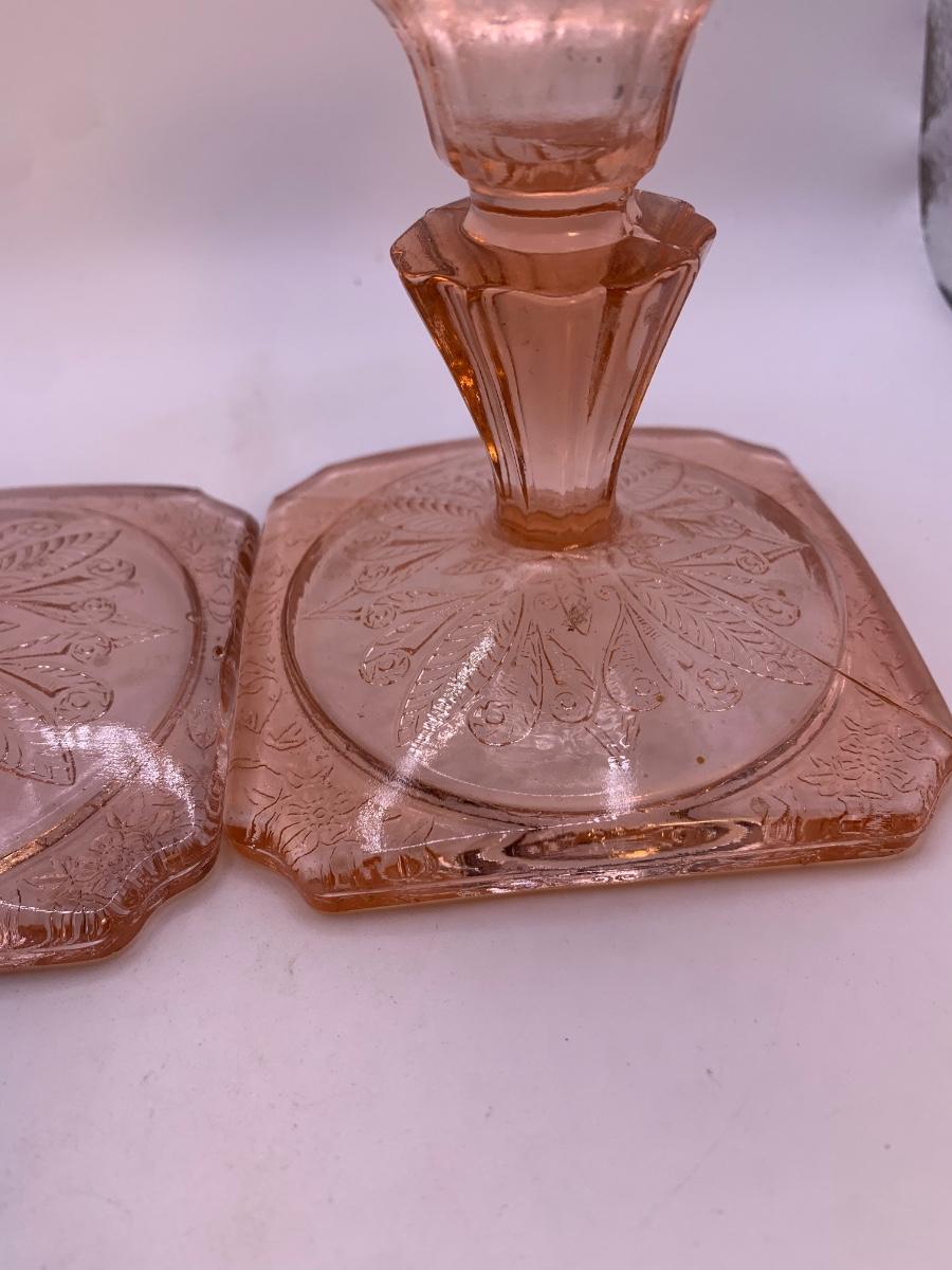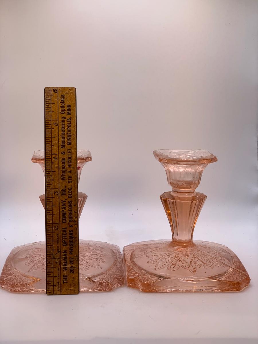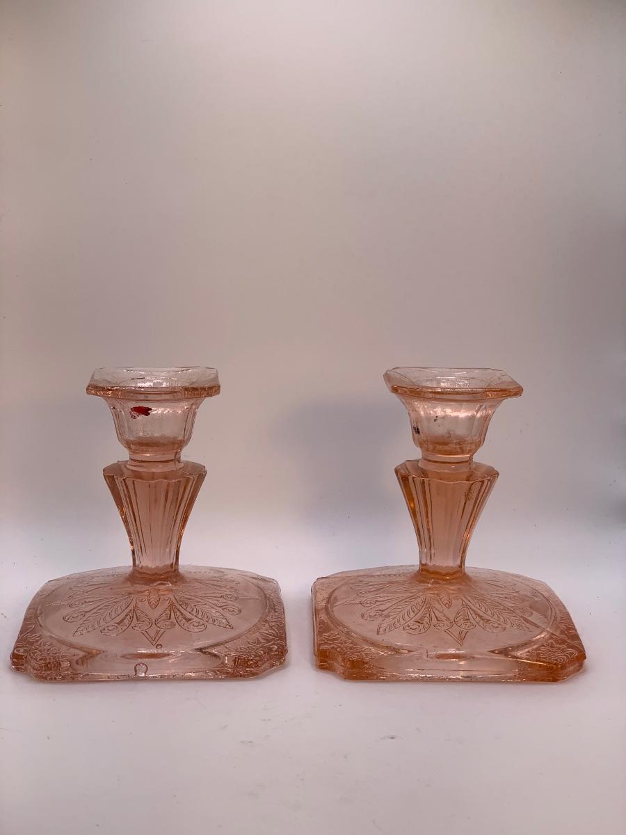 Vintage Pair of Pink Depression Glass Candle Stick Holders
