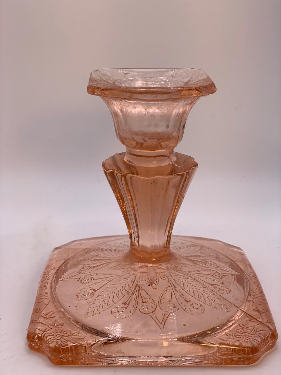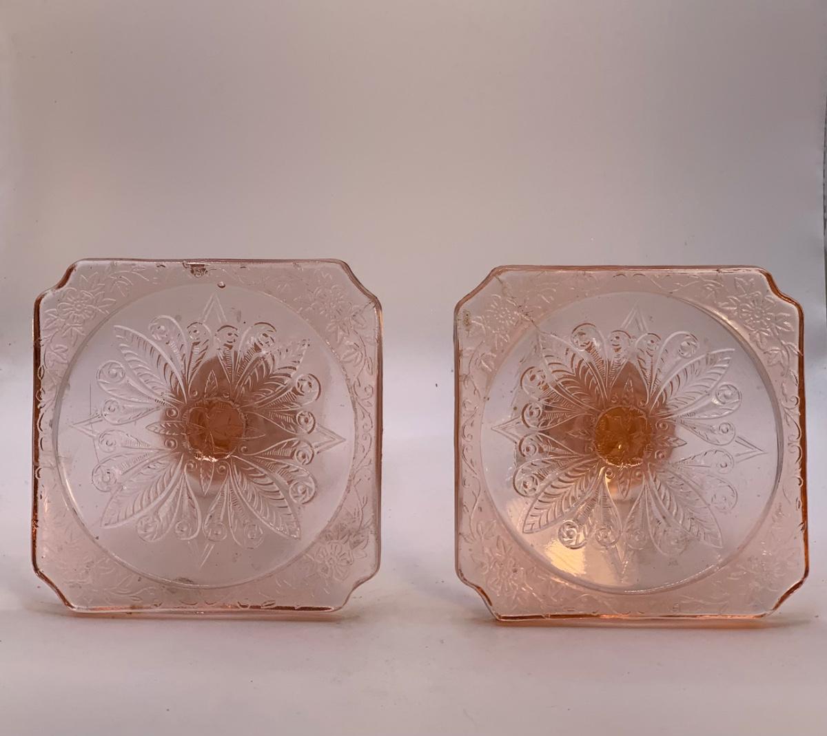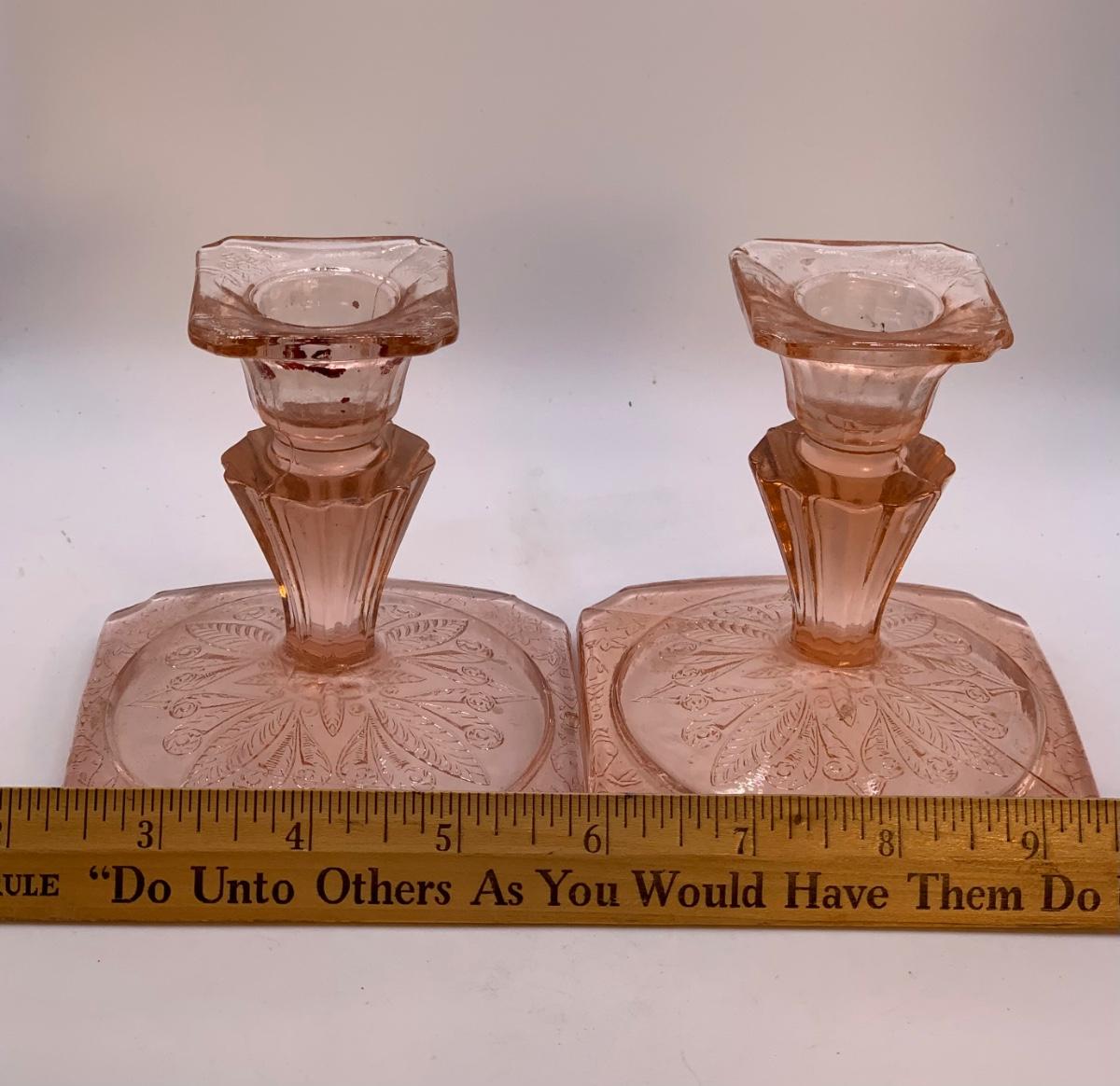 Vintage Pair of Pink Depression Glass Candle Stick Holders