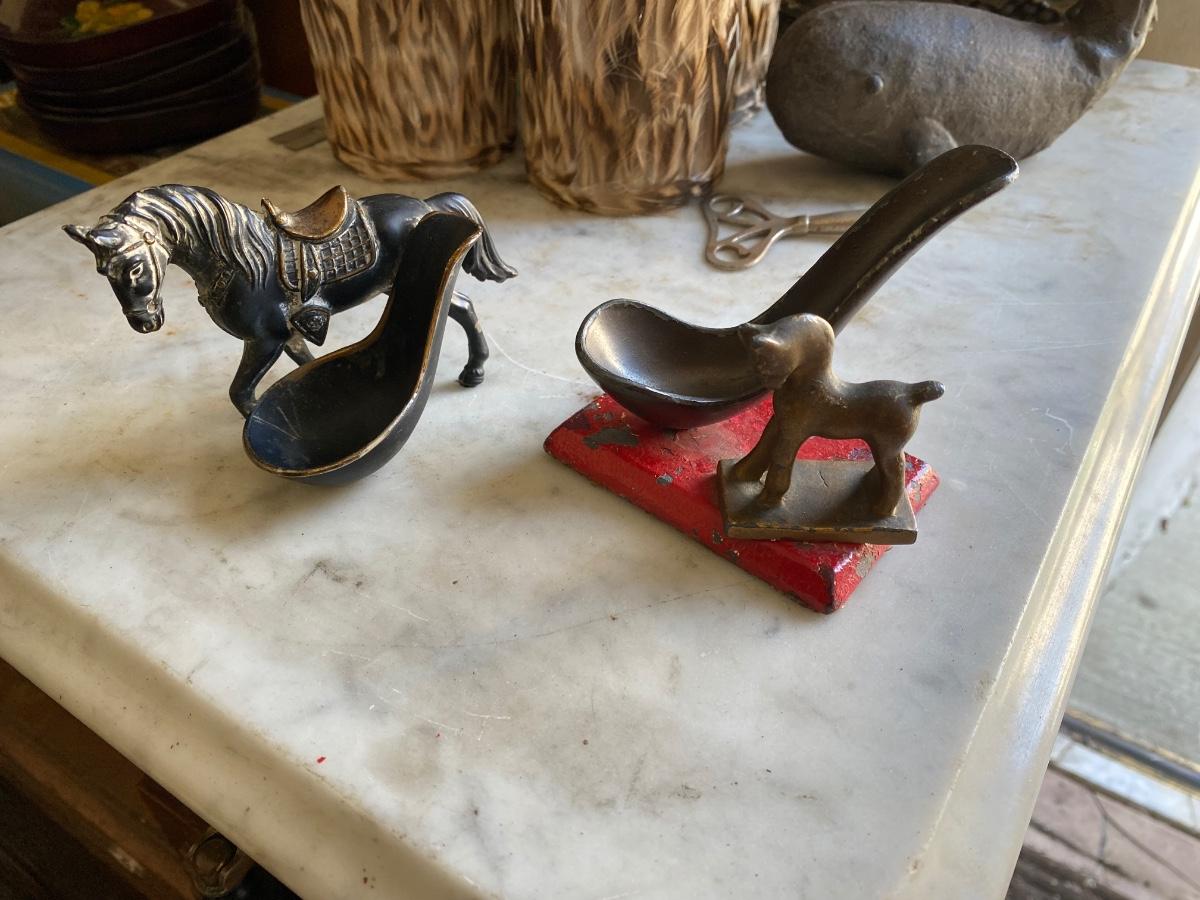 Pair of vintage pipe holders. Metal. Cute as they are, no pipes needed!