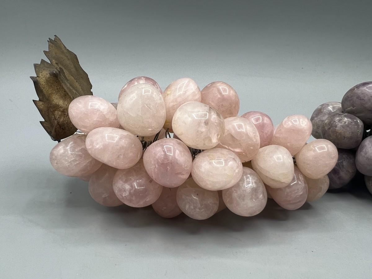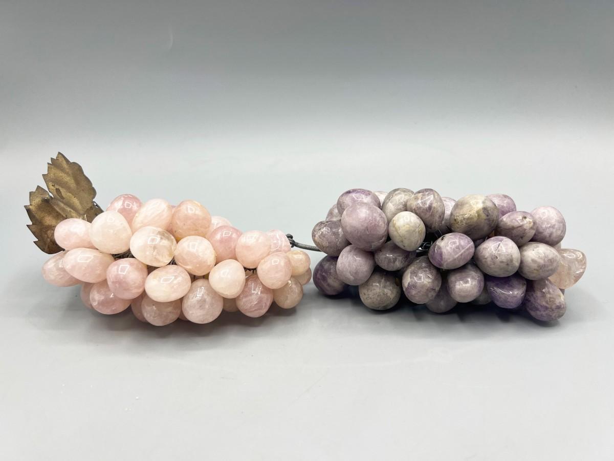 Vintage Pair of Polished Pink Quartz Amethyst Bunch of Grapes