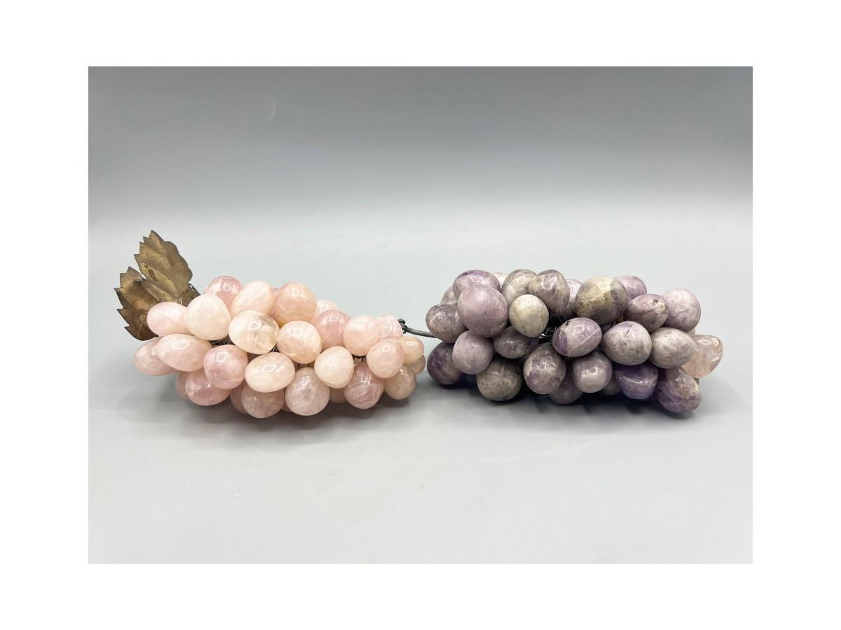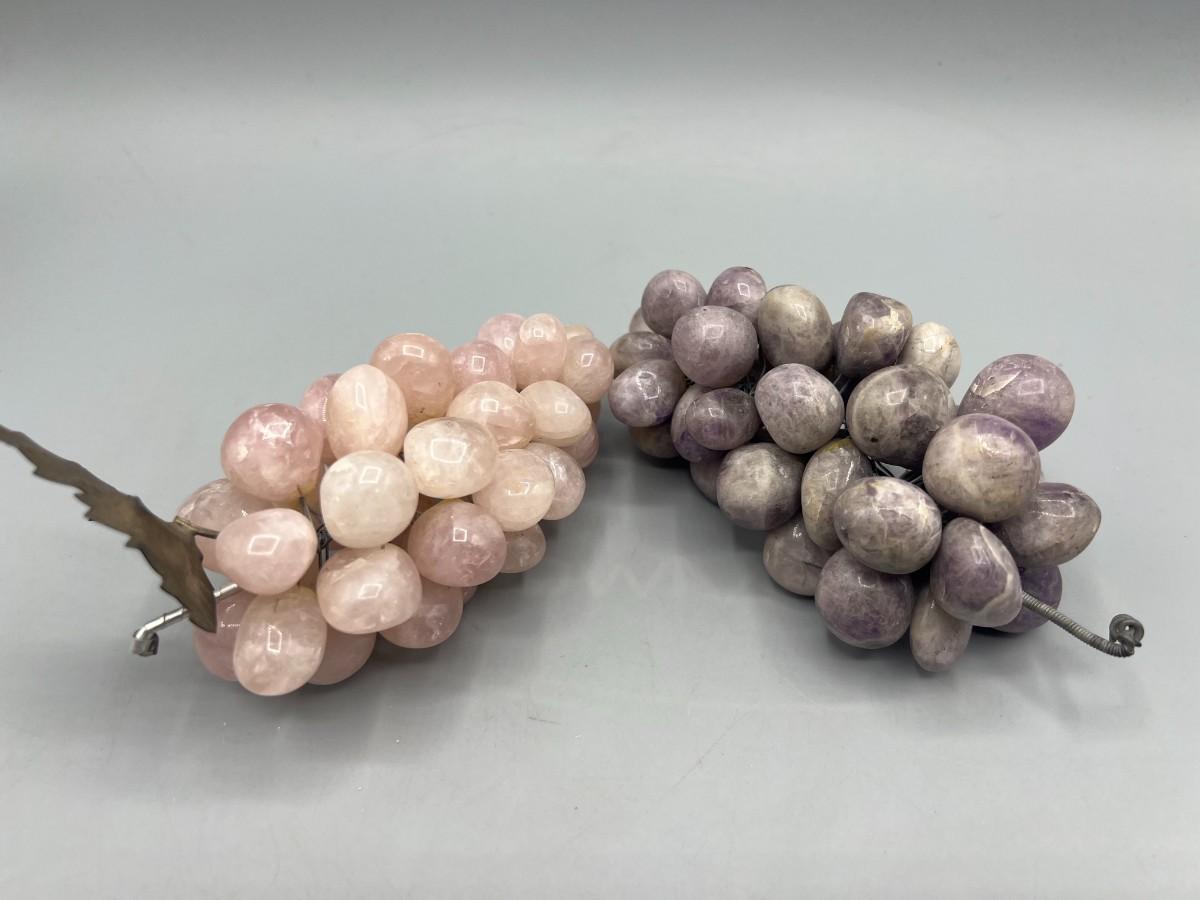 Vintage Pair of Polished Pink Quartz Amethyst Bunch of Grapes. In good condition. About 5" sizes.