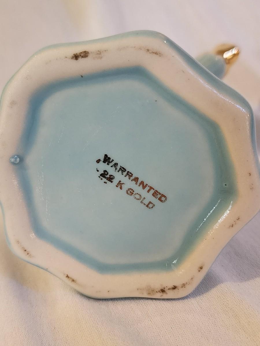 Vintage Pair of Robin's Egg Blue Vases with 22 kt Gold Painted Decoration