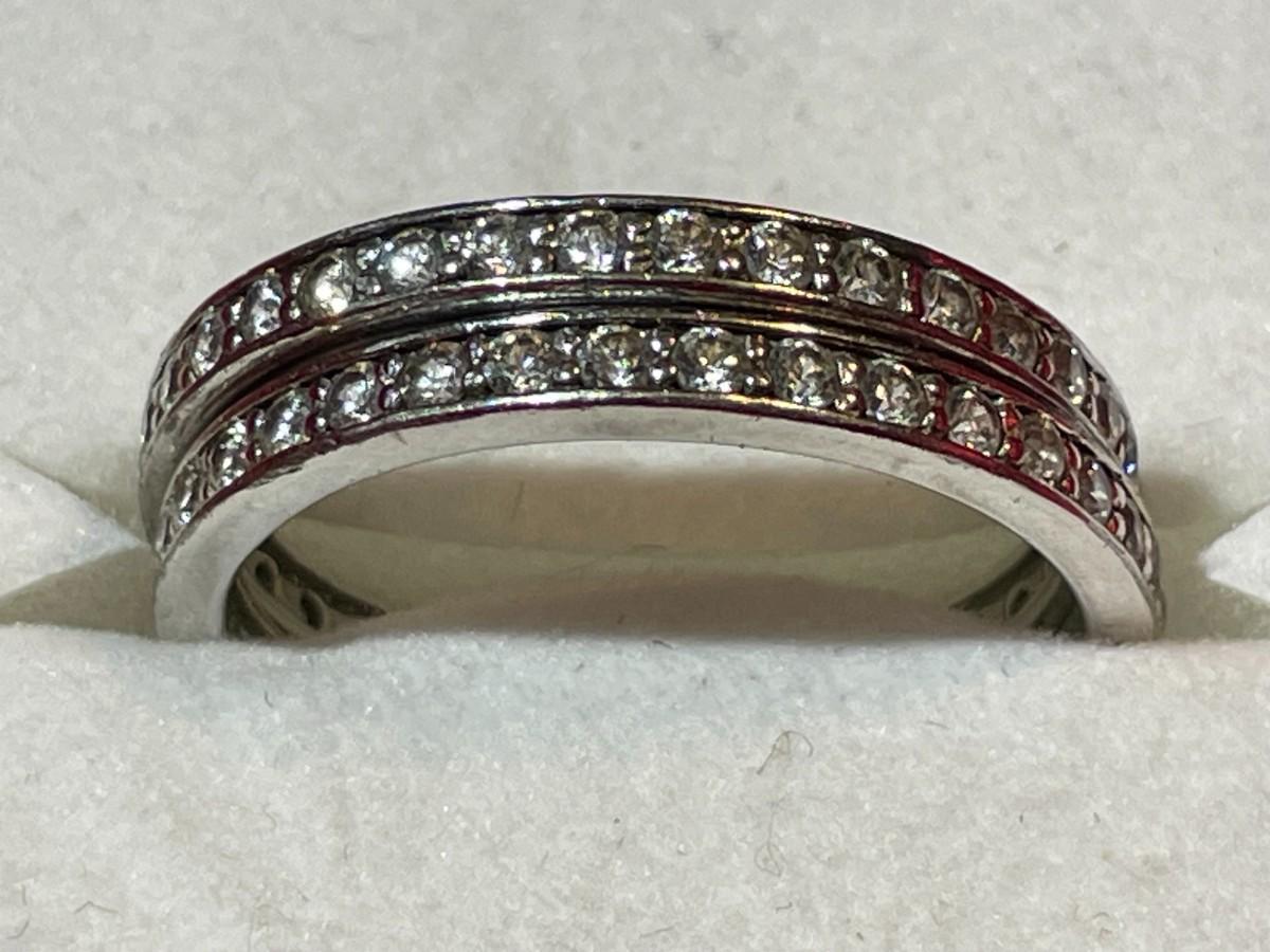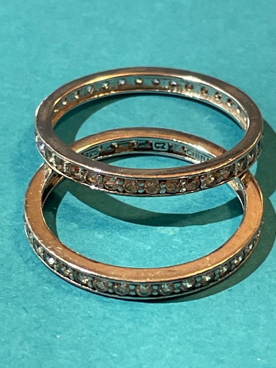 Vintage Pair of Sterling Silver CZ Wedding Bands Size-10 in Very Good Preowned Condition. $5 Domestic Shipping.