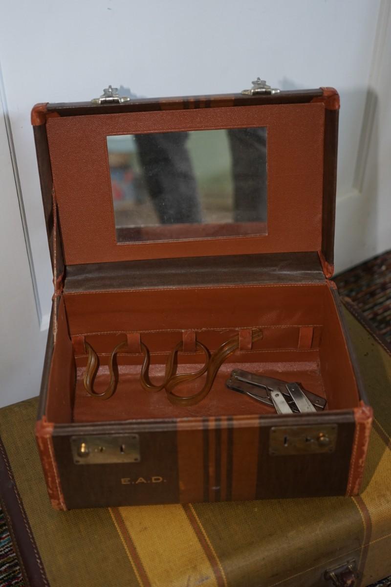 The interiors are fair. some wear and discolorations to the silk fabric pockets. photos coming soon,