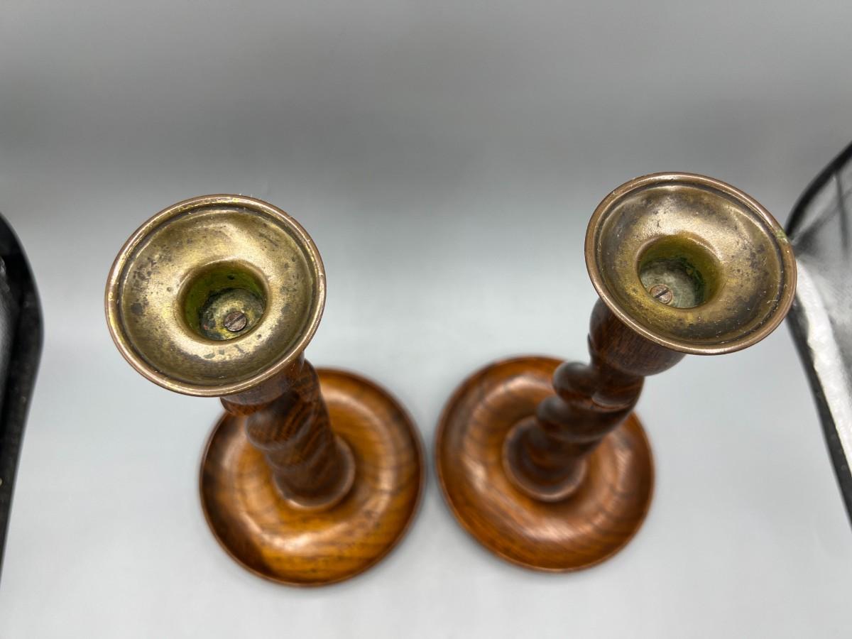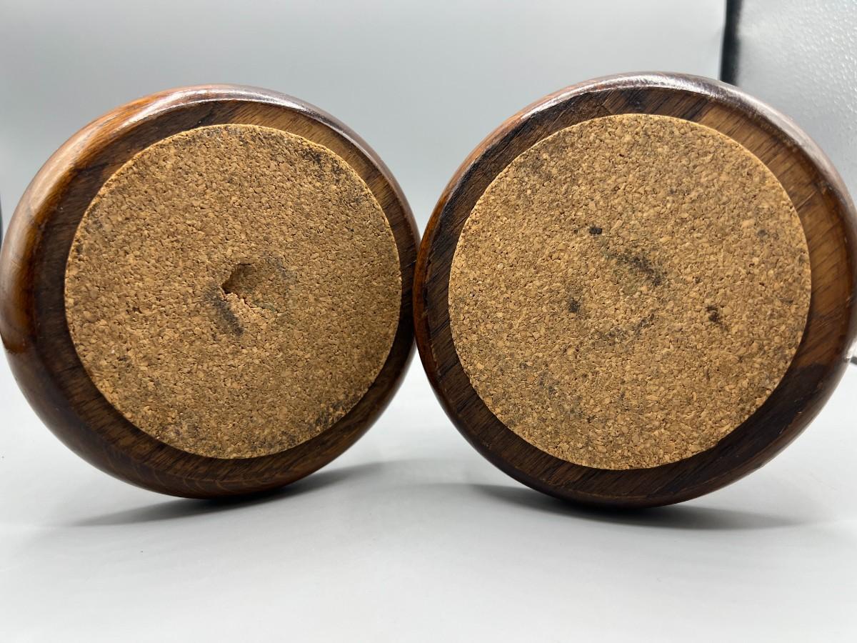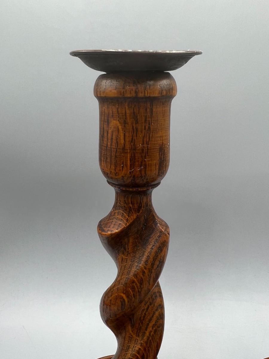 Vintage Pair of Twisting Turned Wood Candlestick Holders