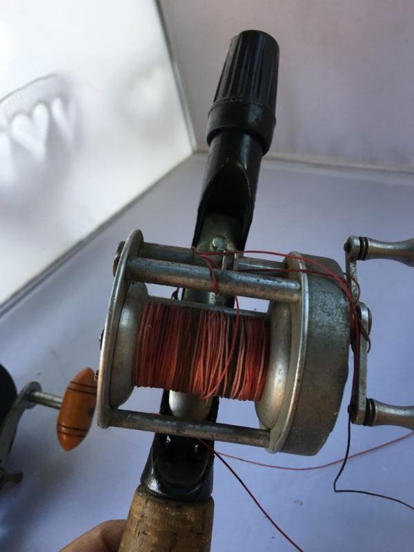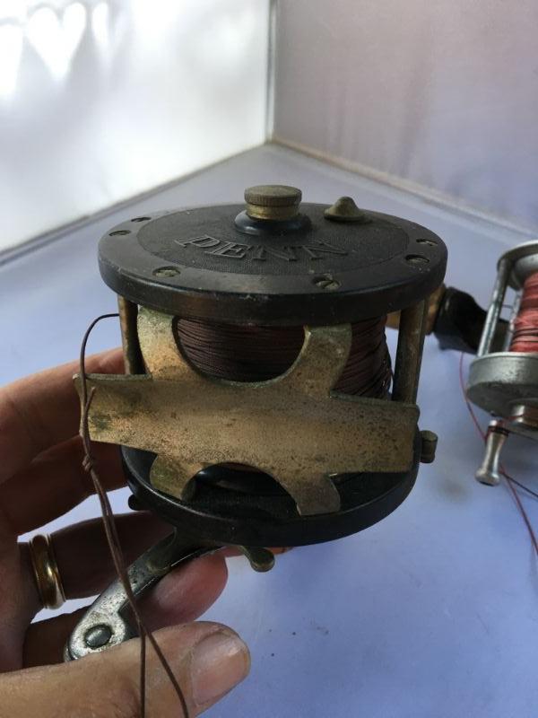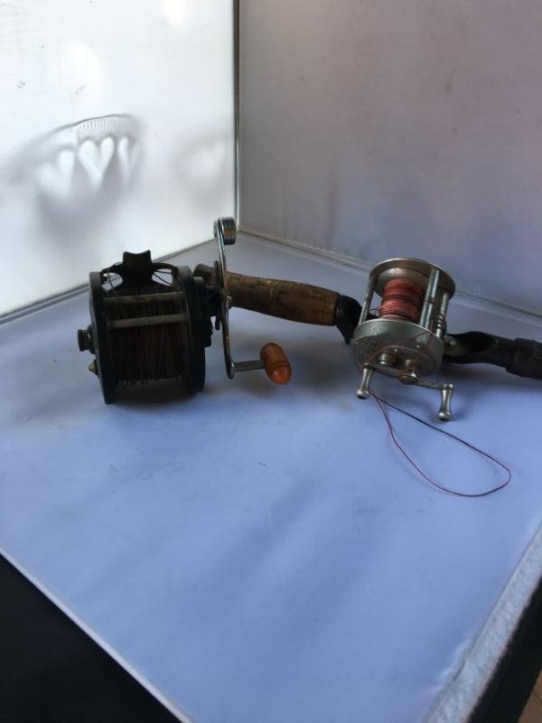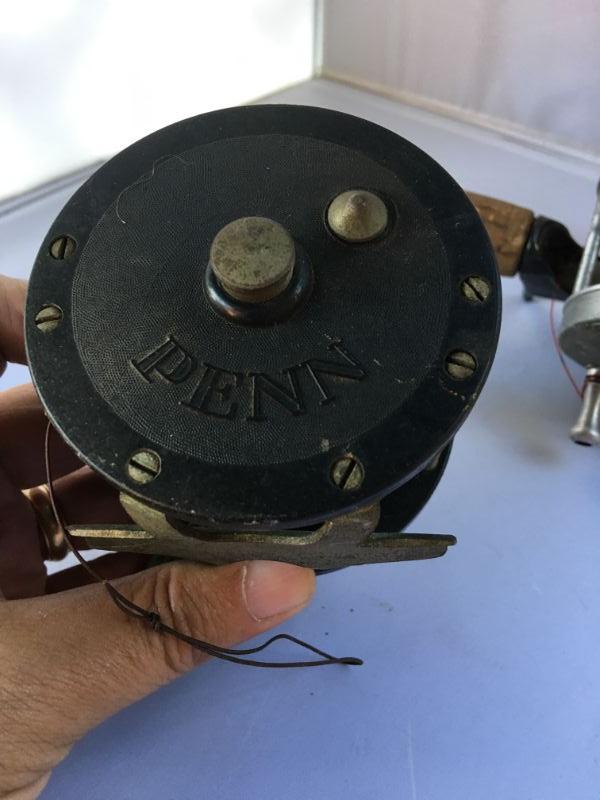 The black one is made by Penn No. 85 and the smaller one with rod was made by Langley/Lakecast model.