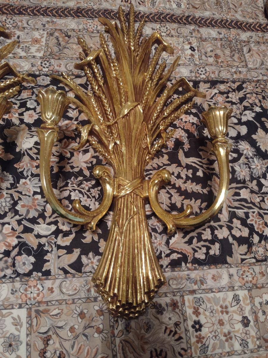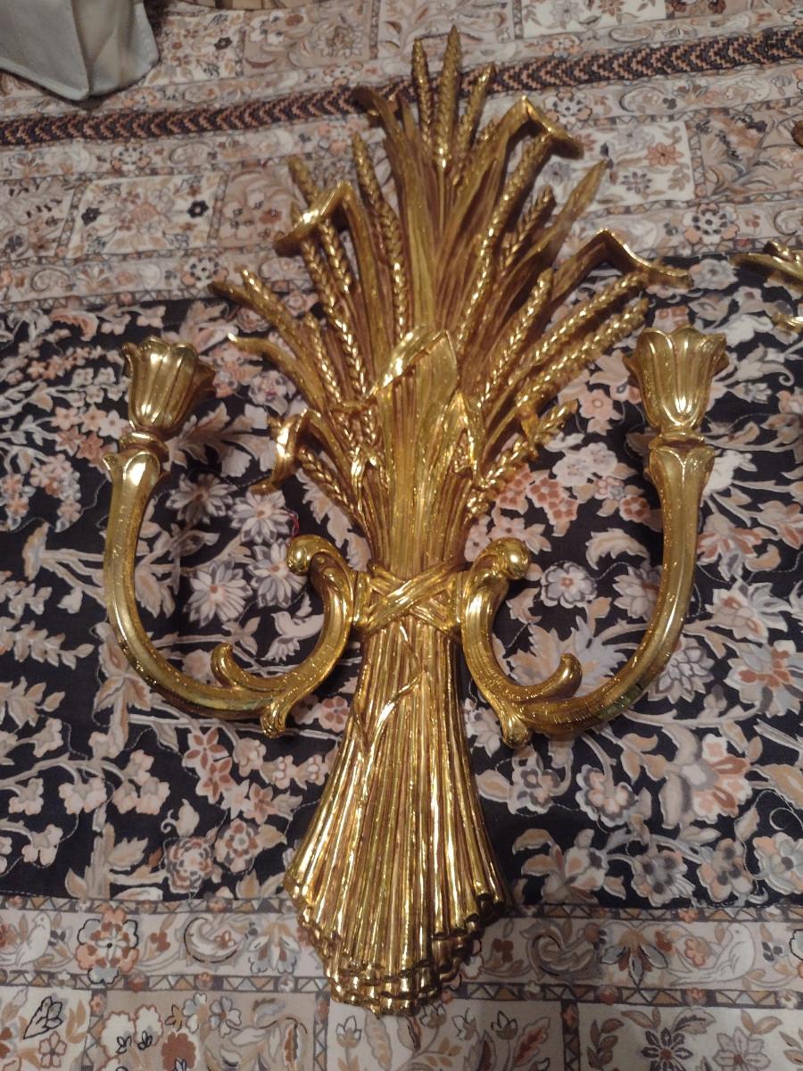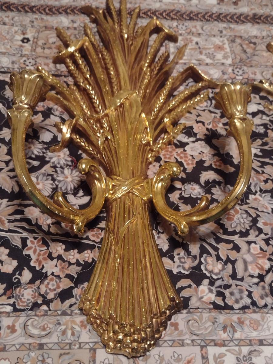 Vintage Pair of Wall Mount Candle Holders. Metal with gilt finish. Bundled wheat design.
