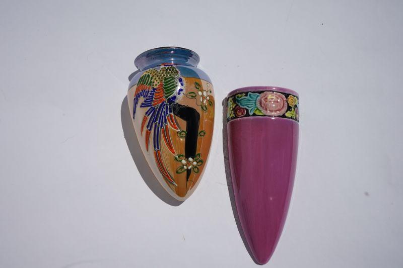VINTAGE PAIR OF WALL POCKETS JAPANESE LUSTRE AND MAJOLICA