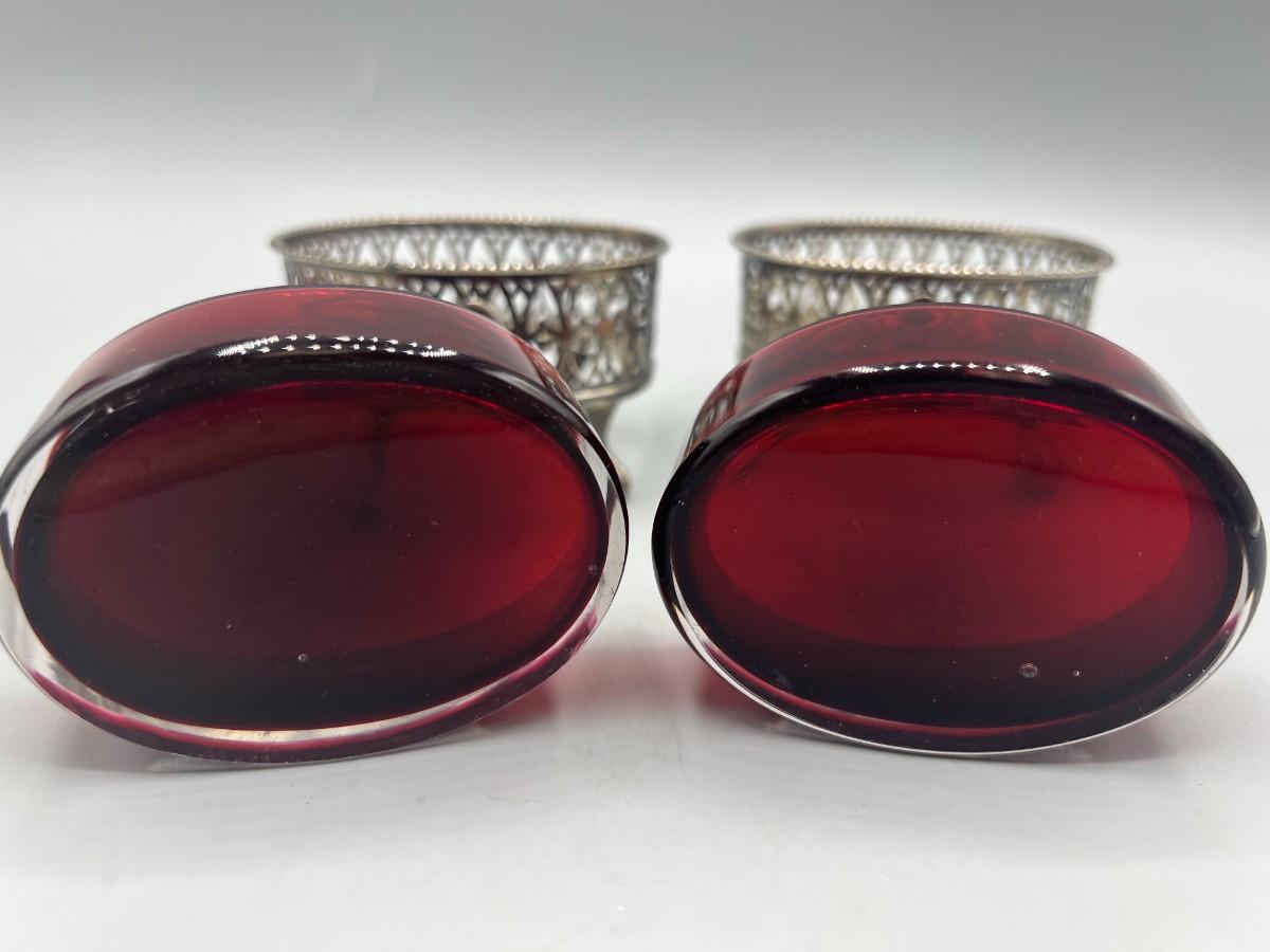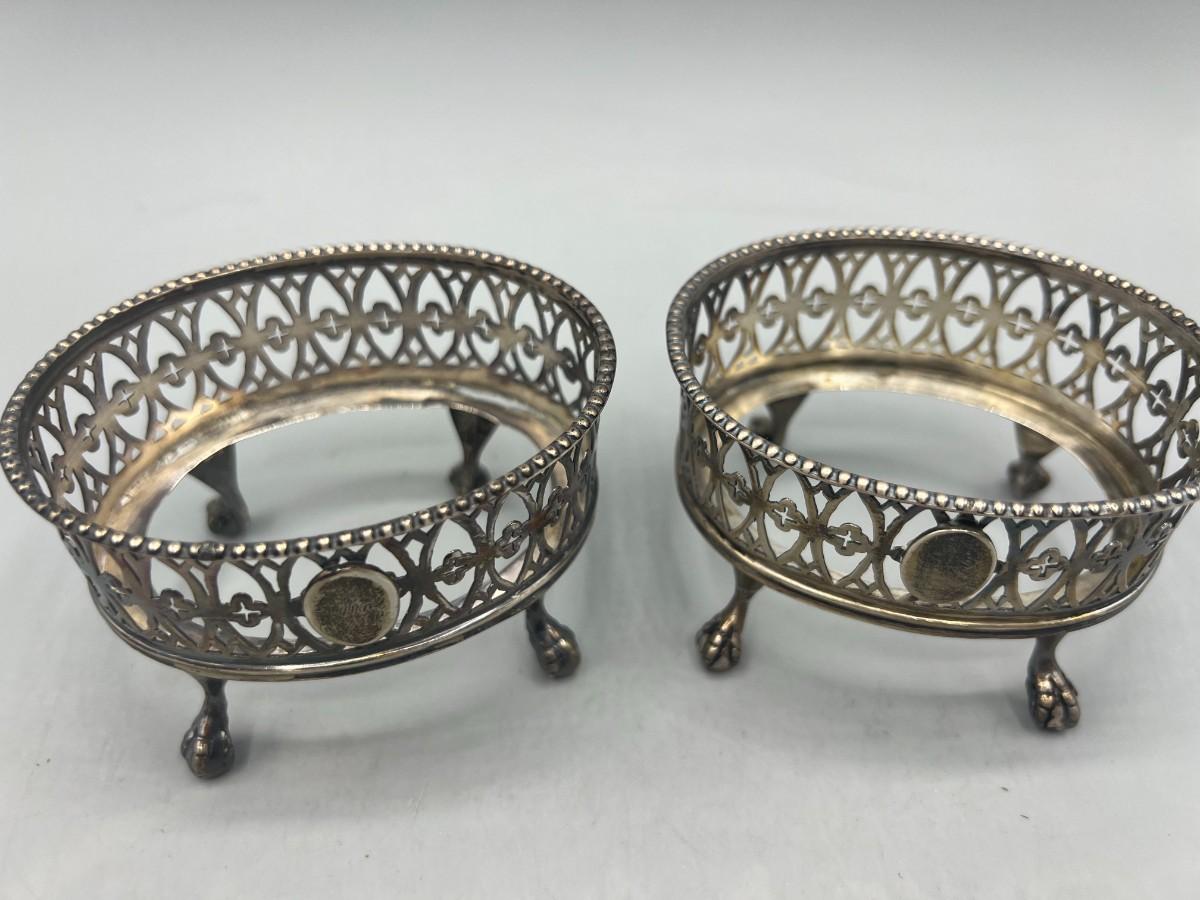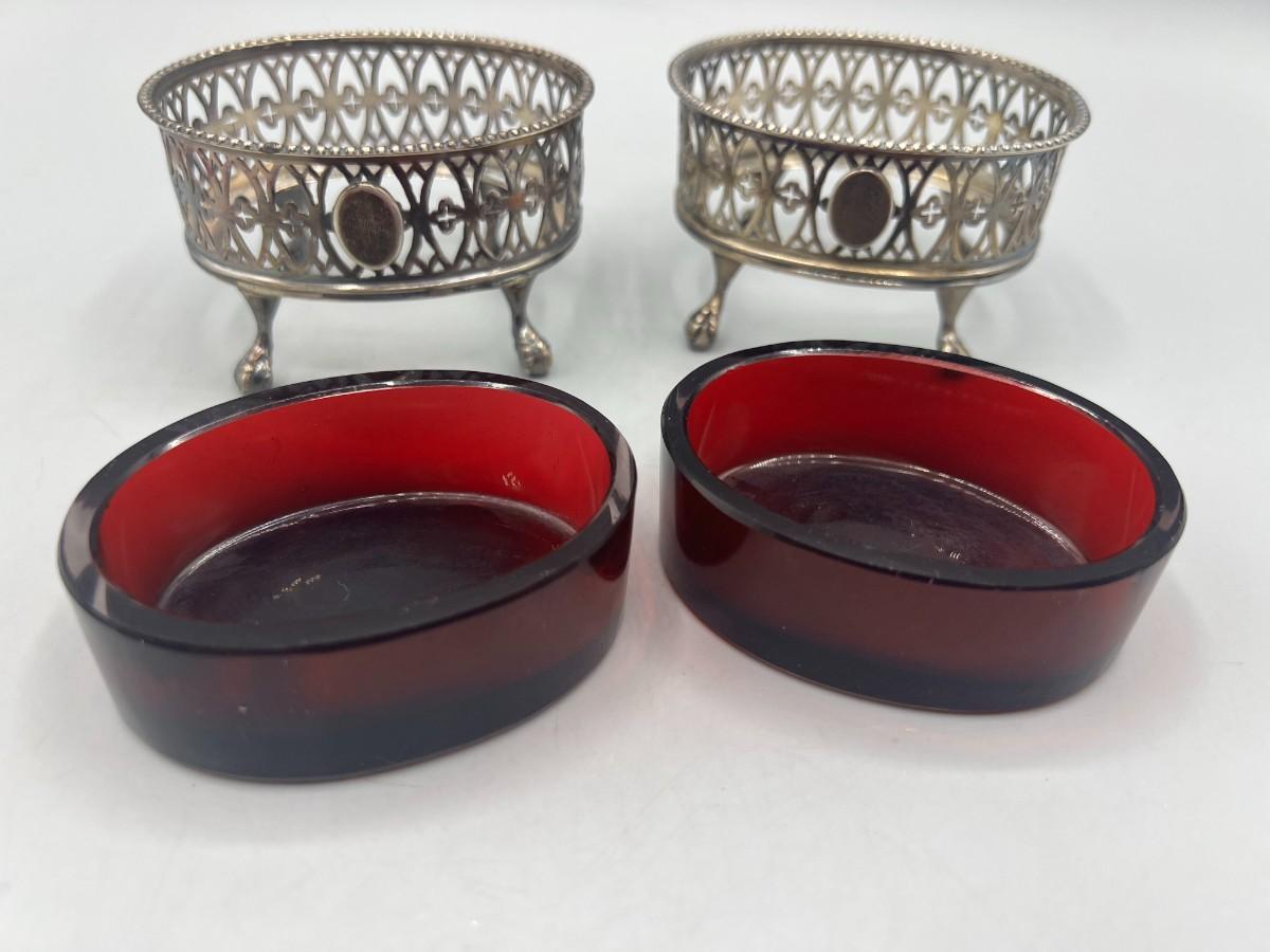 Vintage Pair of West & Son Silver Plated Victorian Style Open Salt & Sugar Bowls with Serving Spoons