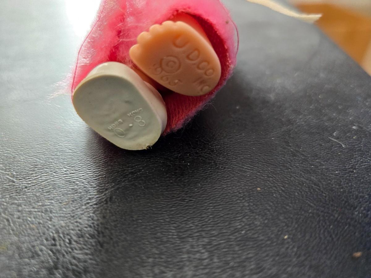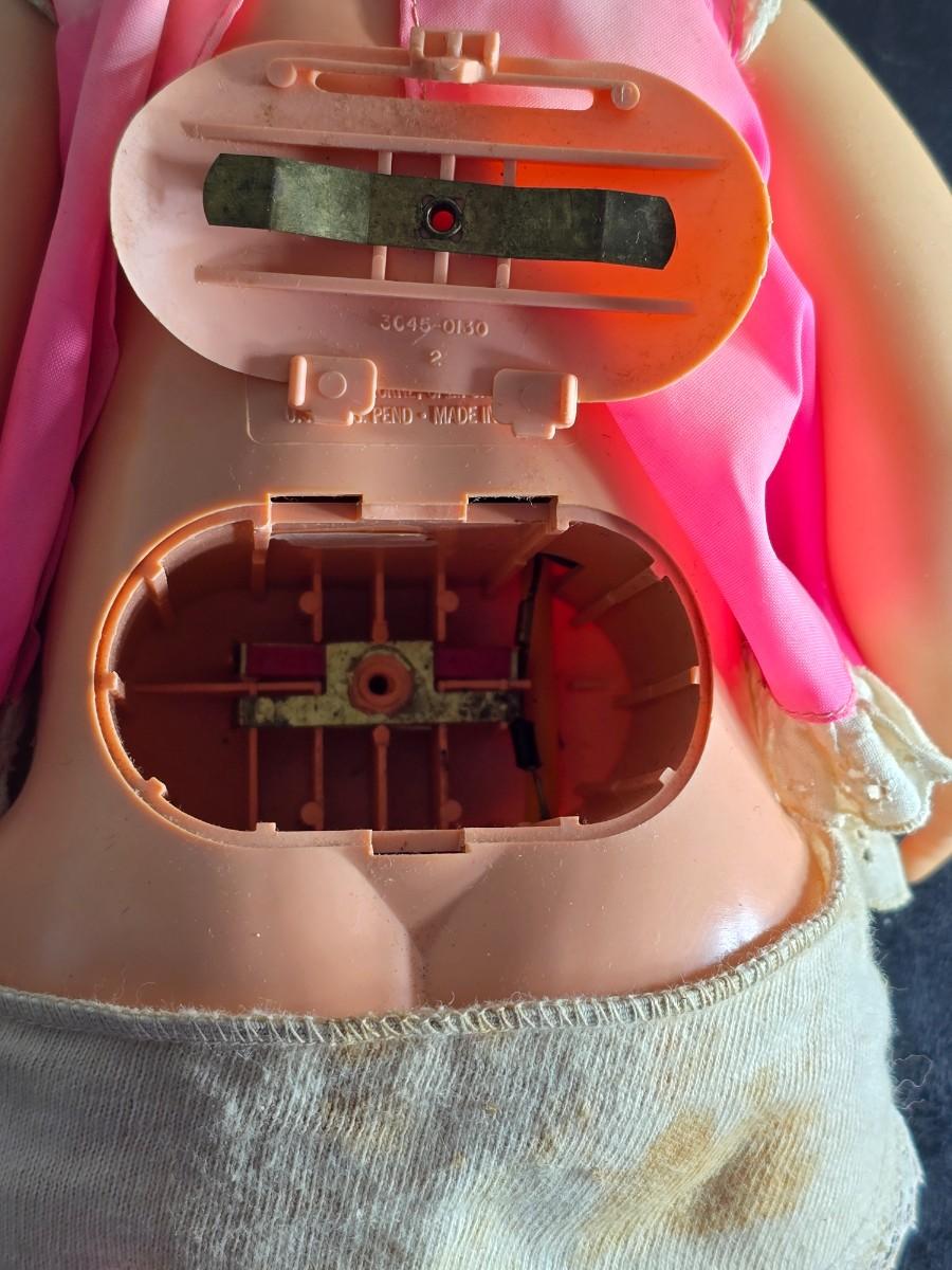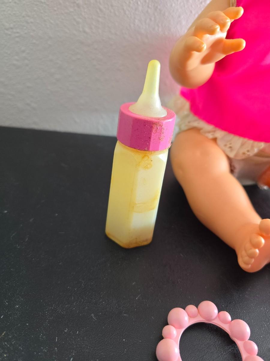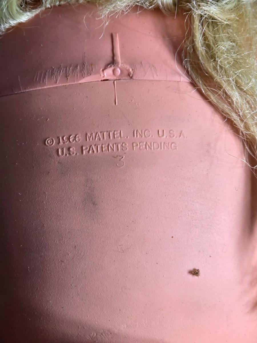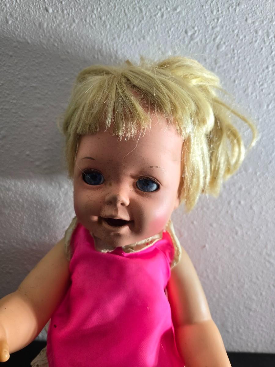 Vintage pajama bag doll with a 1966 Mattel Cheerful Tearful Baby Doll with some accessories