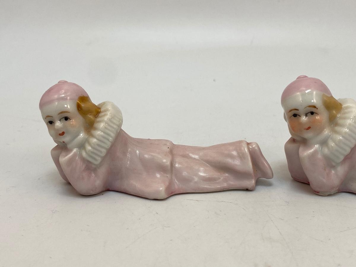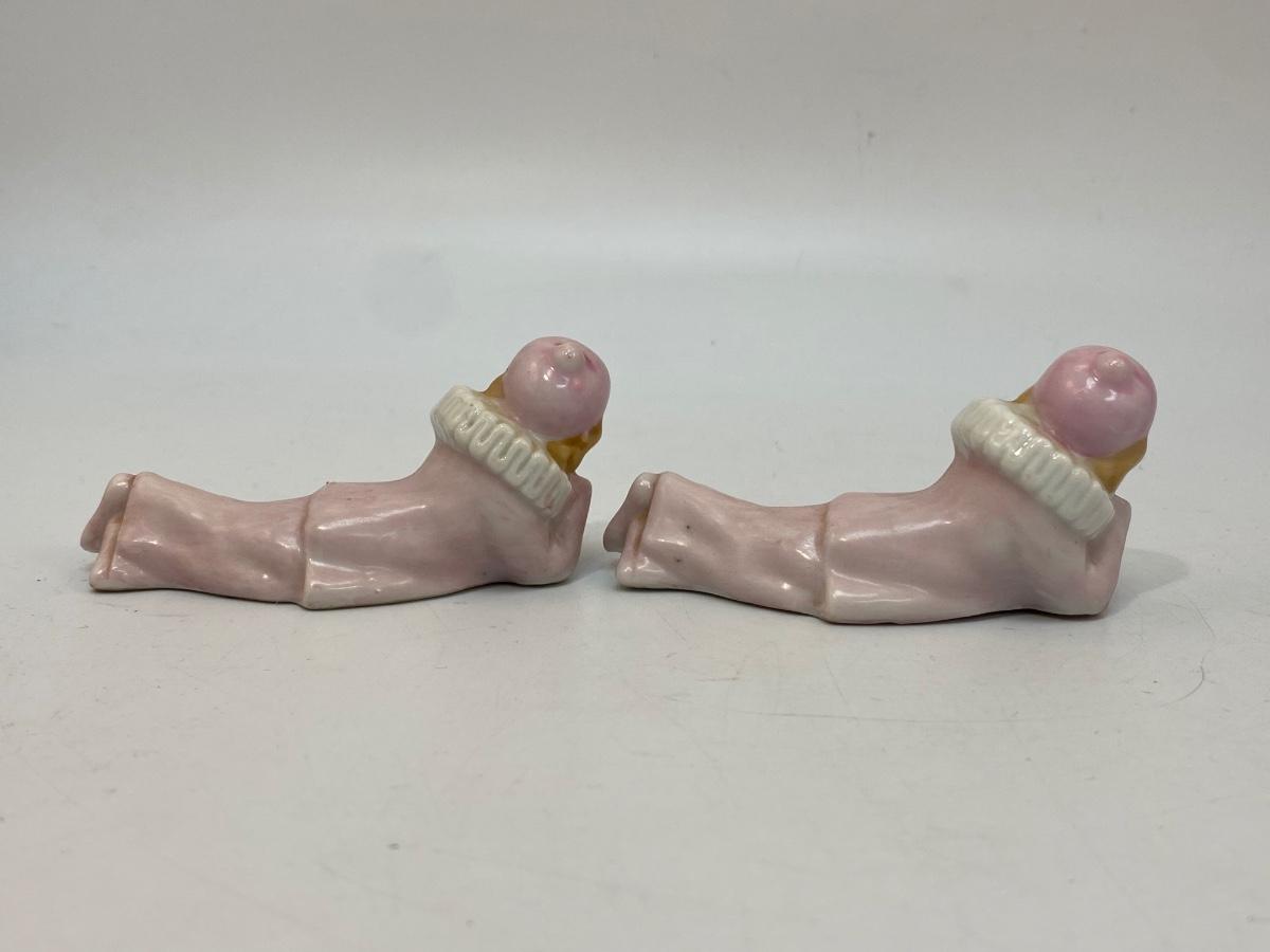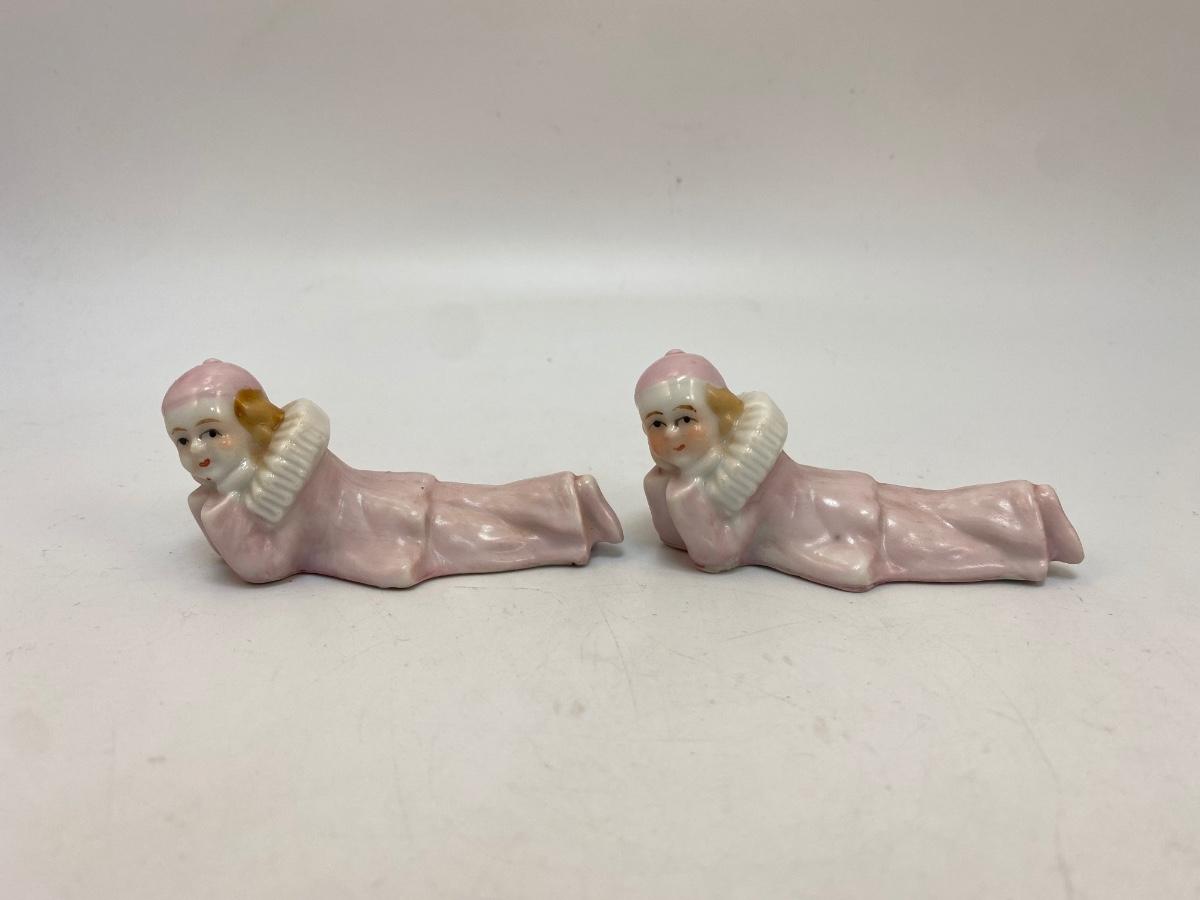 Vintage Pale Pink Harlequin Clown Figurines Laying Down Japan