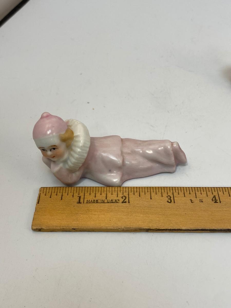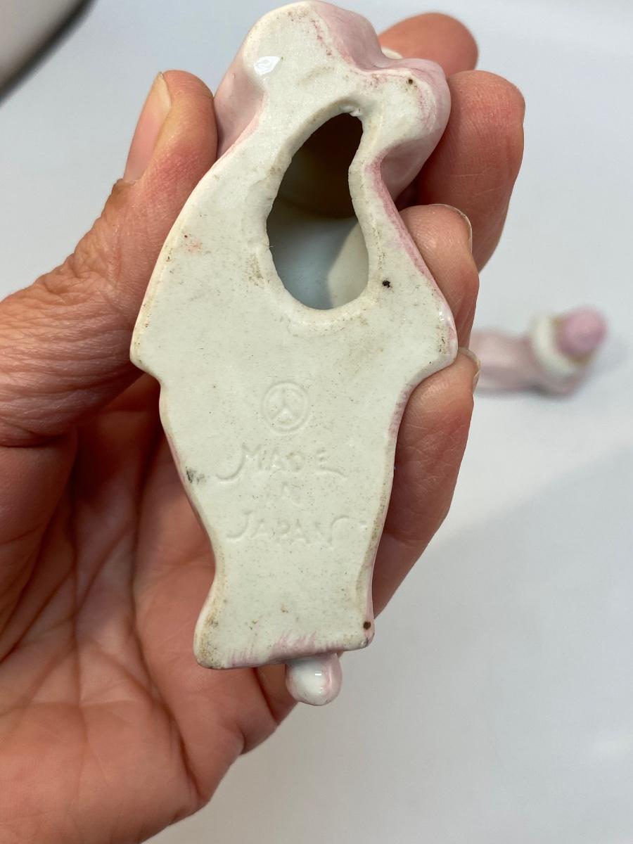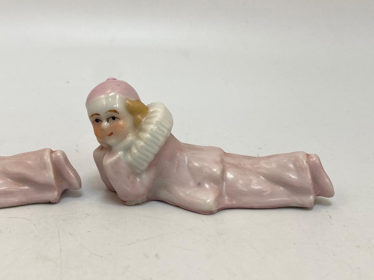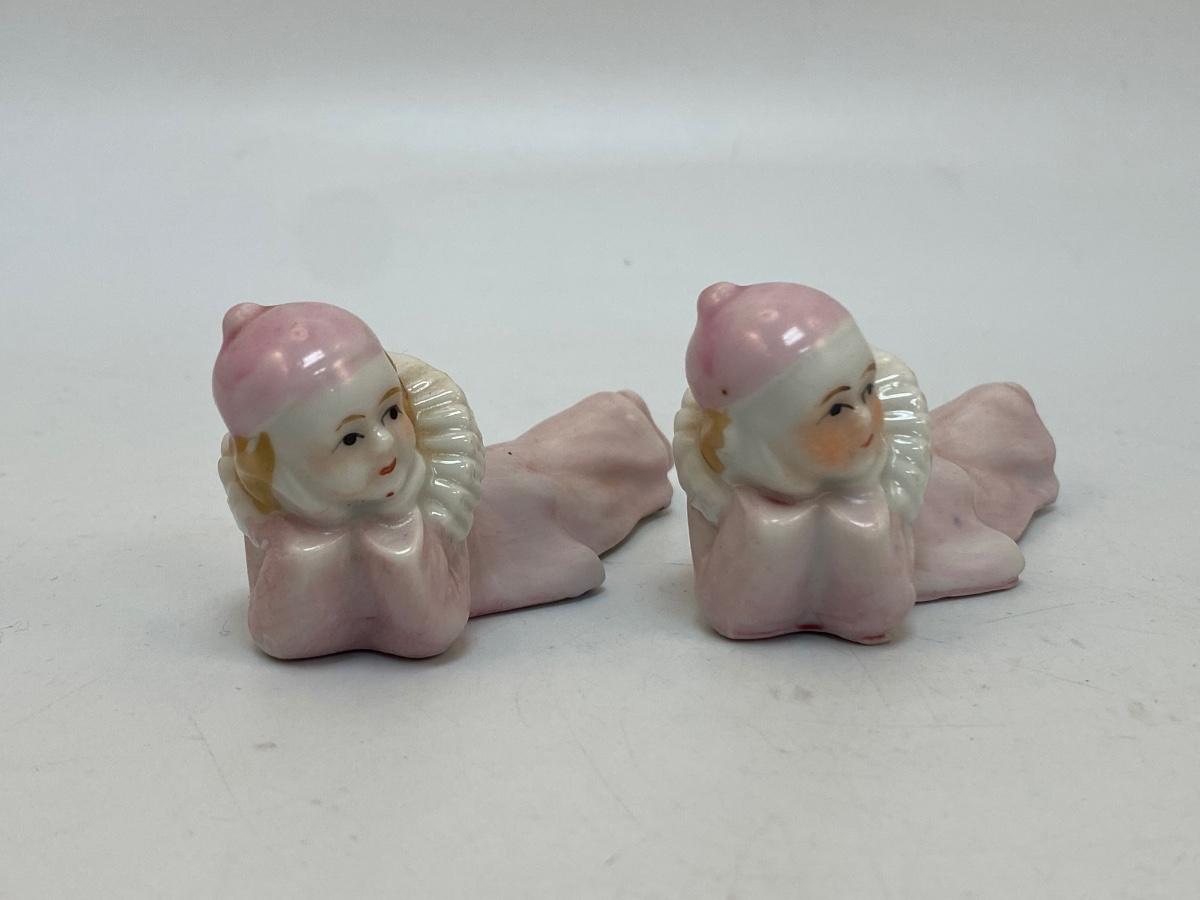 Vintage Pale Pink Harlequin Clown Figurines Laying Down Japan