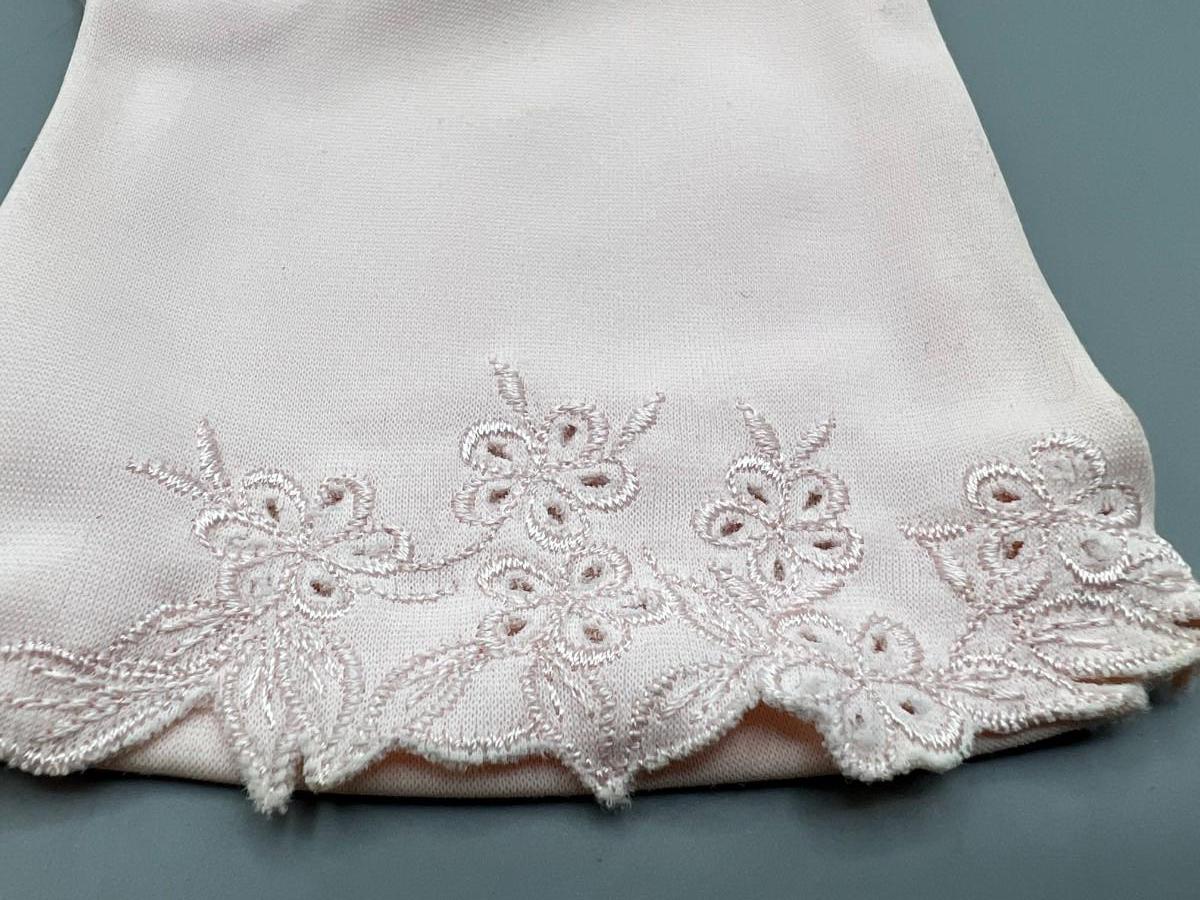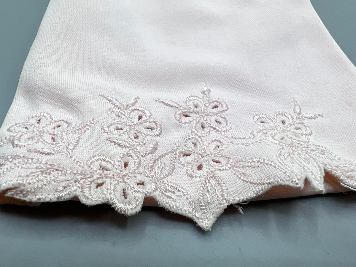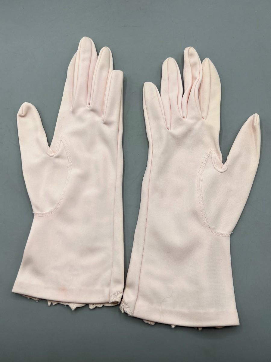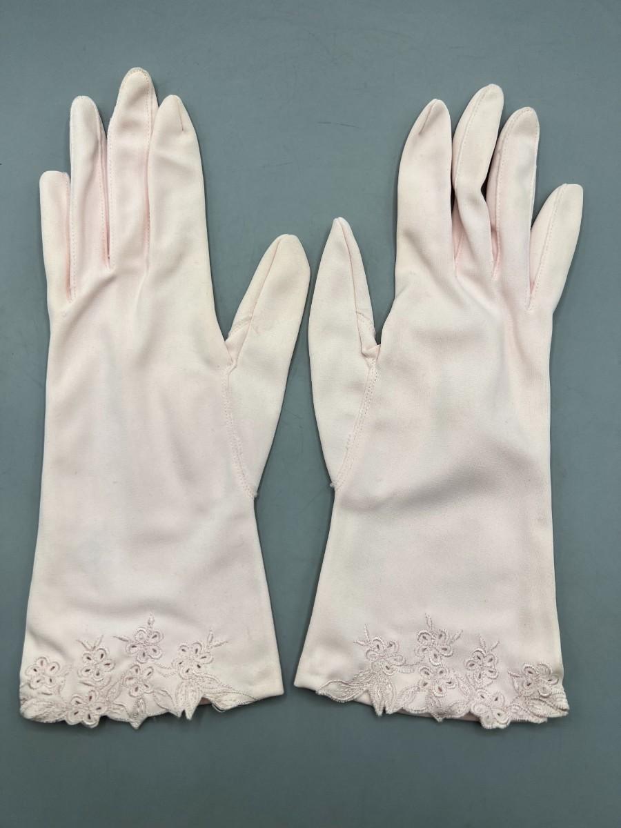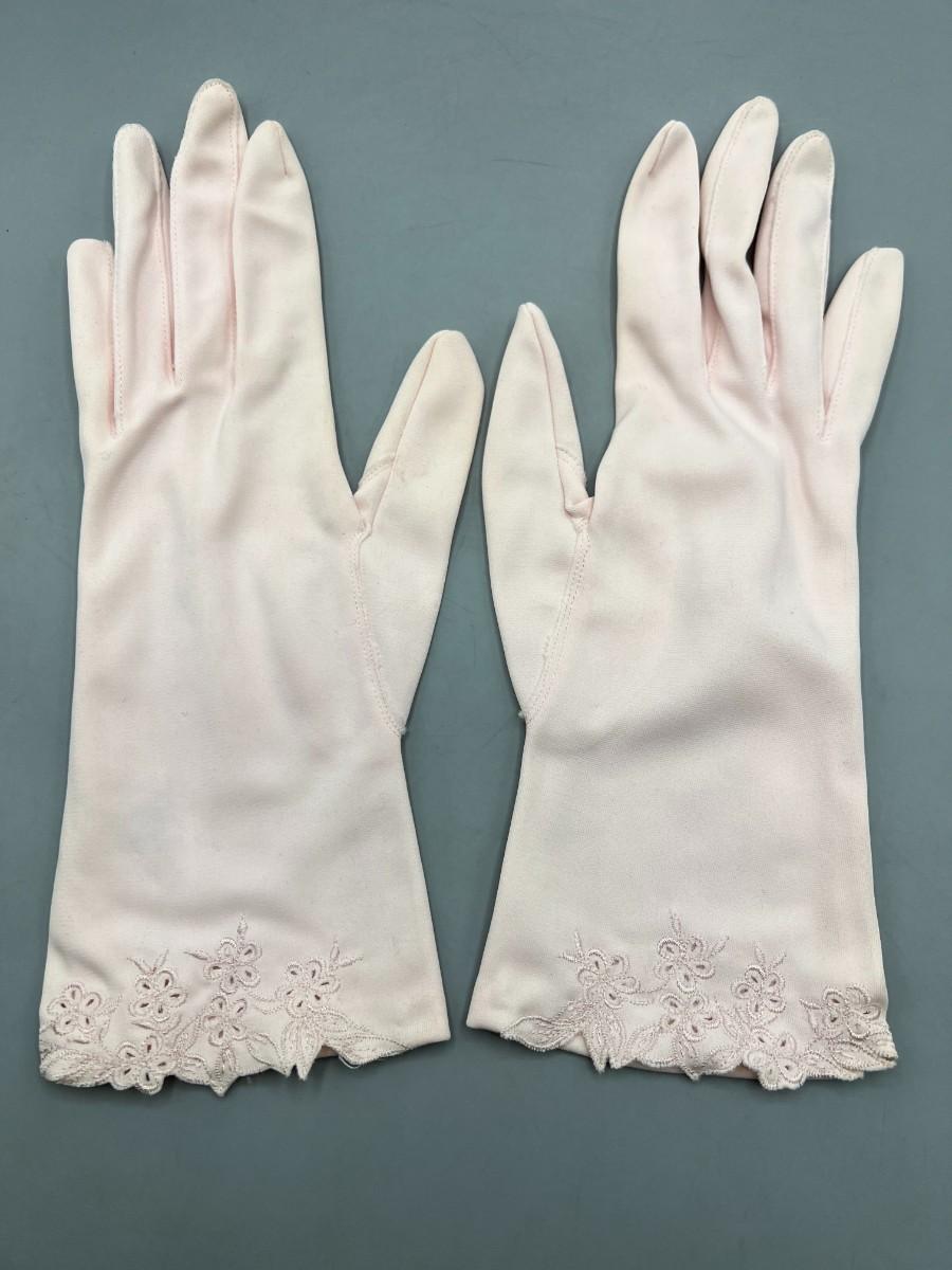 Vintage Pale Pink Ladies Gloves Flower Cuffs