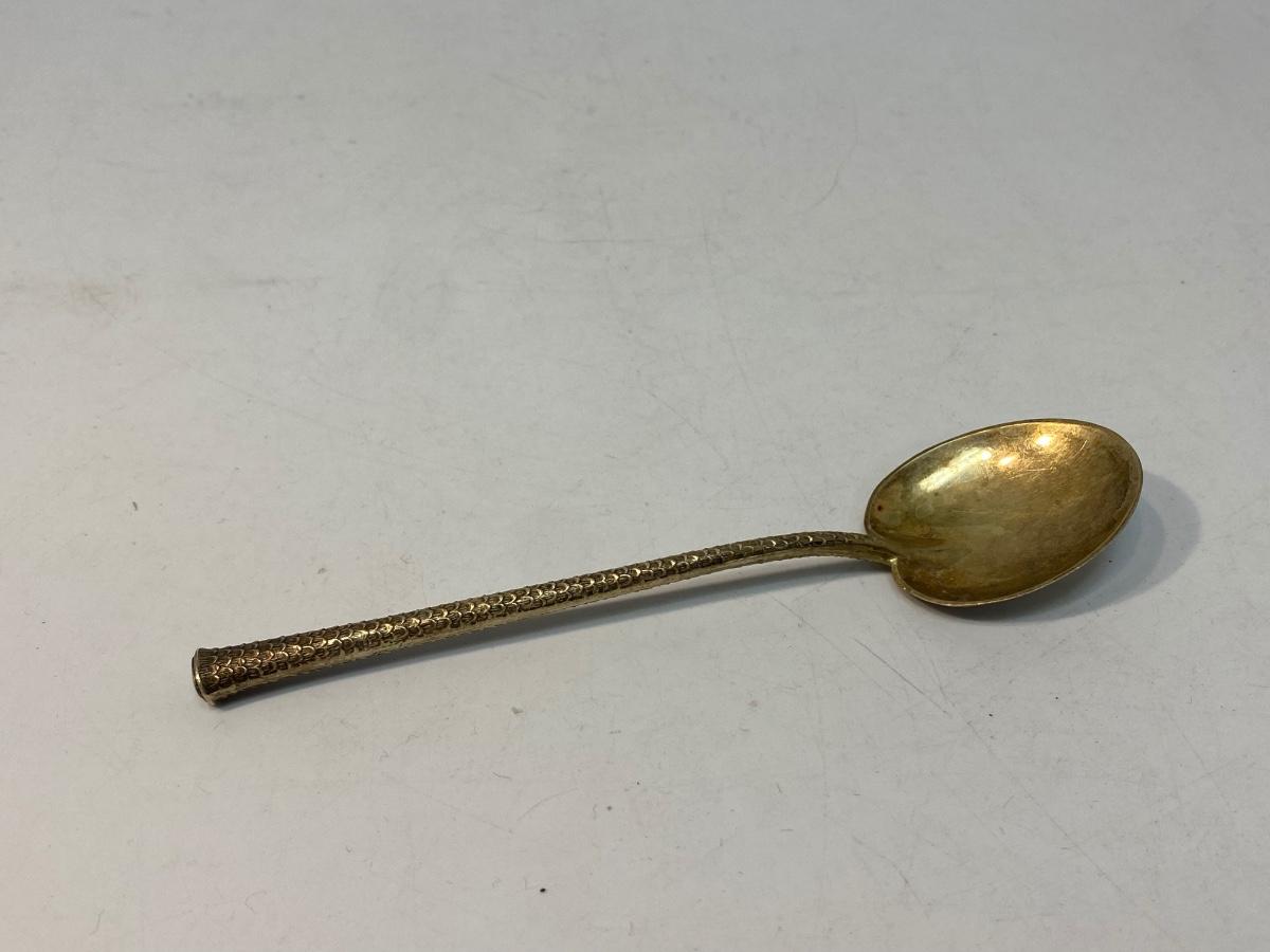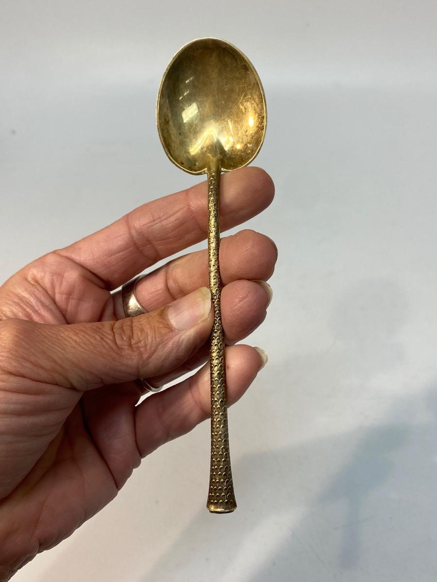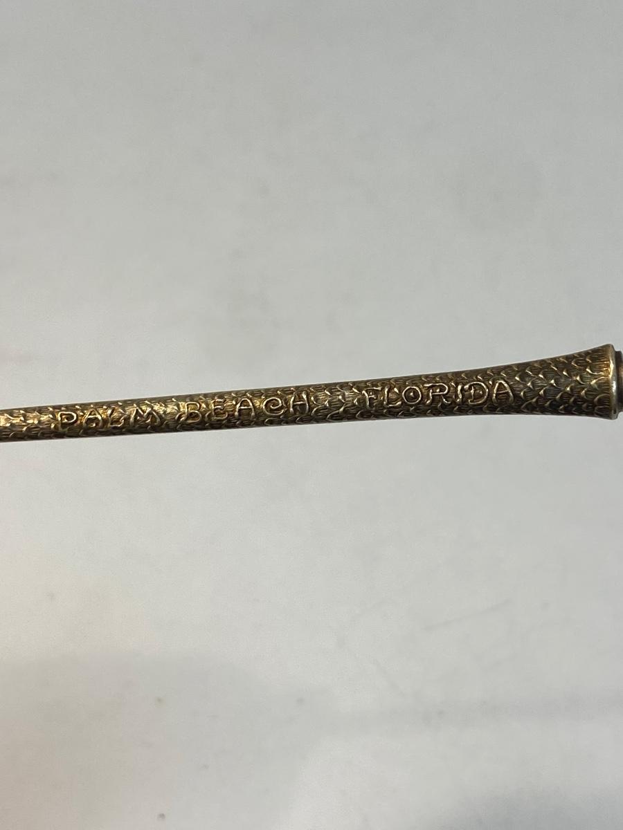 Vintage Palm Beach Florida Palm Inspired Sterling Silver Collector Spoon. Handle has a palm tree like texture with Palm Beach Florida written down it. Stamped and hallmarked sterling on back of the base of spoon near handle. Light patina gives it a goldish tint. About 5.5" length.