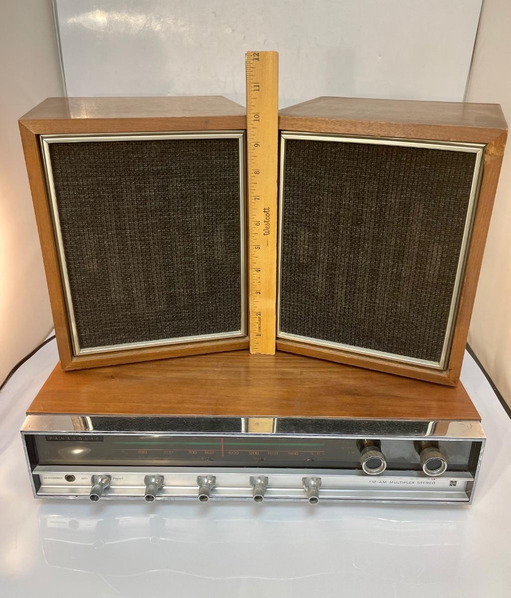 Vintage Panasonic AM-FM Stereo with Bookshelf 16 Ohm Speakers. Made in Japan, Model RE-7670. Tested, works as expected.